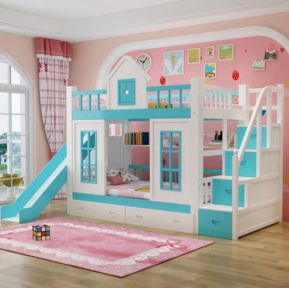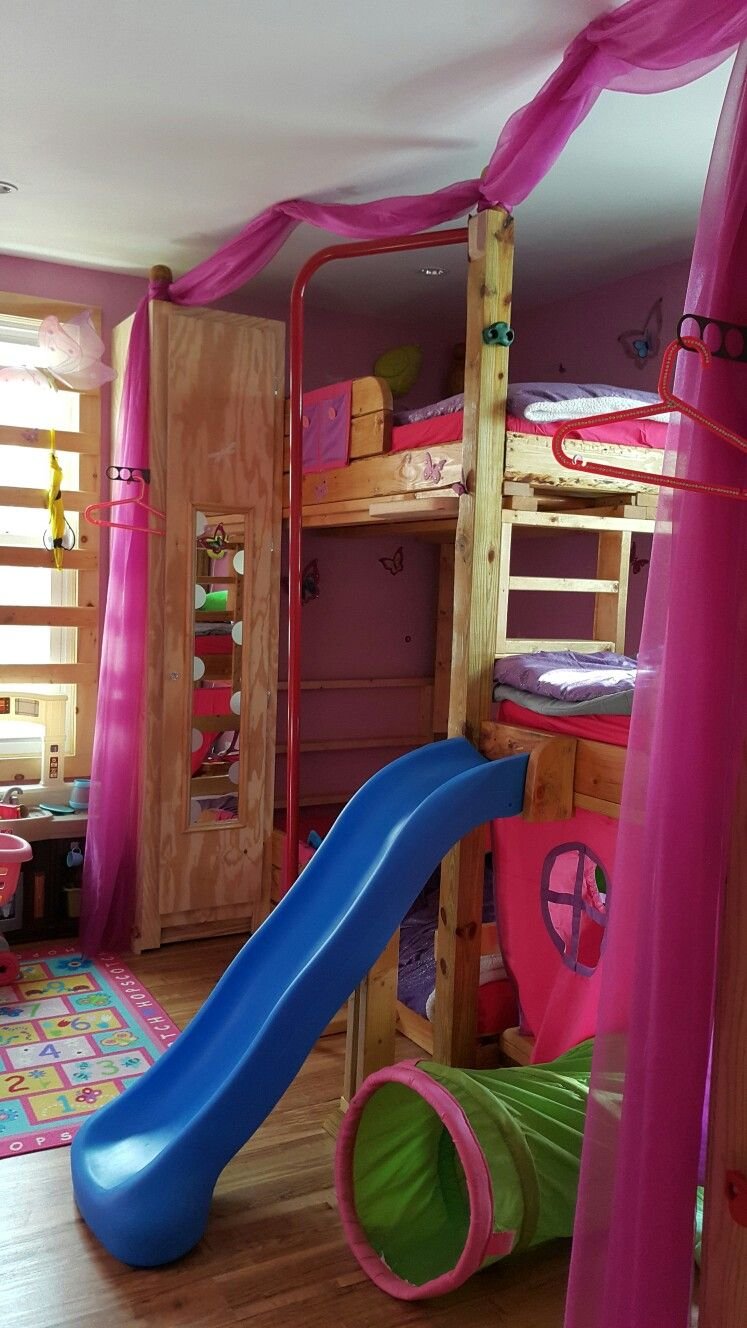 Кровать для девочек с горкой