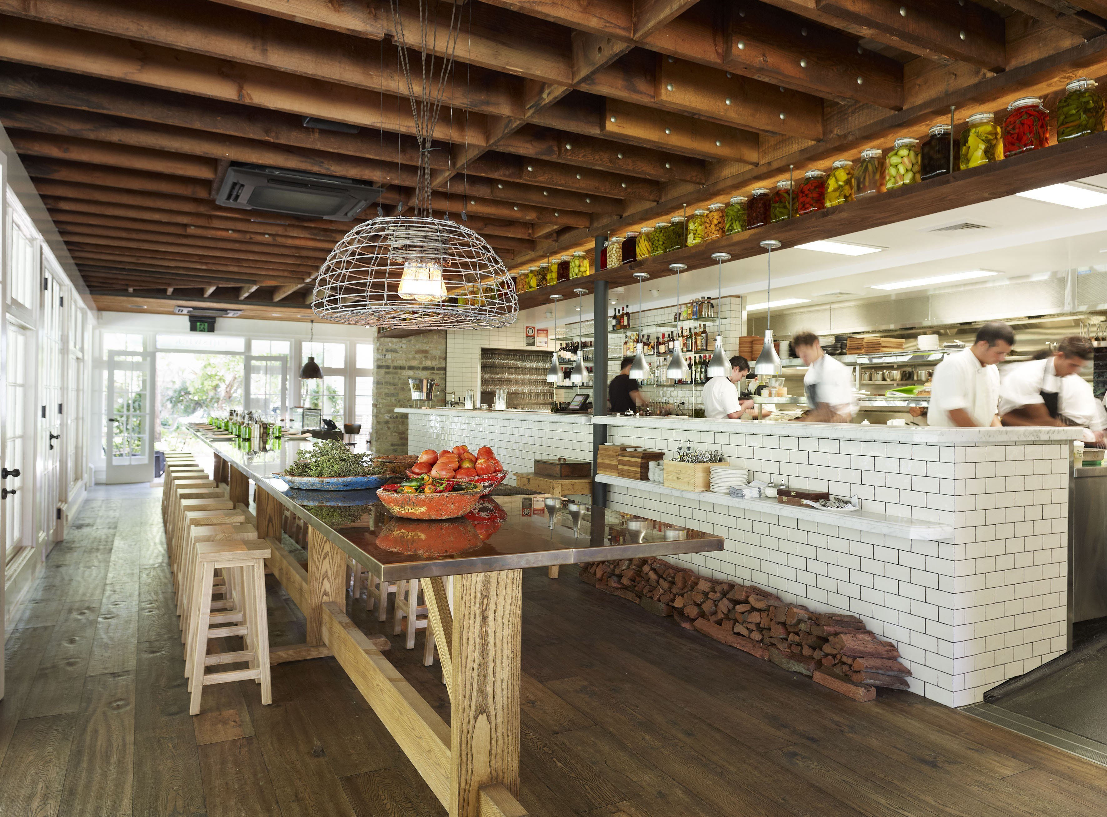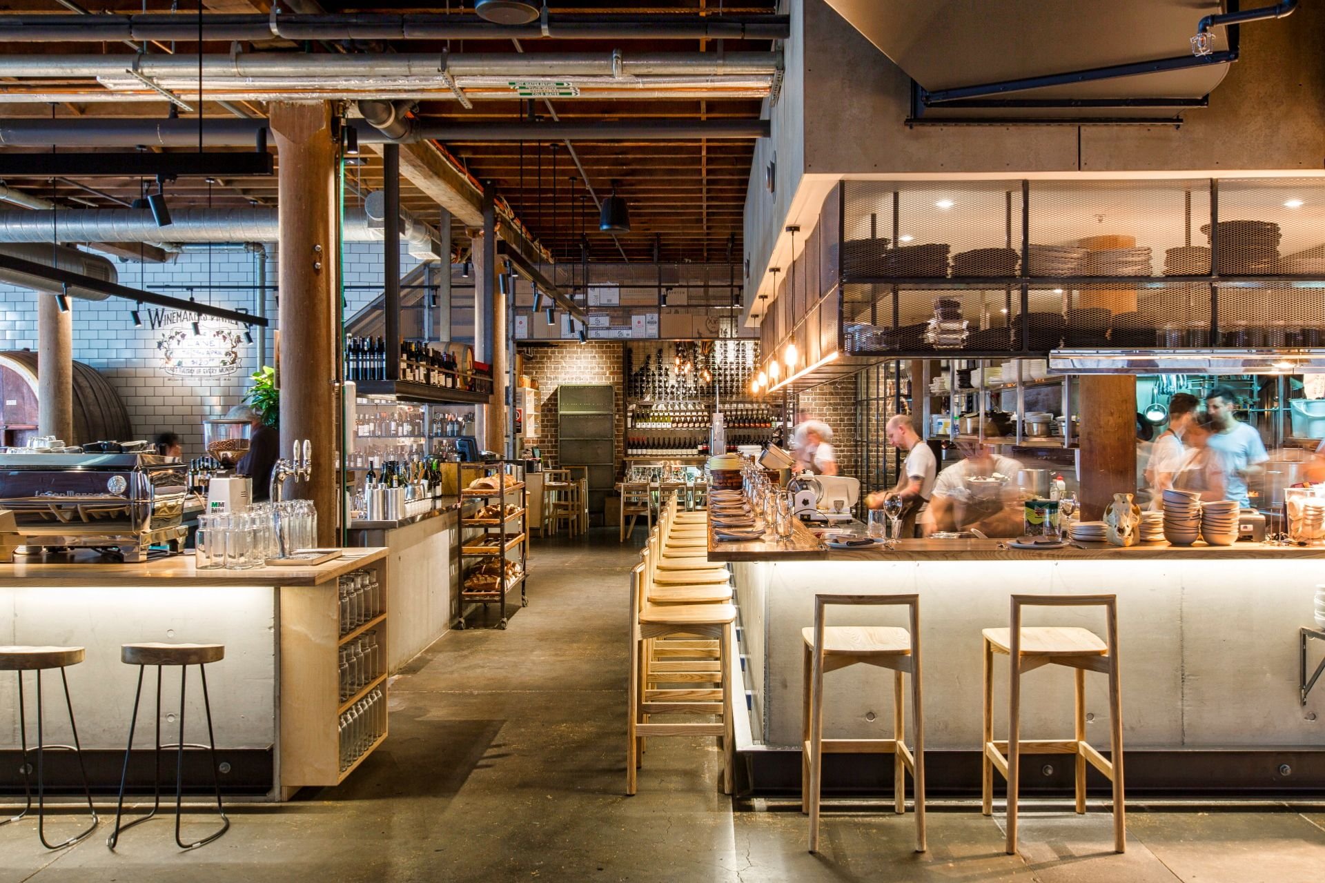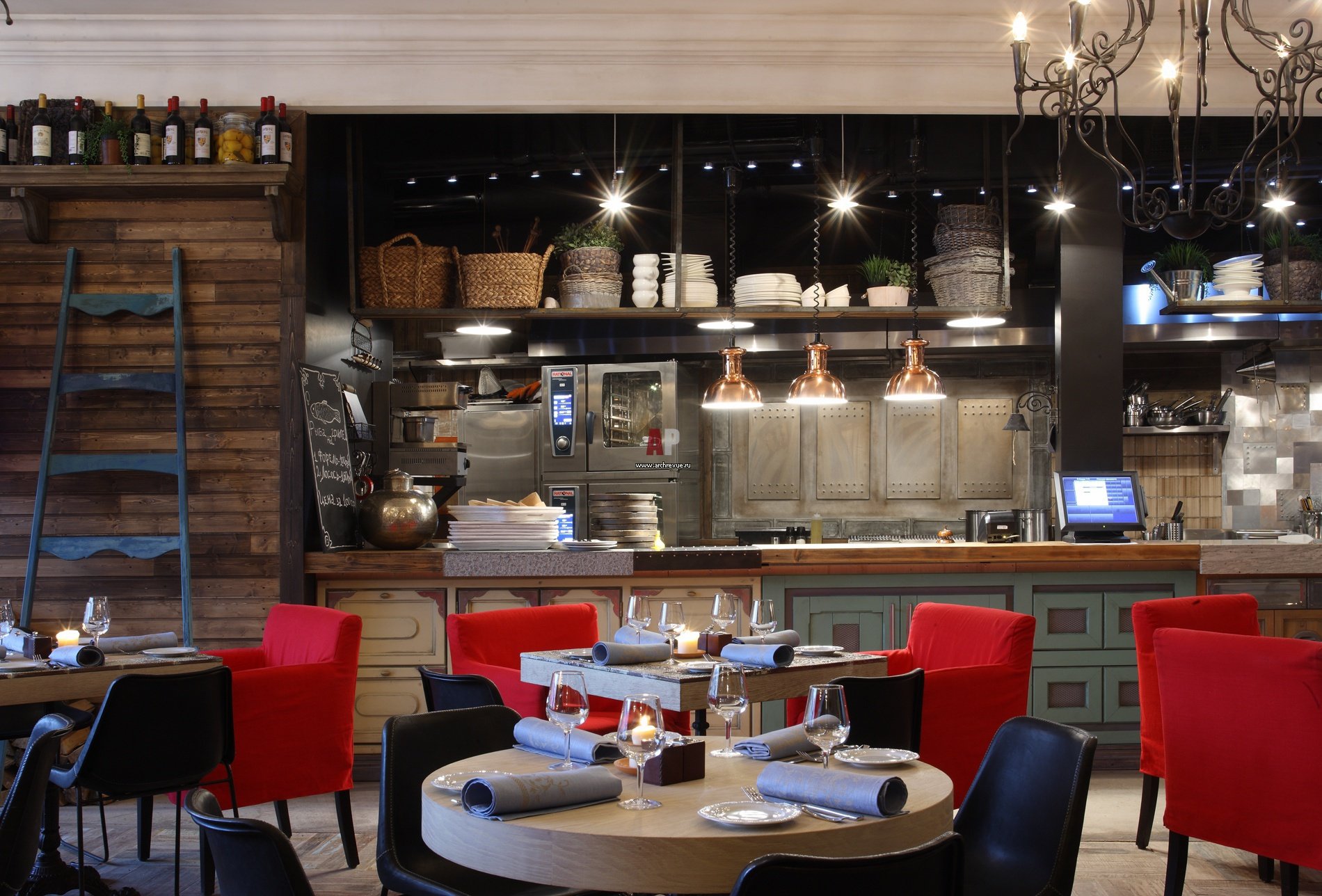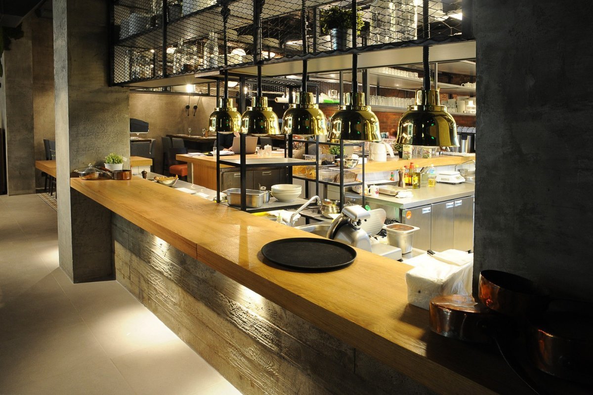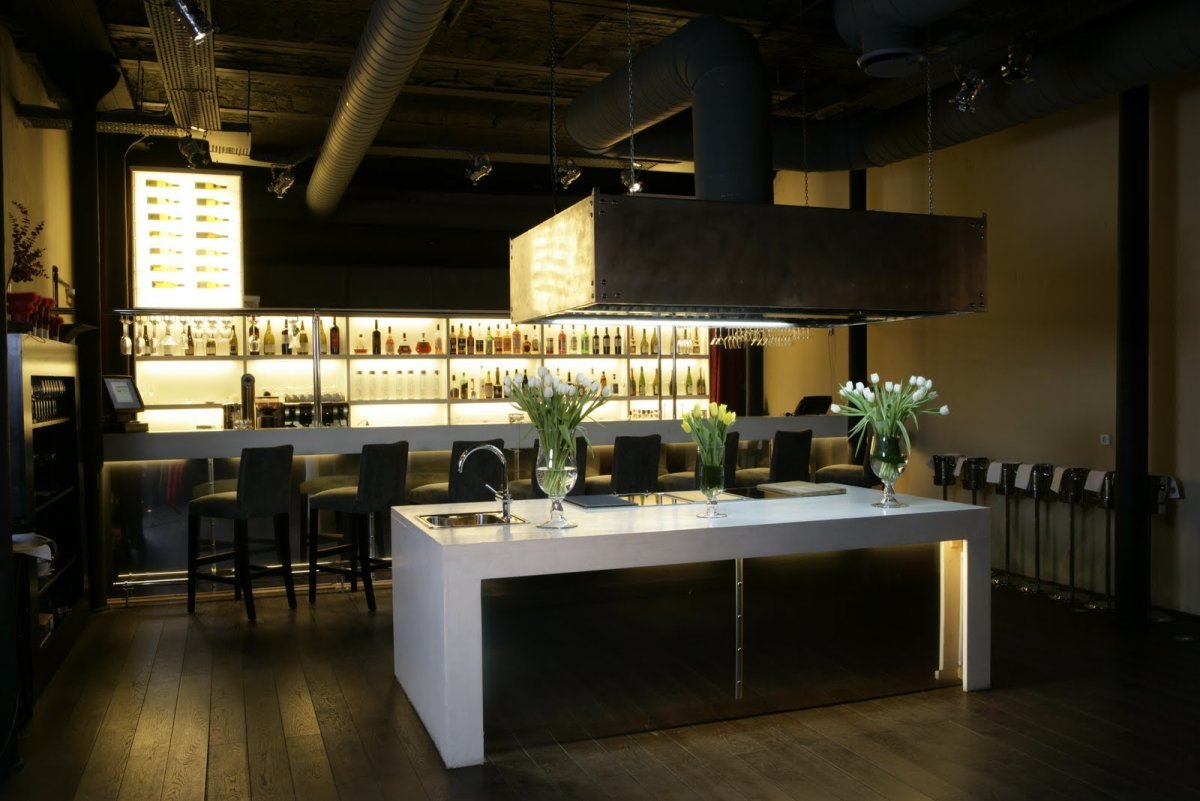 Стиль лофт ресторан с открытой кухней