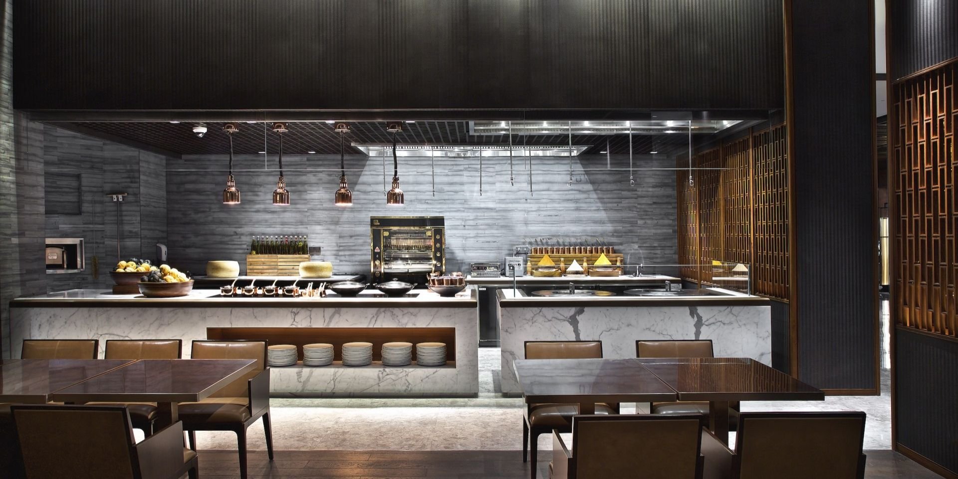 Открытая кухня в ресторане