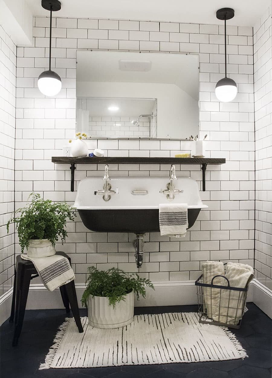 Интерьеры ванных комнат с плиткой кабанчик