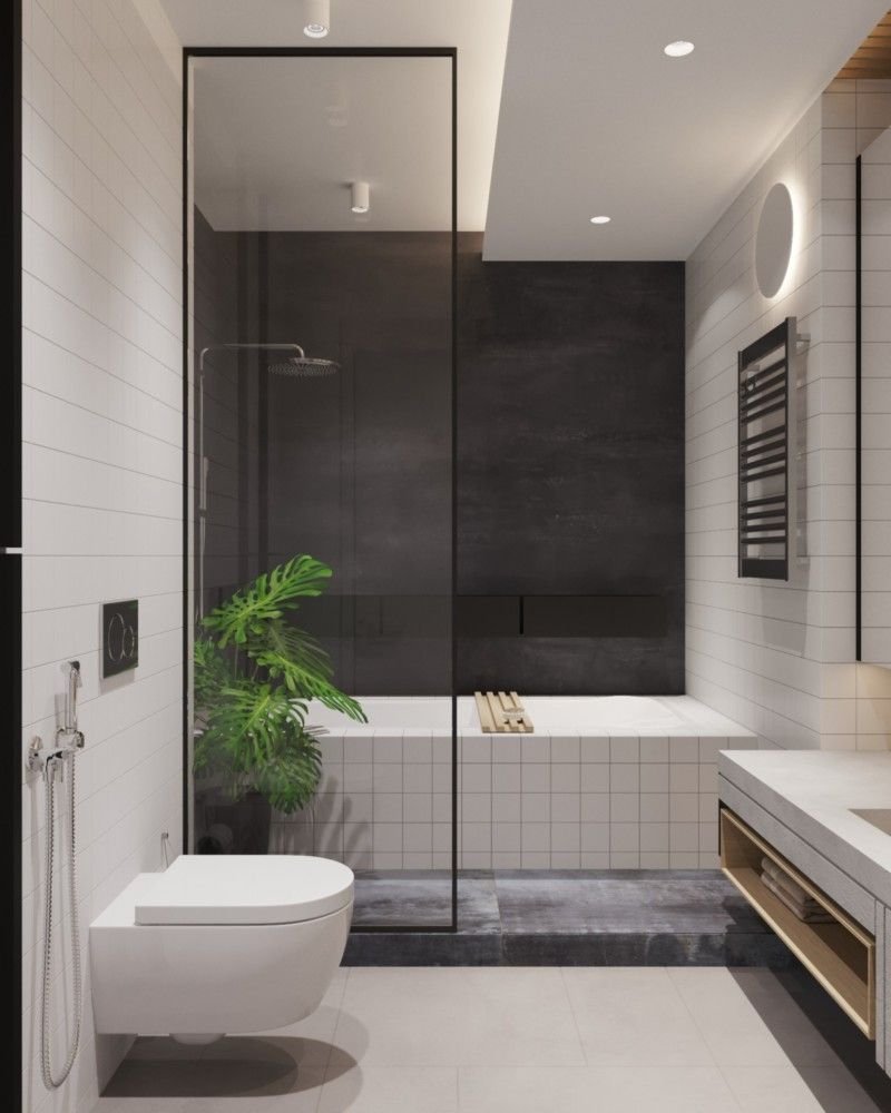 Интерьер ванной комнаты с черной сантехникой