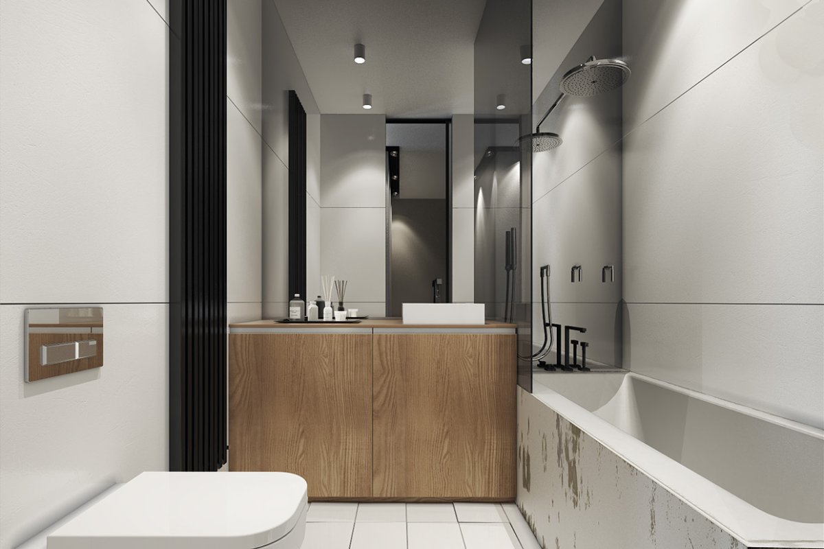 Современная ванная в двухкомнатной квартире