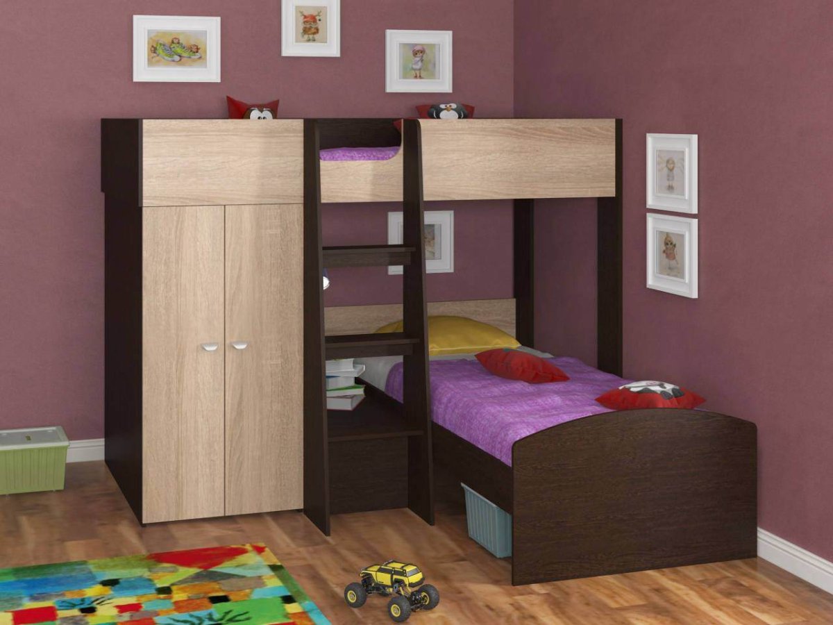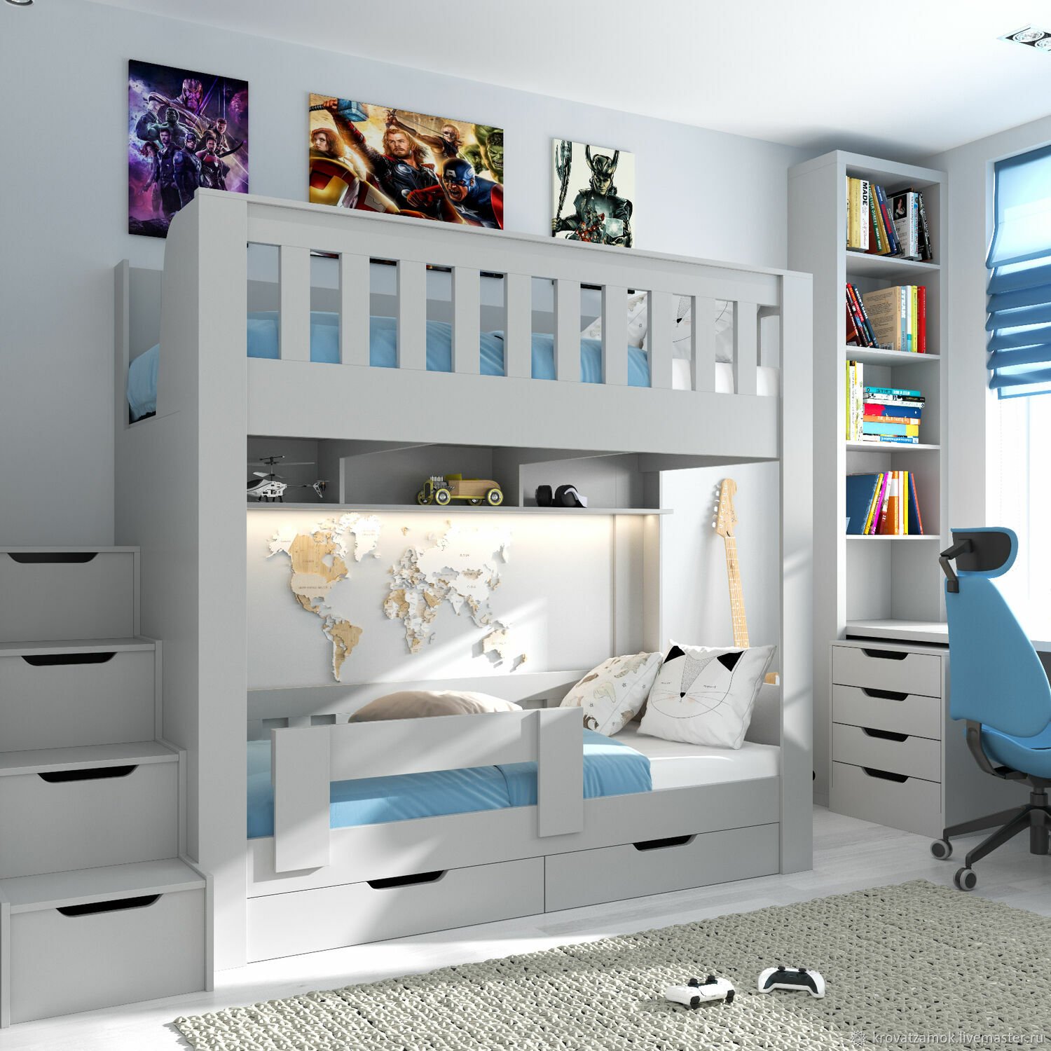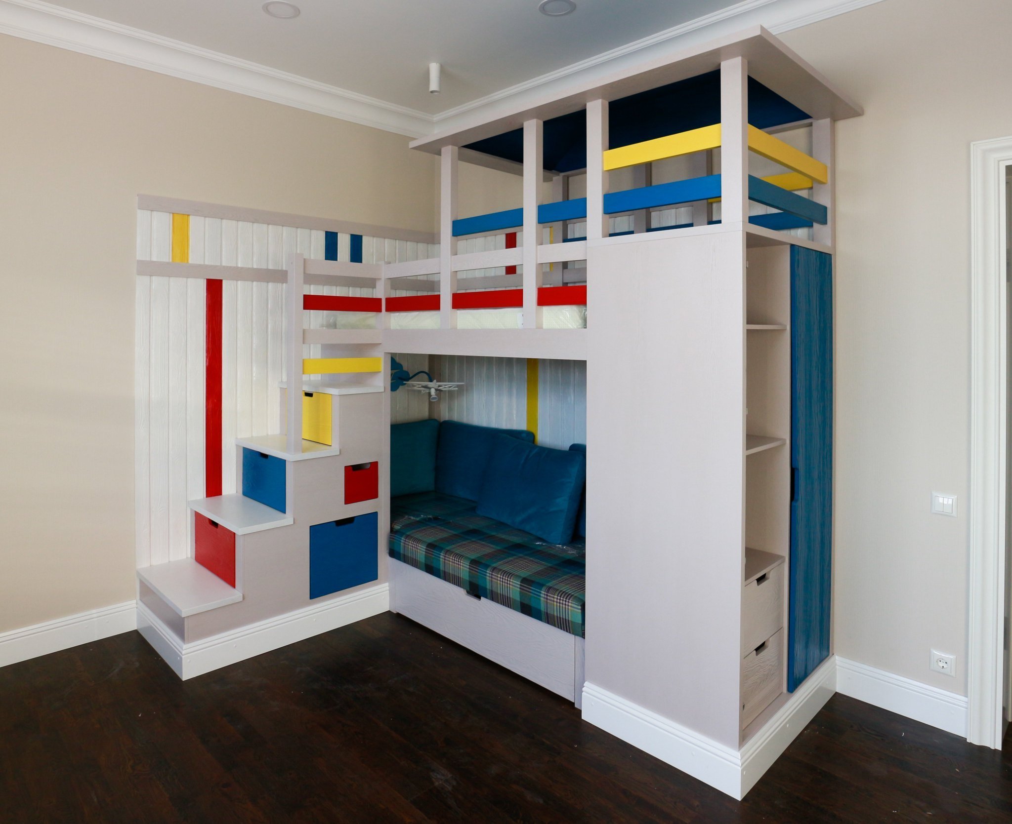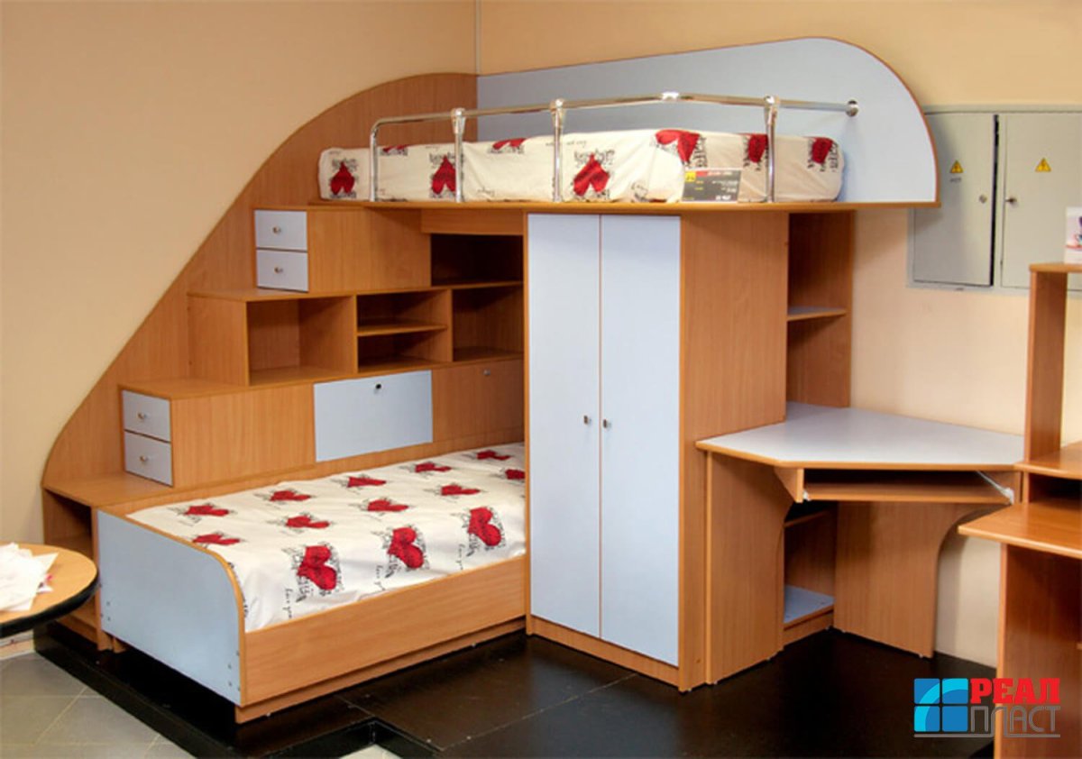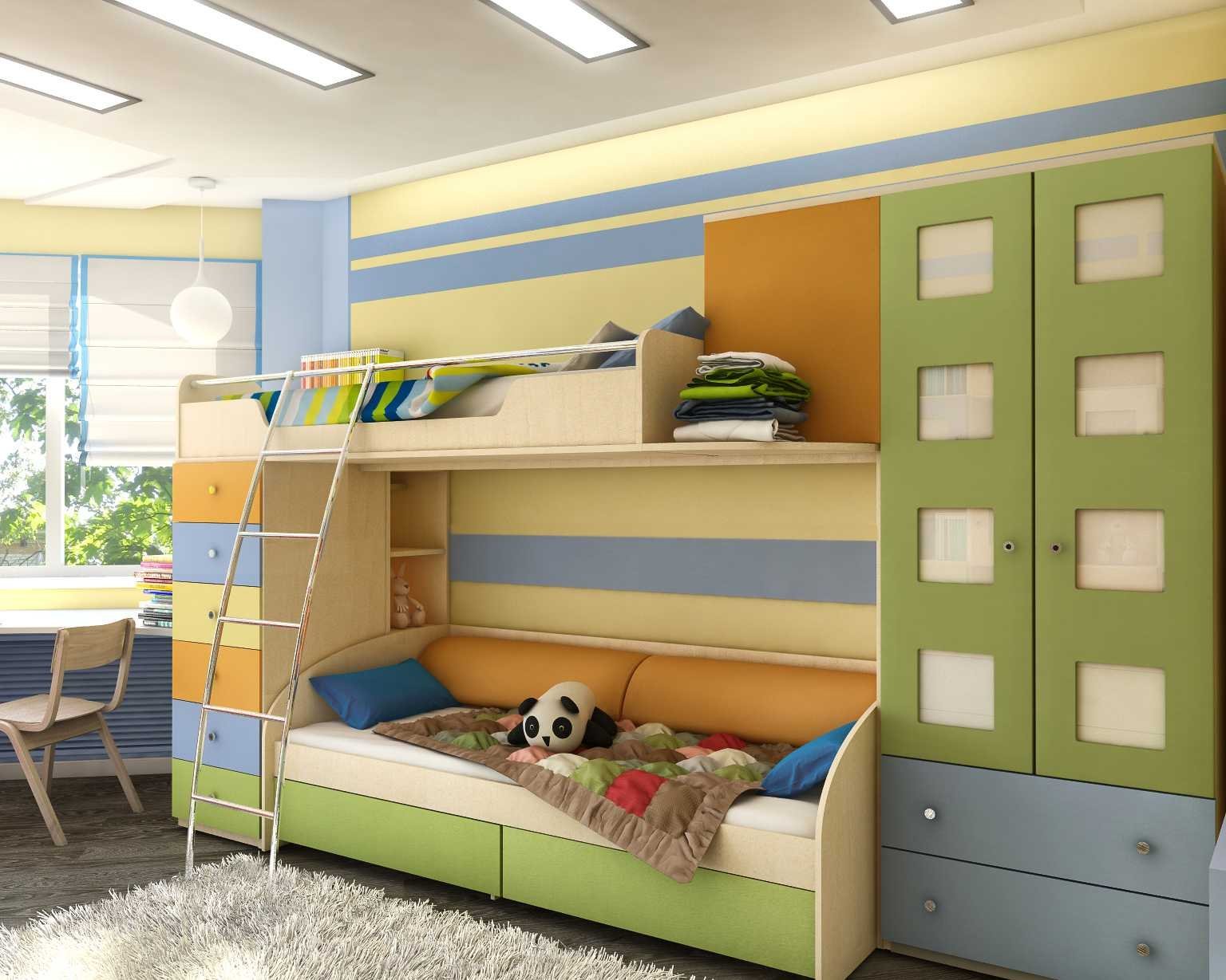 Детская комната с двухъярусной кроватью и угловым шкафом
