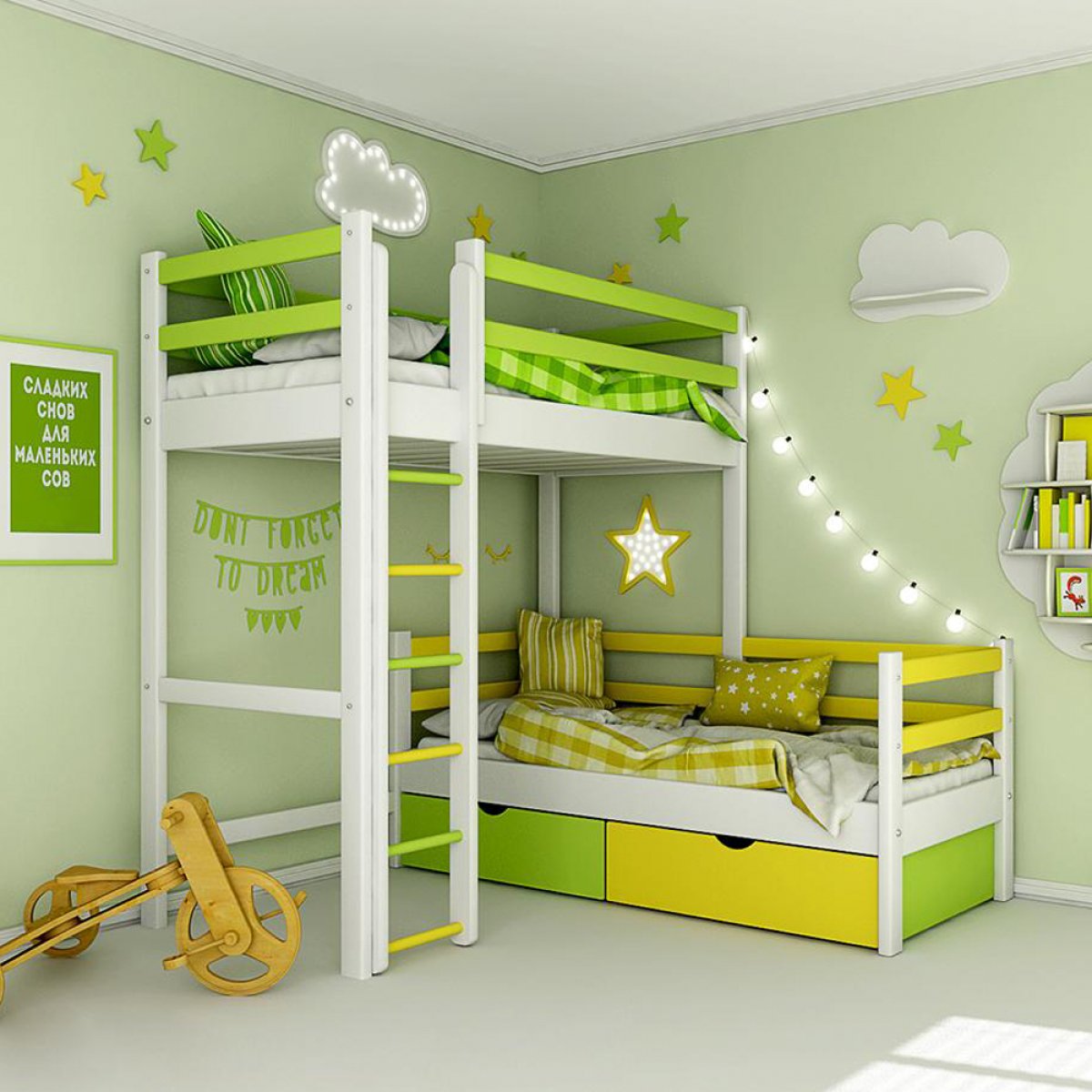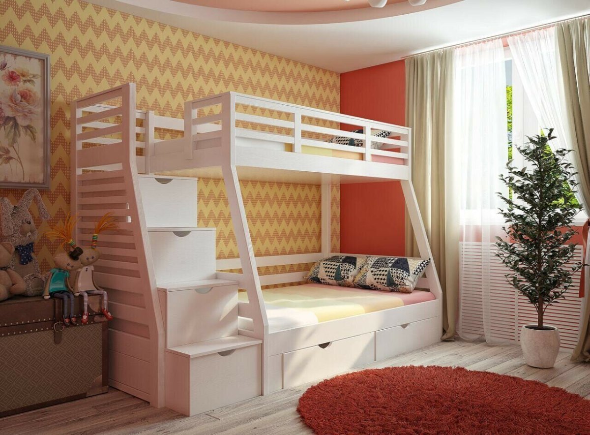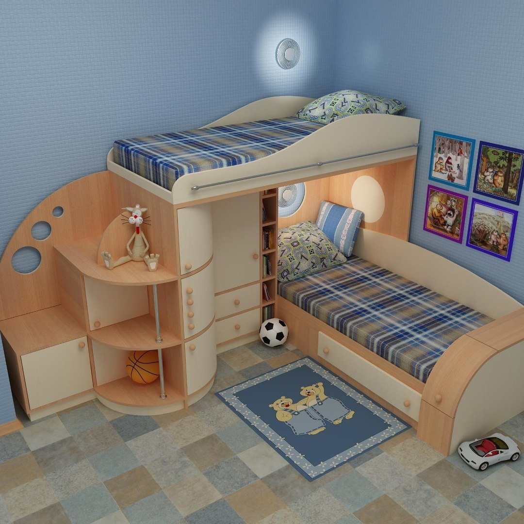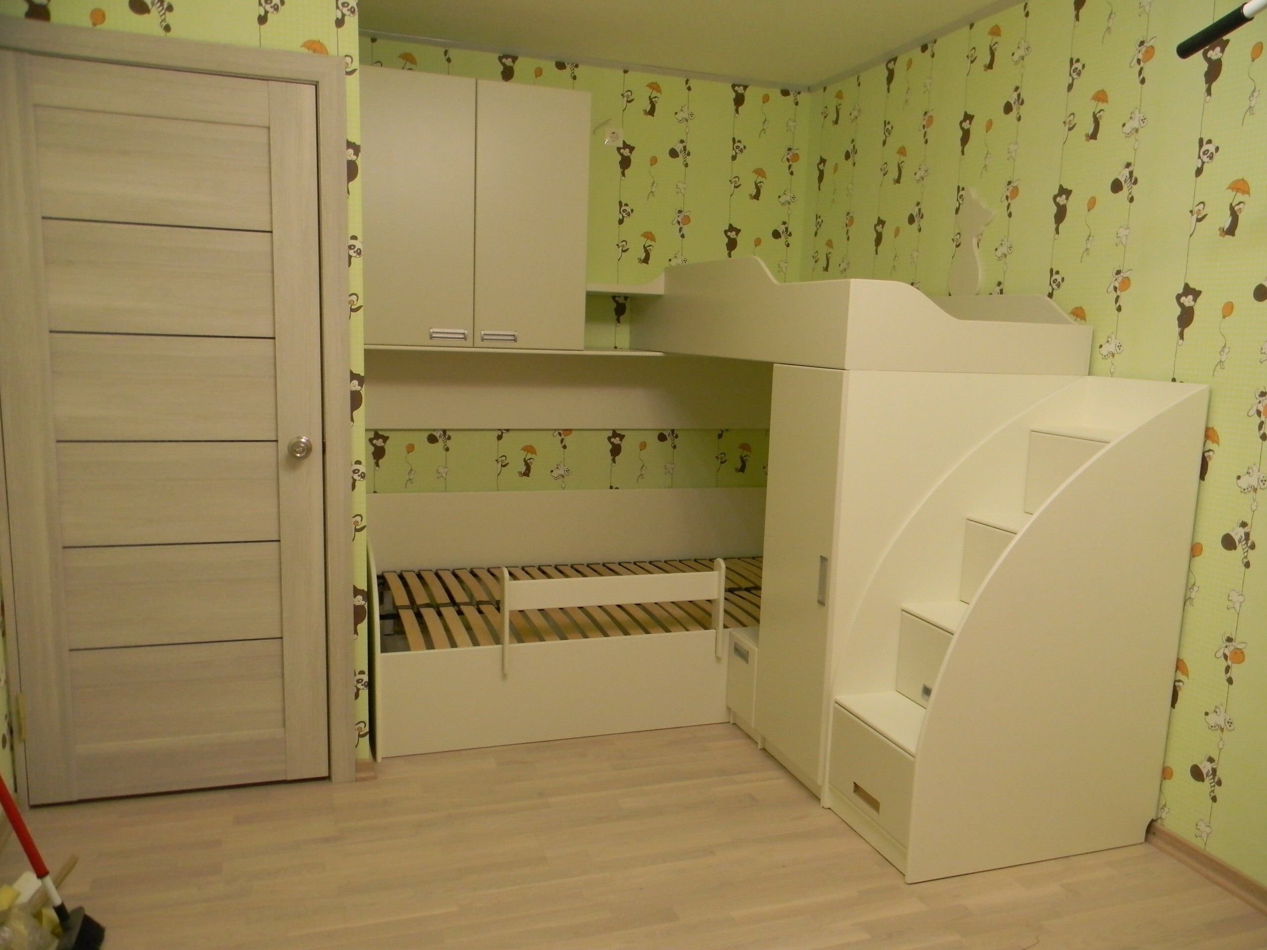 Детская комната с двухъярусной кроватью и угловым шкафом