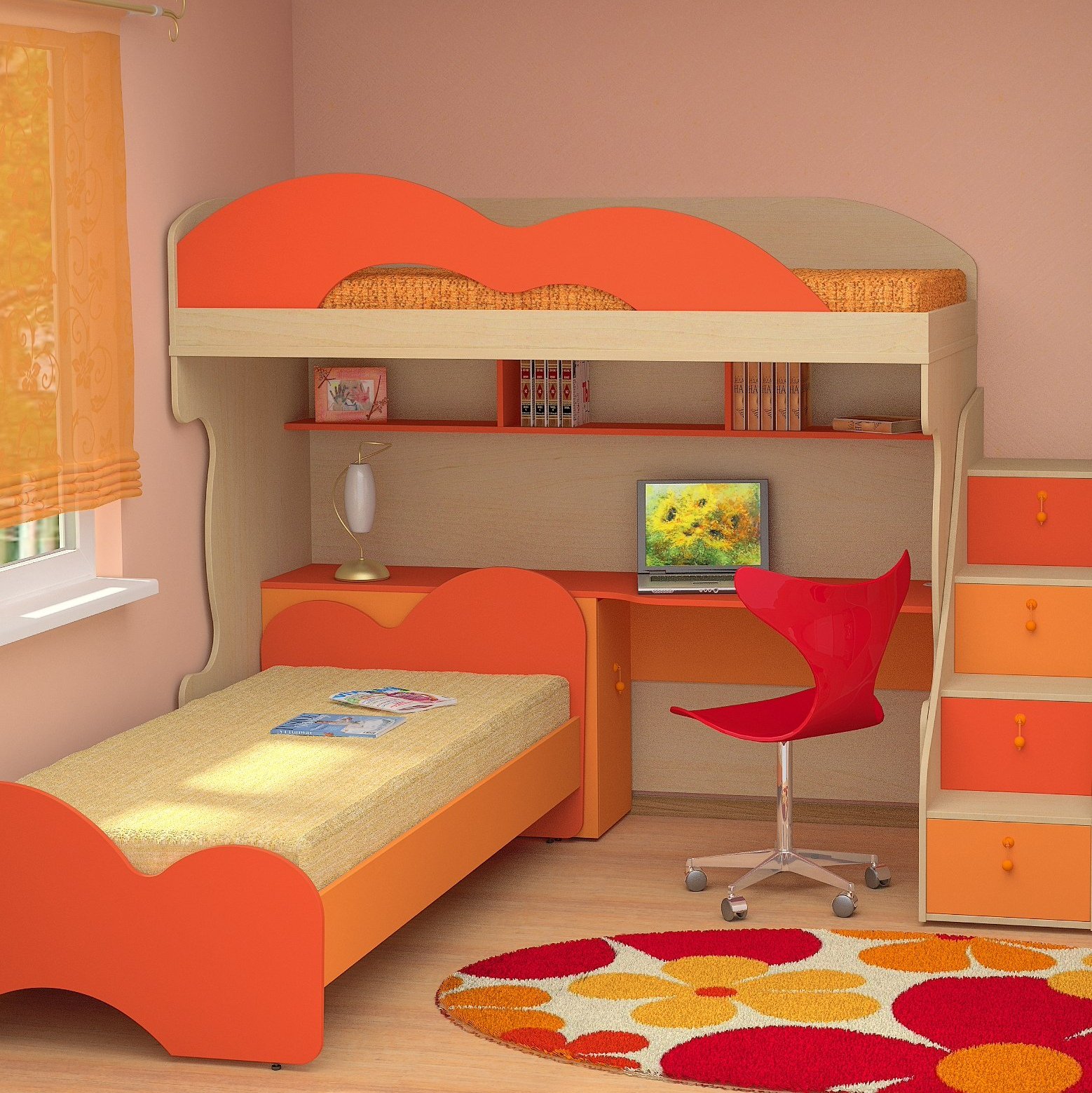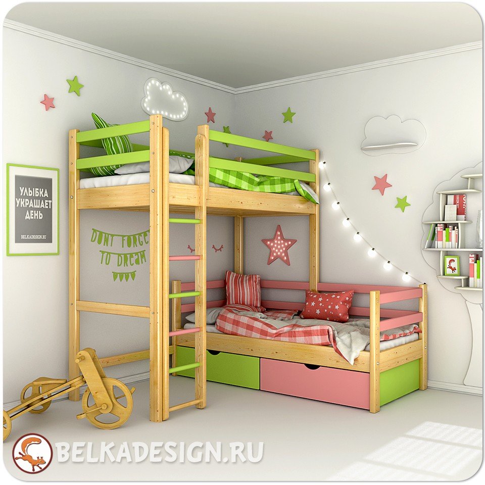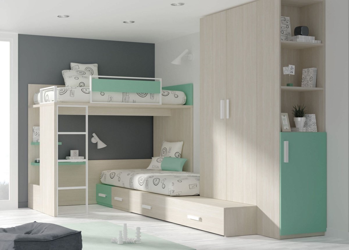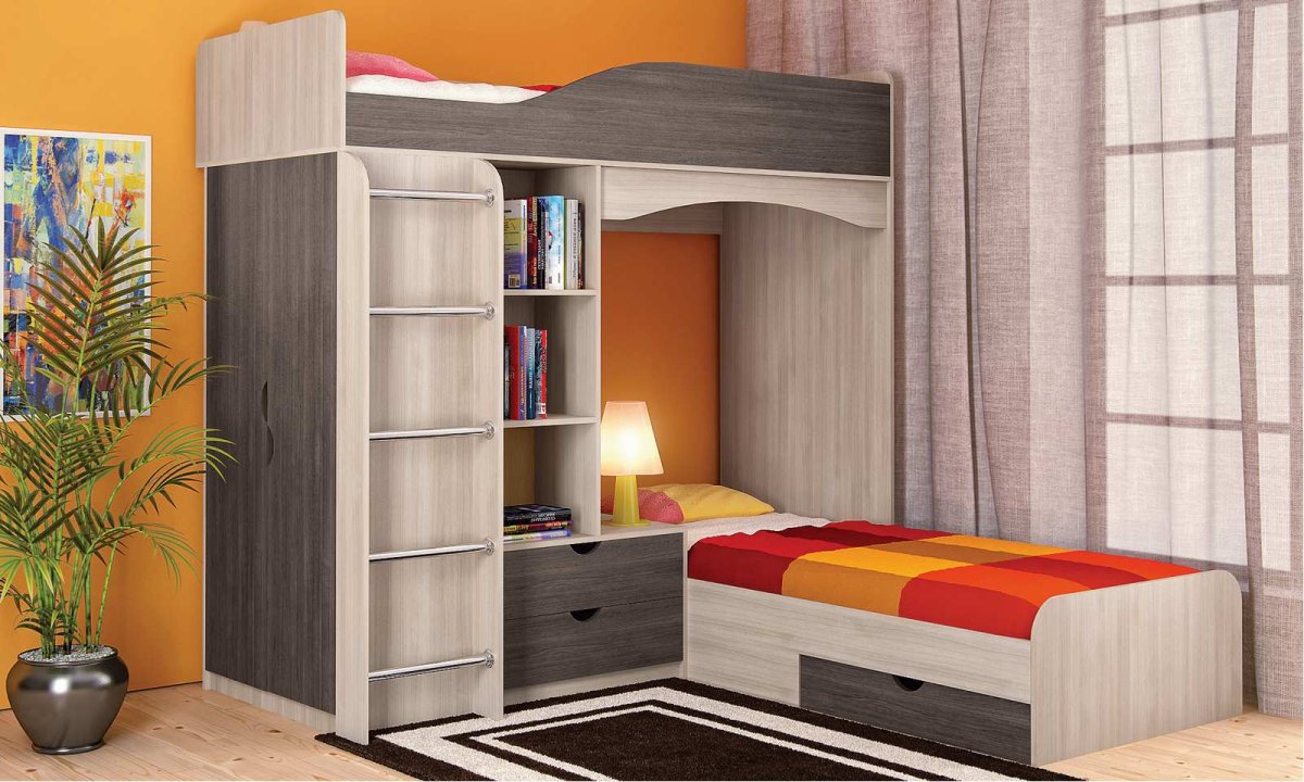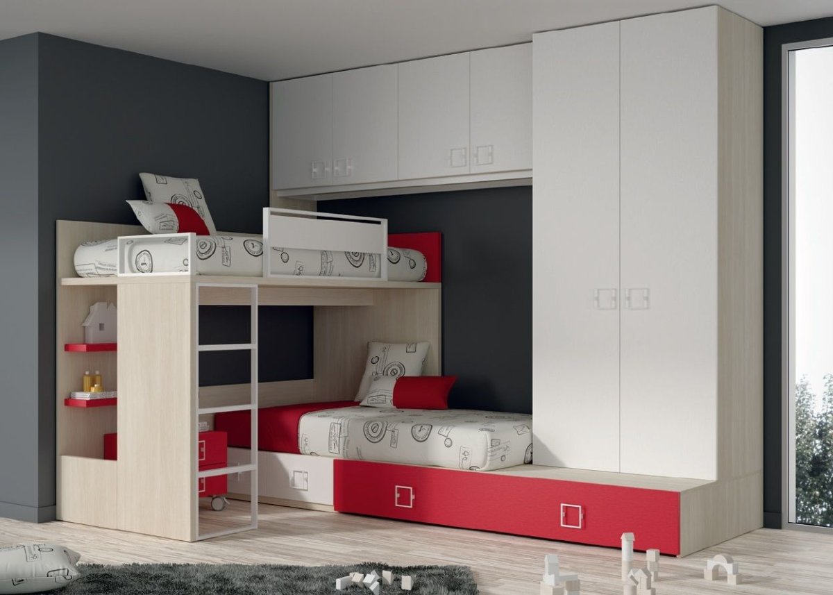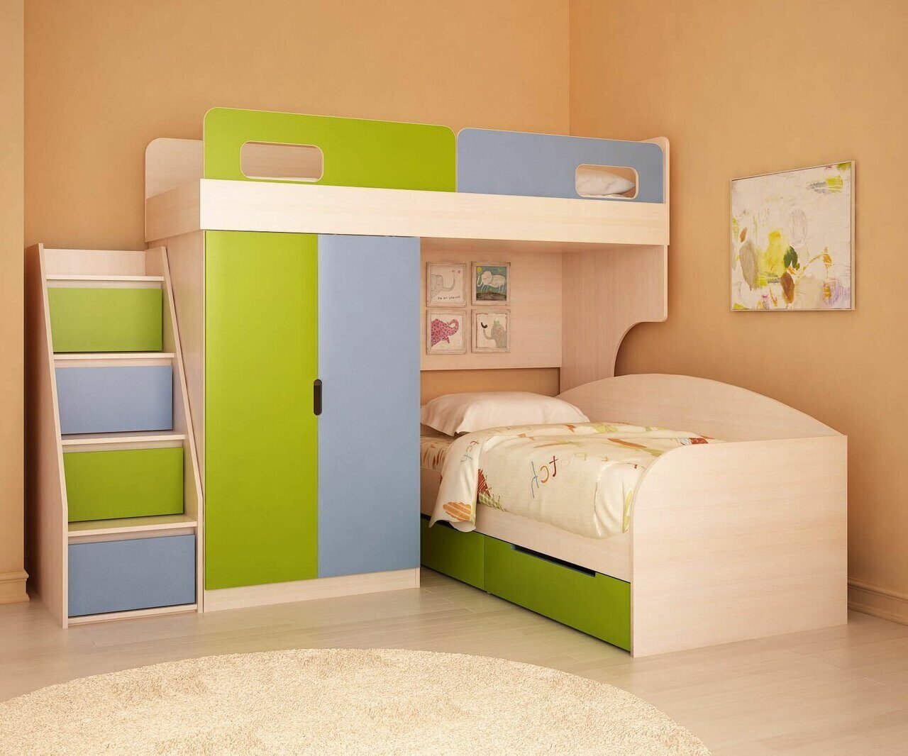 Детская комната с двухъярусной кроватью и угловым шкафом