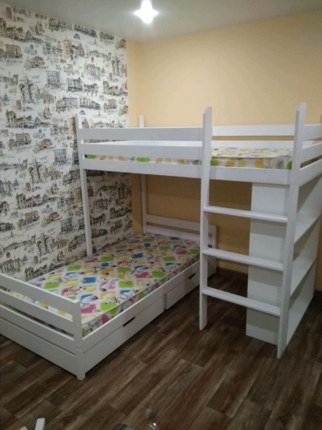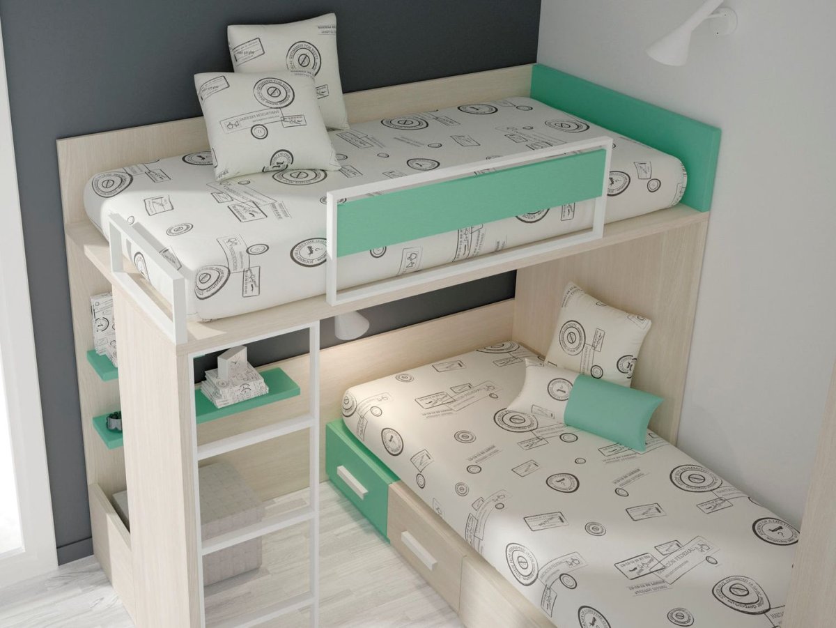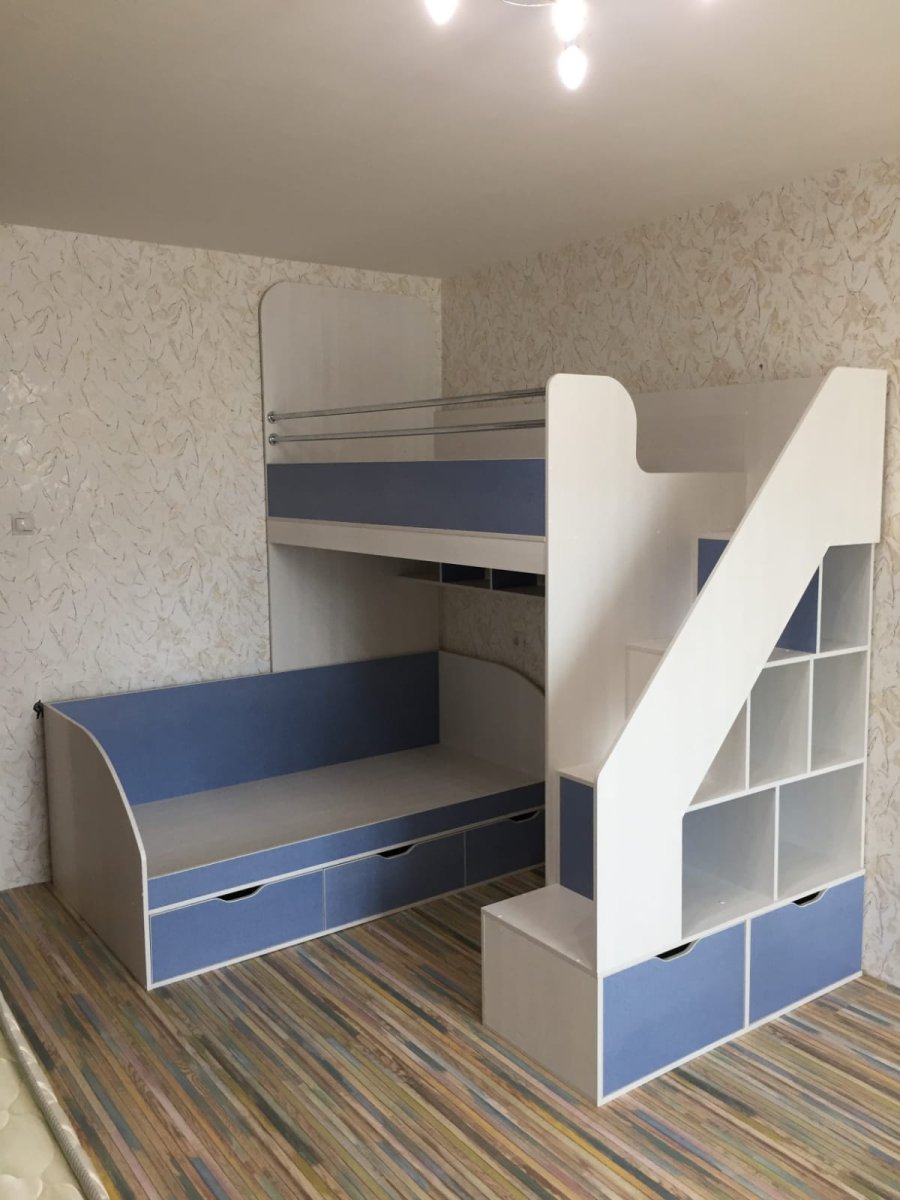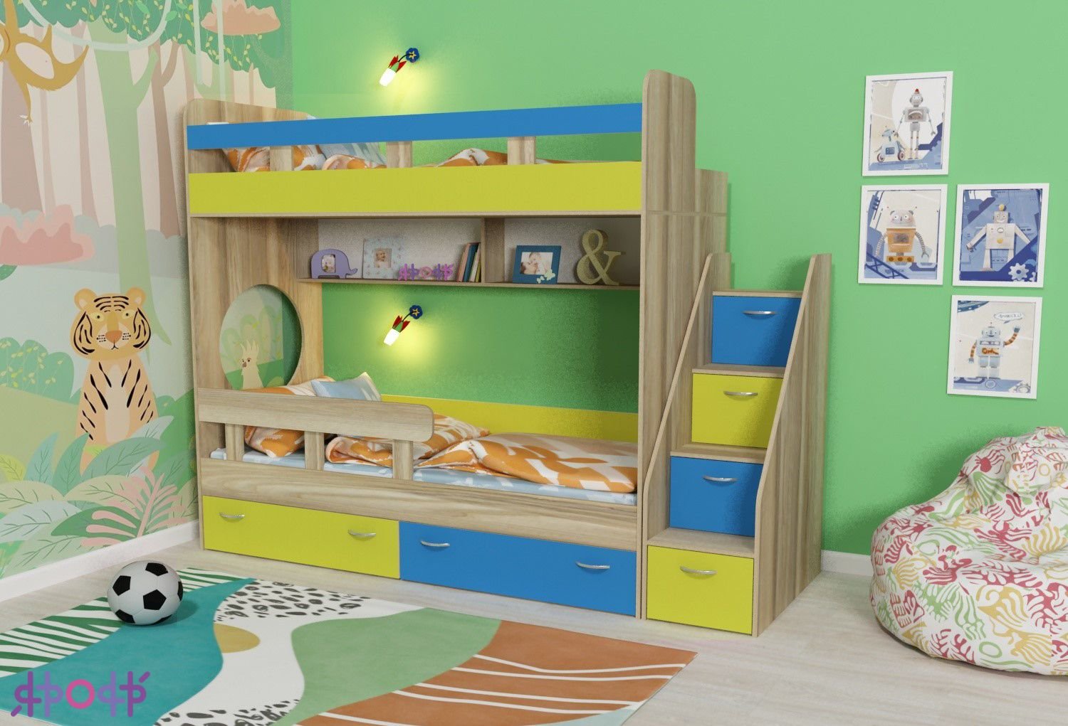 Детская комната с двухъярусной кроватью и угловым шкафом