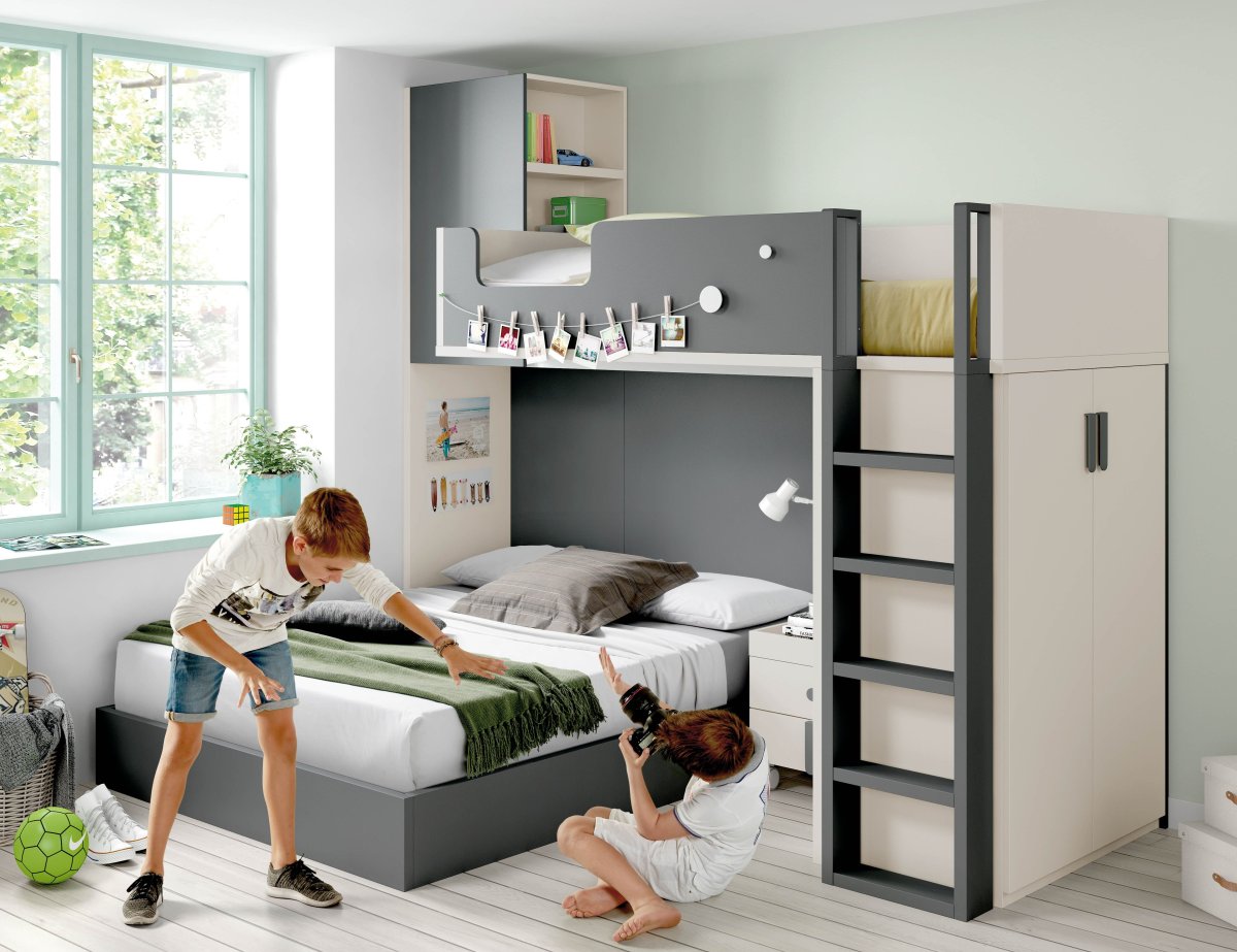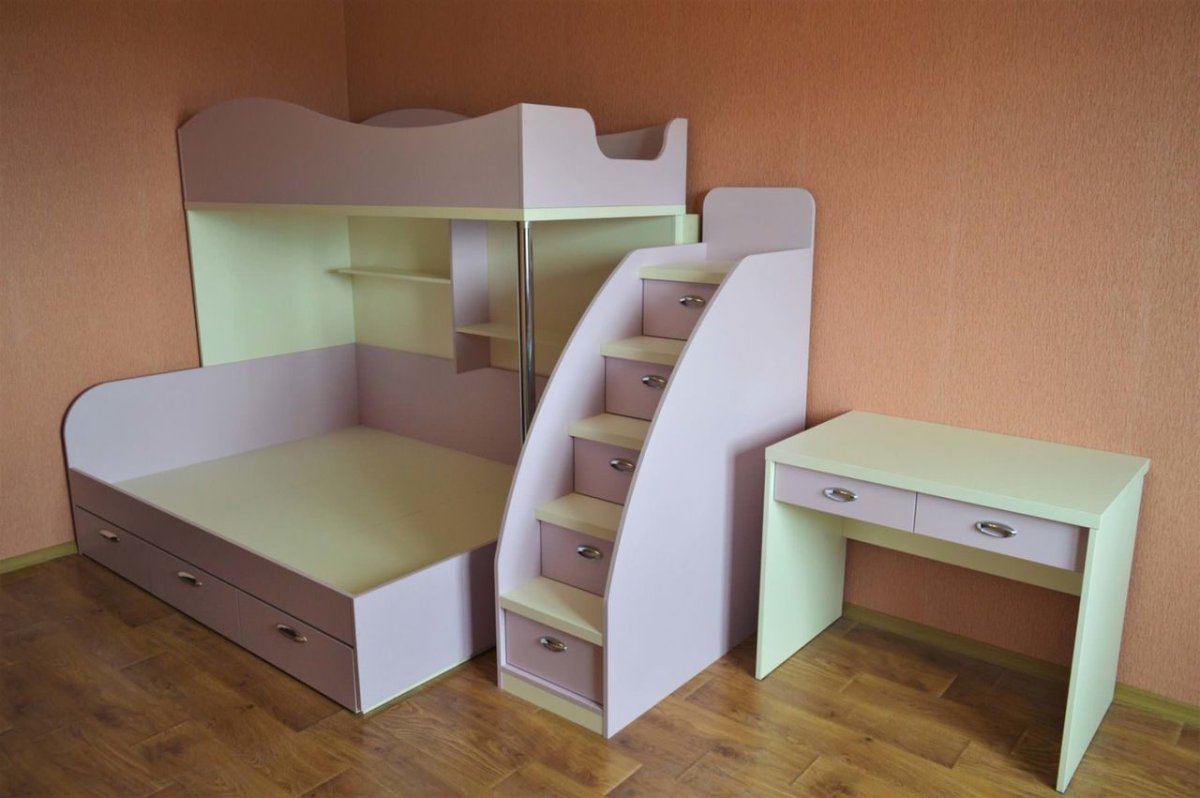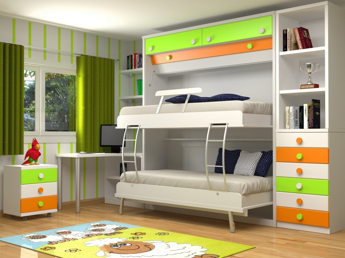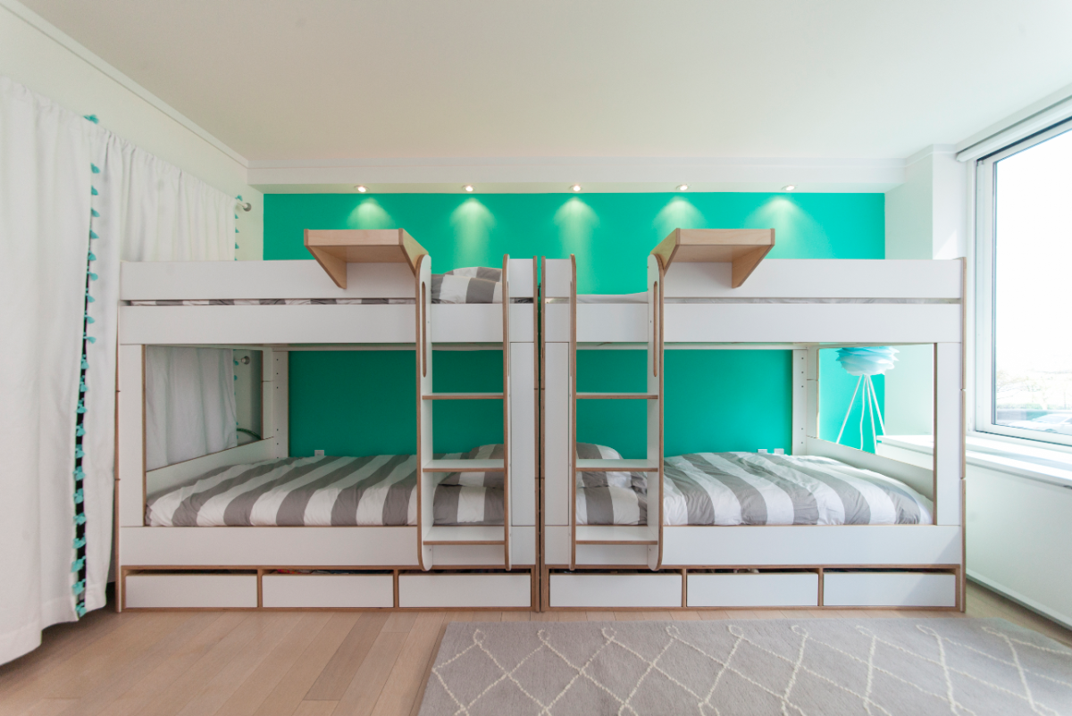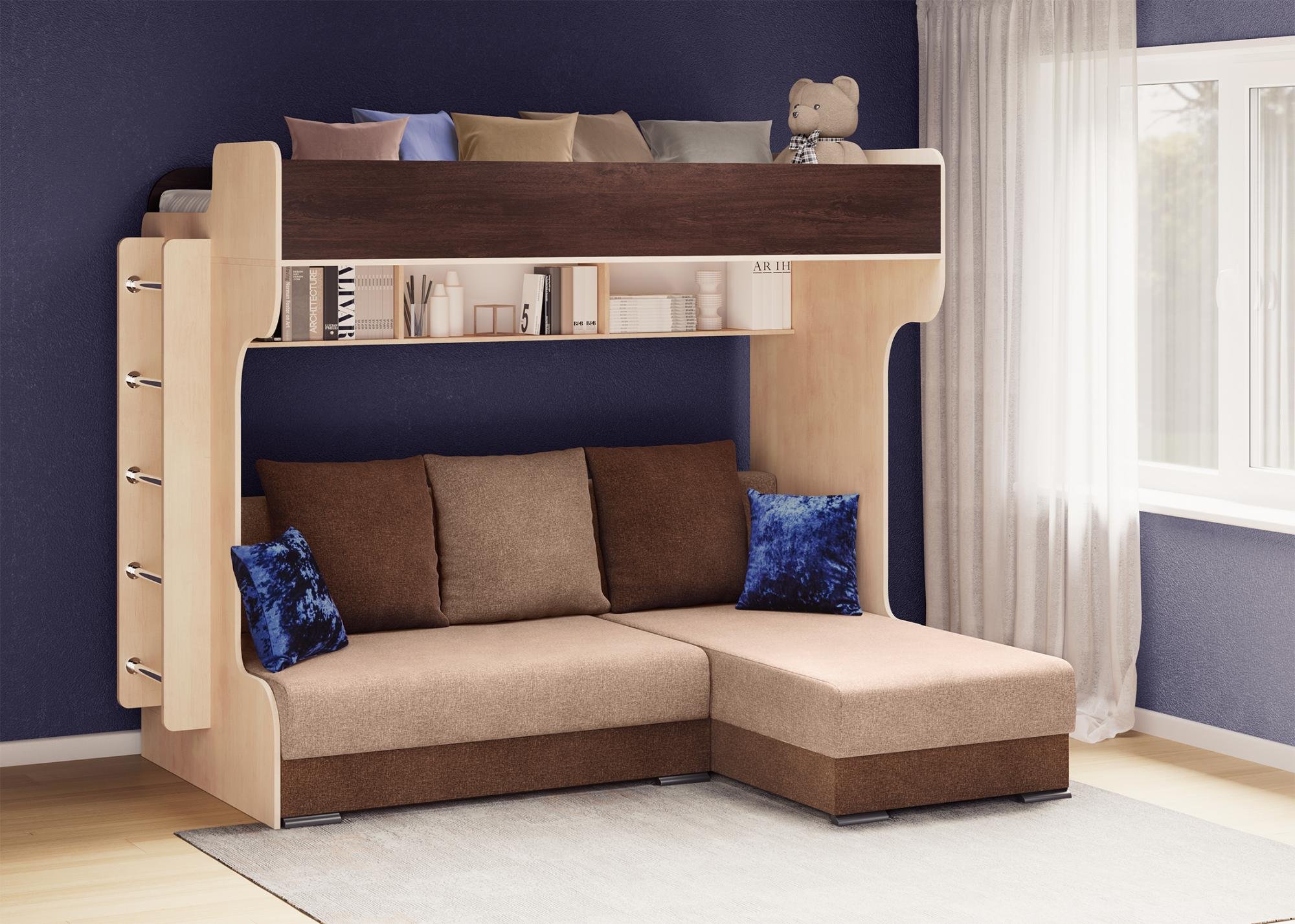 Детская комната с двухъярусной кроватью и угловым шкафом
