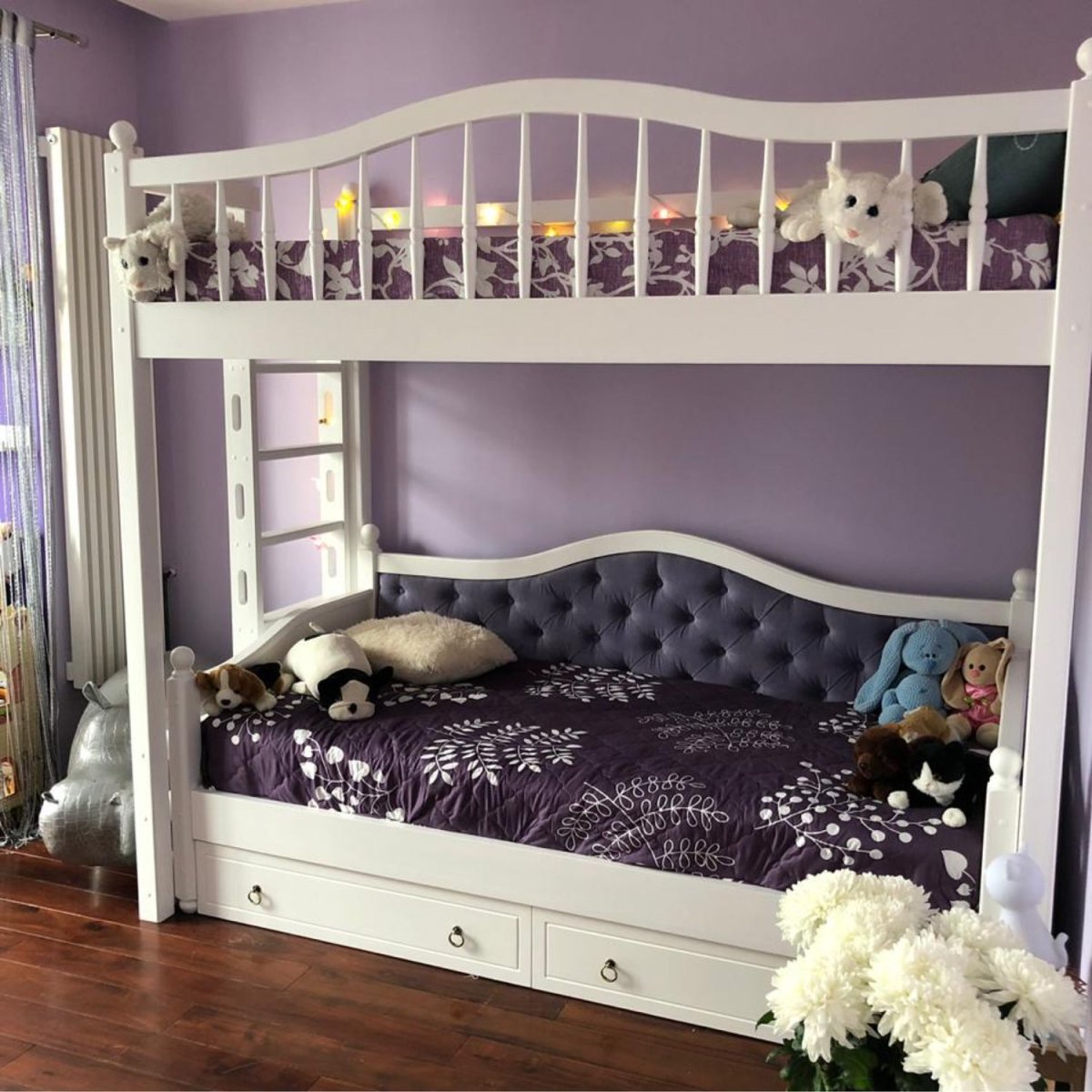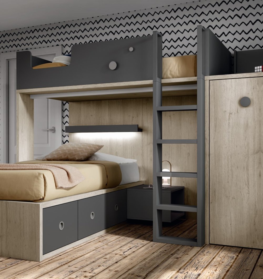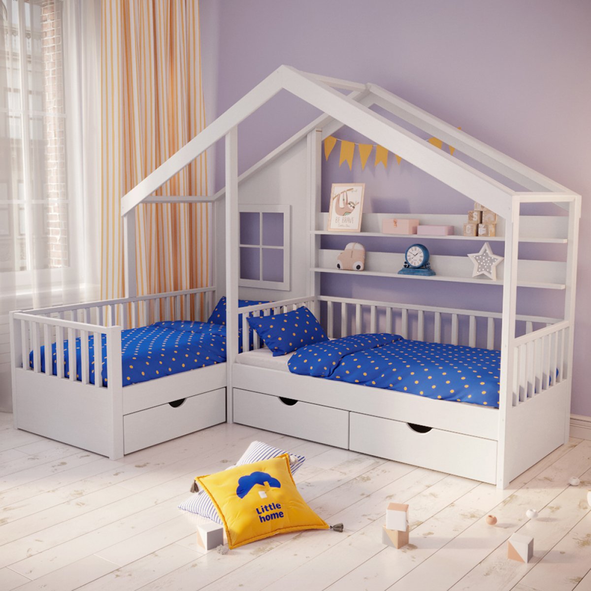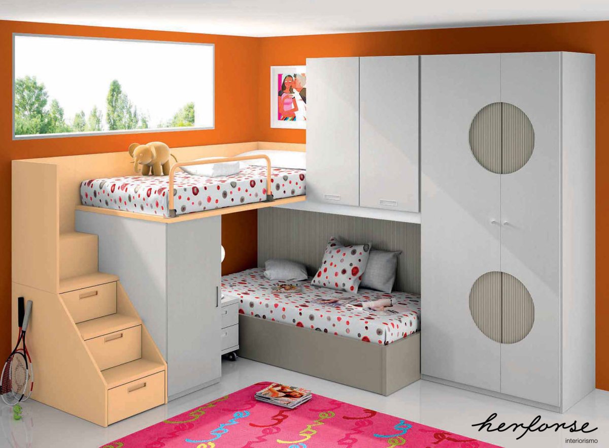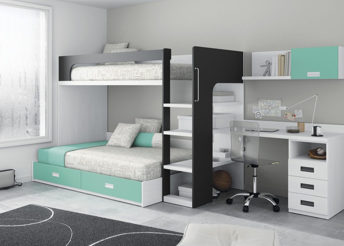 Детская комната с двухъярусной кроватью и угловым шкафом