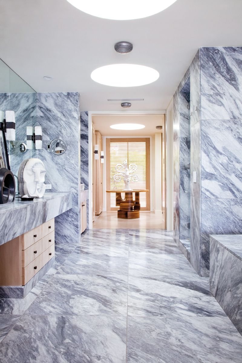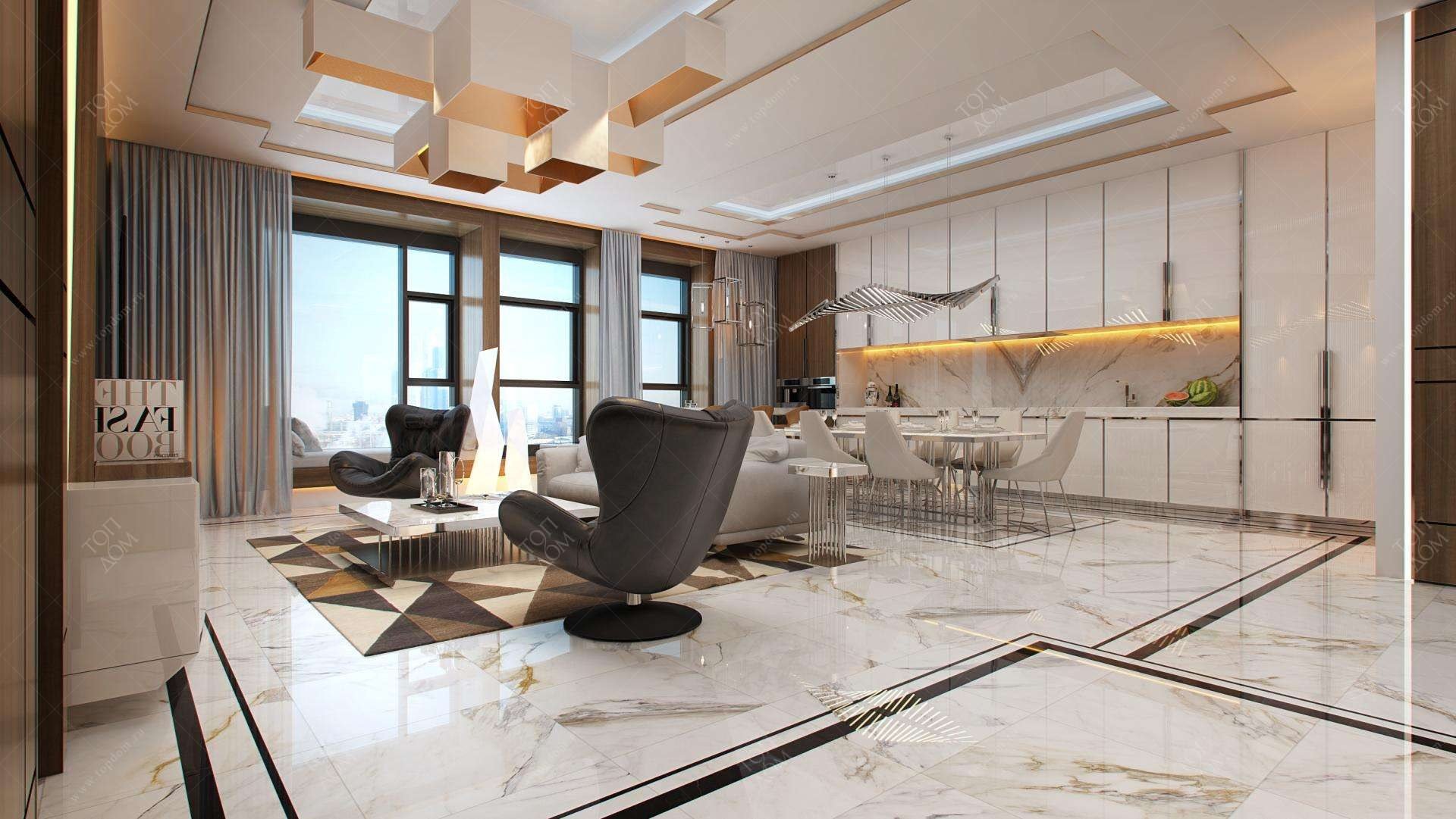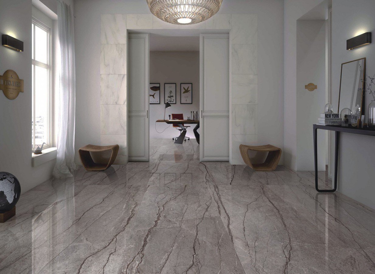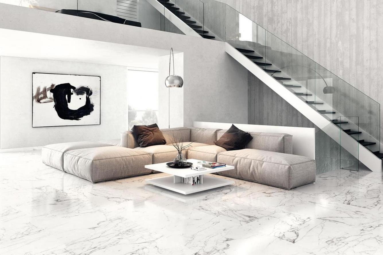 Интерьер с мраморным полом в современном стиле