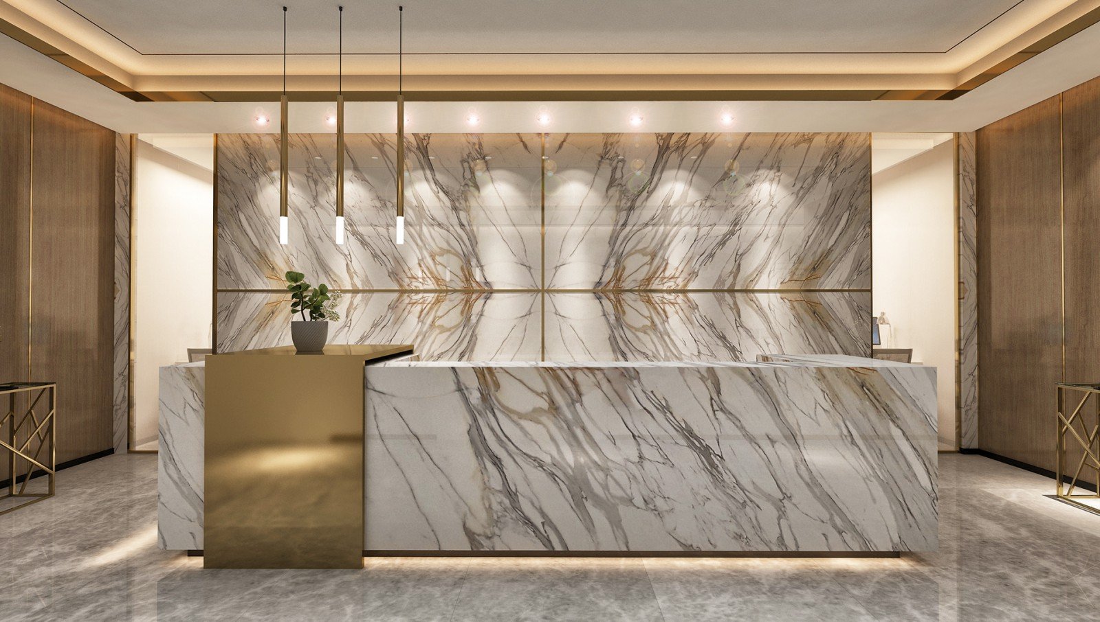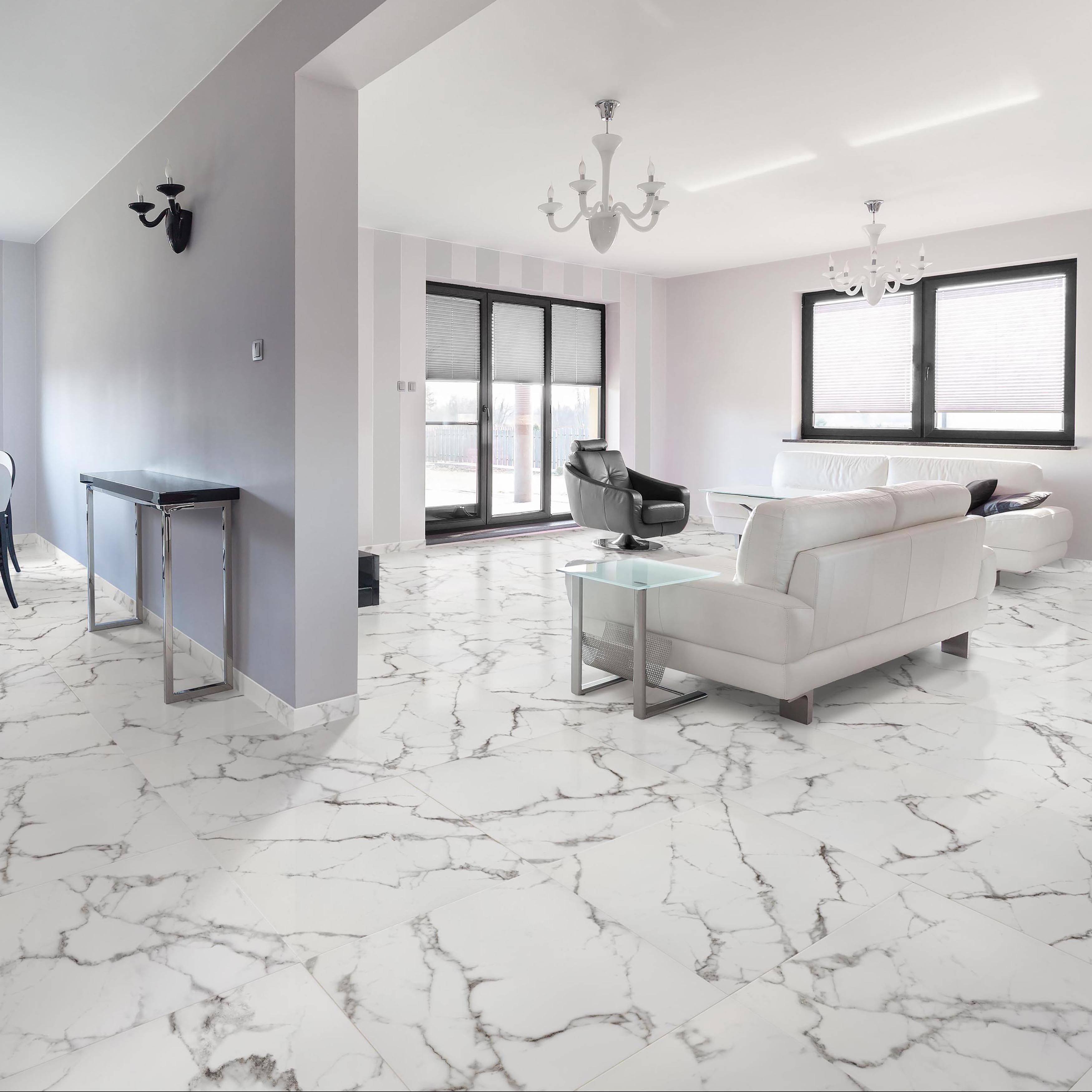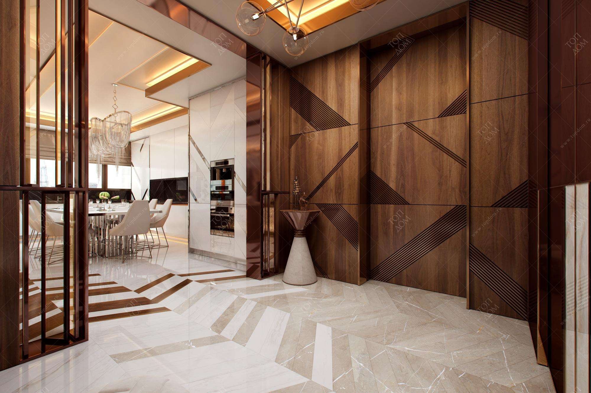 Интерьер с мраморным полом в современном стиле
