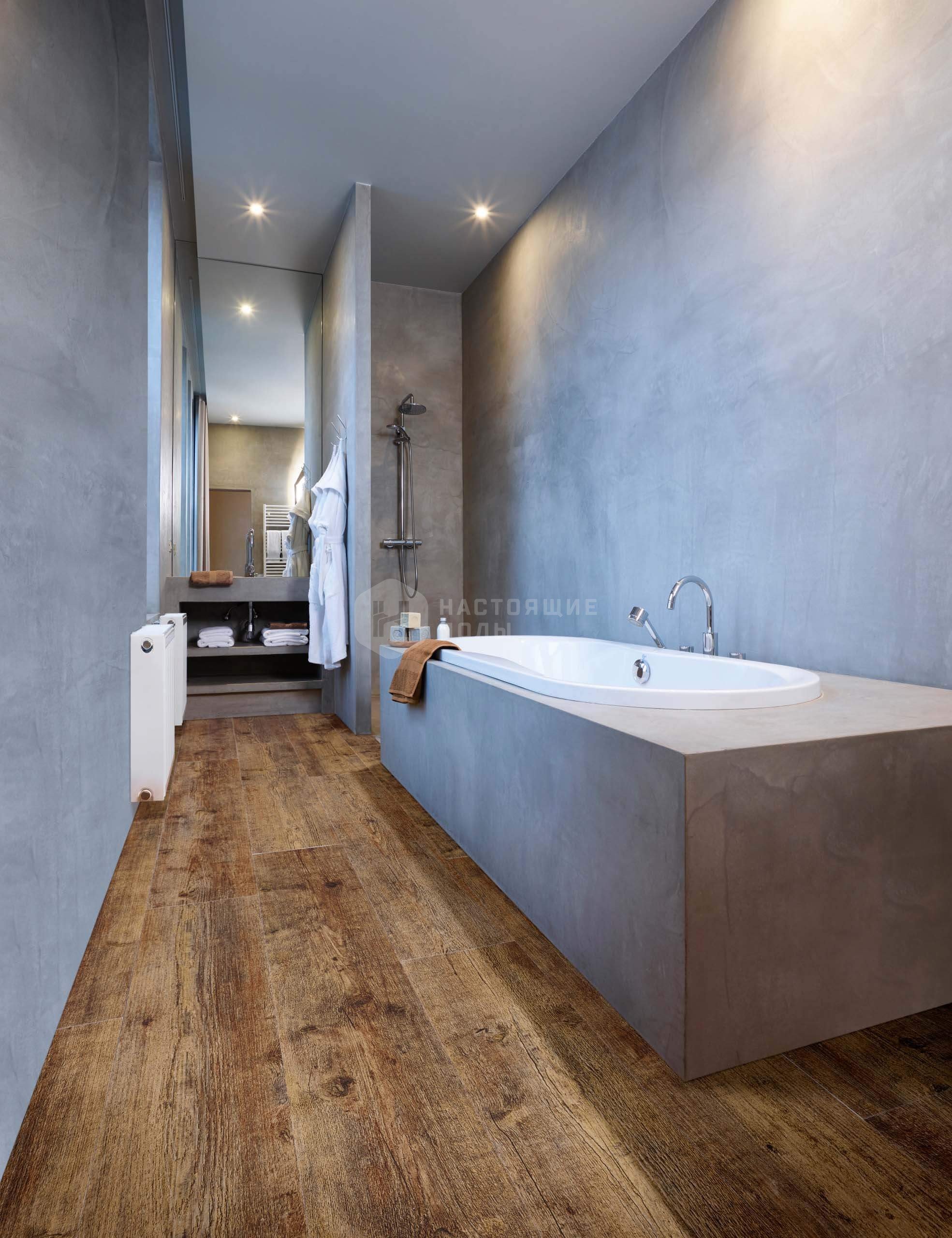 Ванная с плиткой под дерево