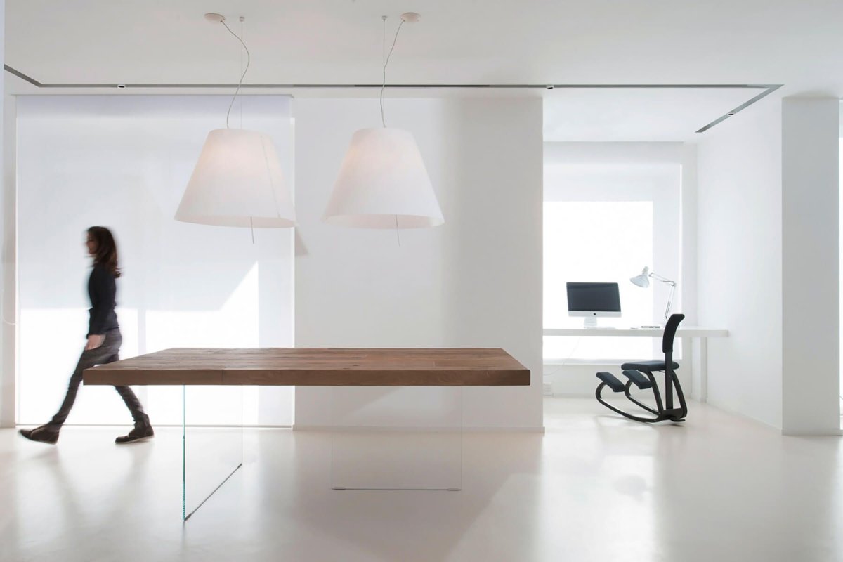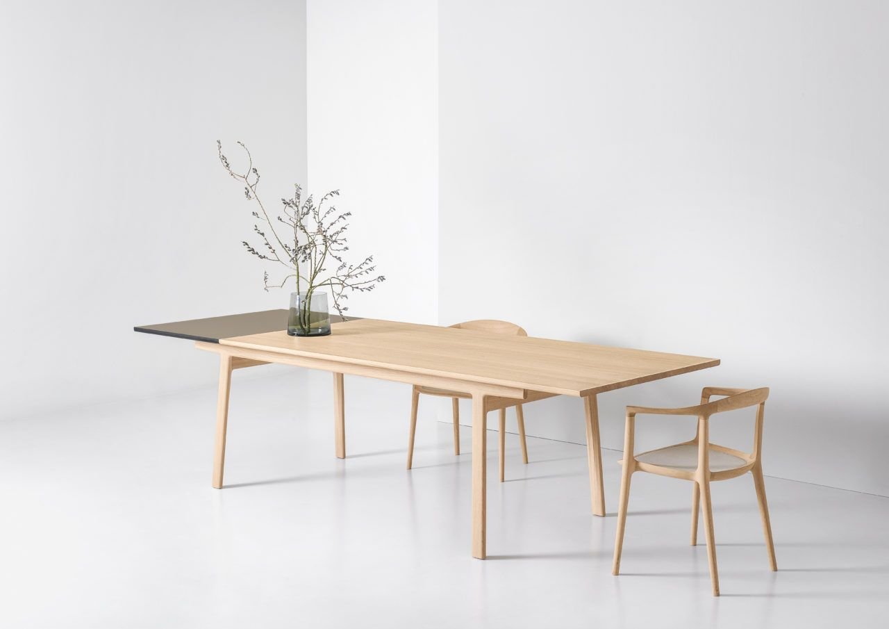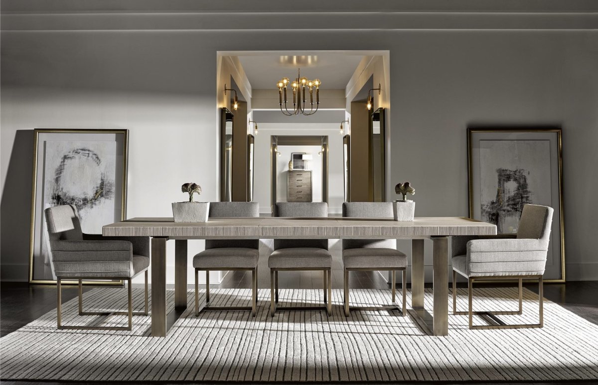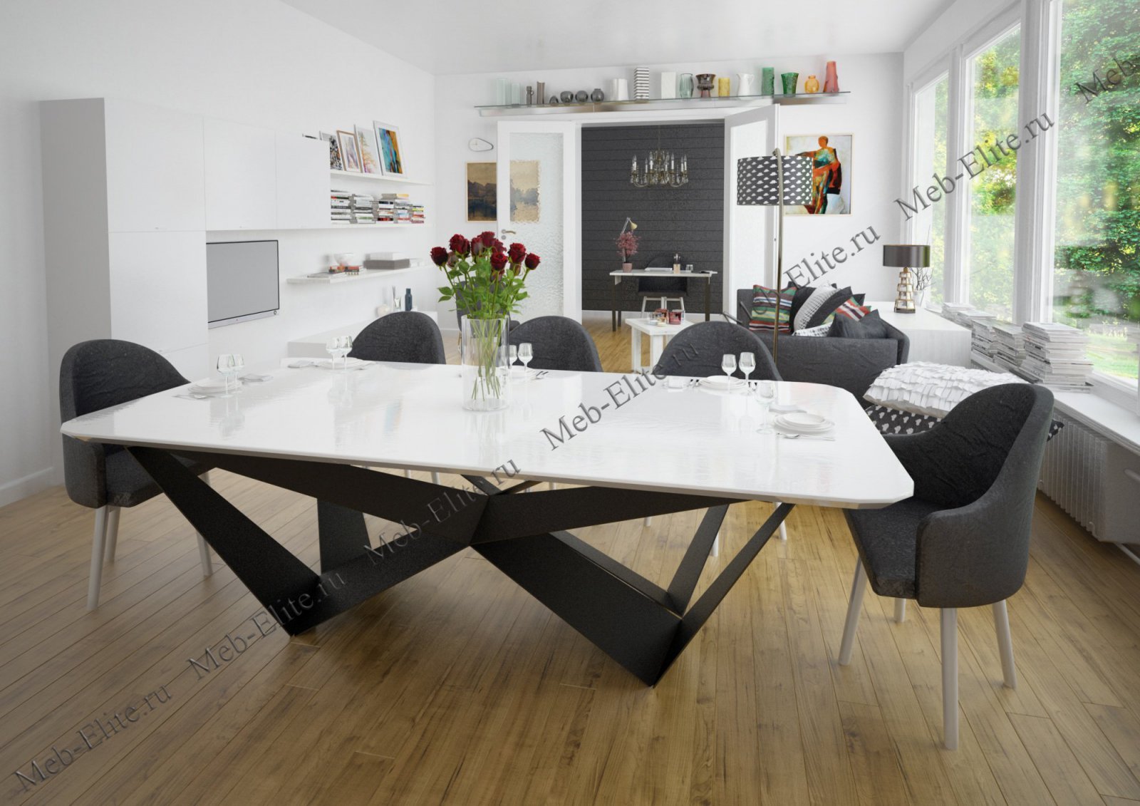Стол с мягкими стульями в стиле Контемпорари на белом фоне