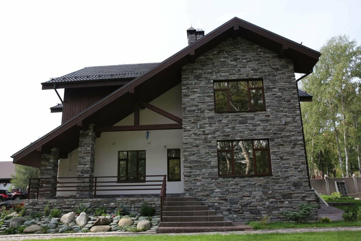 Отделка фасада диким камнем