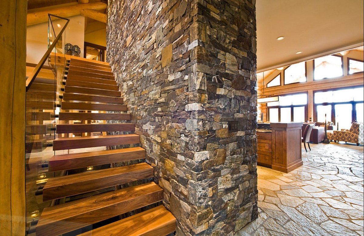 Интерьер из камня и дерева