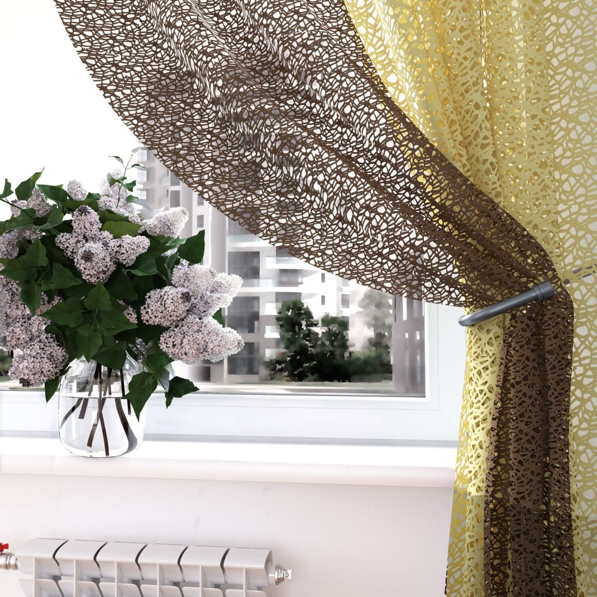 Тюль на ленте «паутина» 140х260 см цвет серо-бежевый