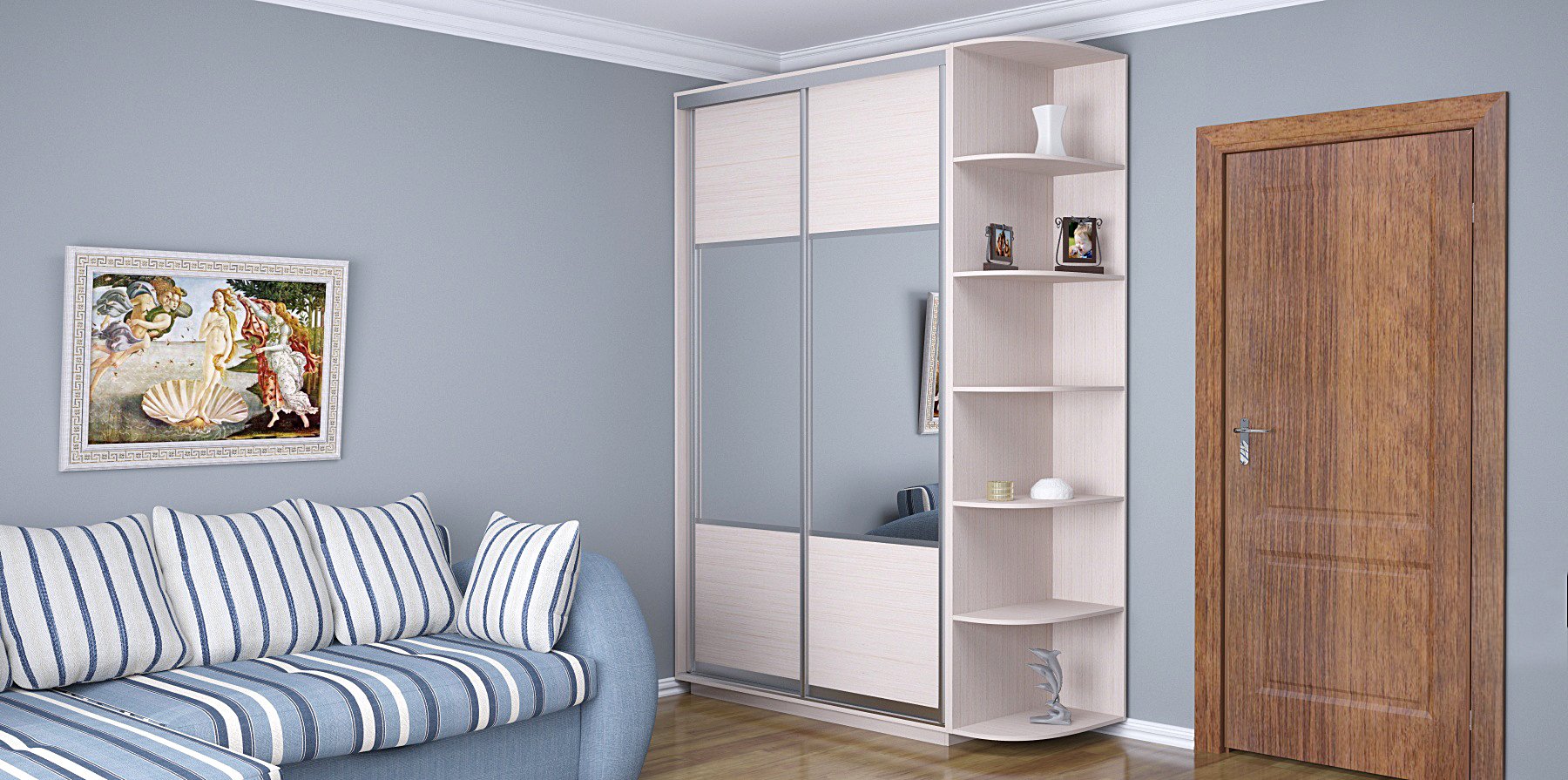 Шкаф-купе с угловыми полками сбоку маэстро-2