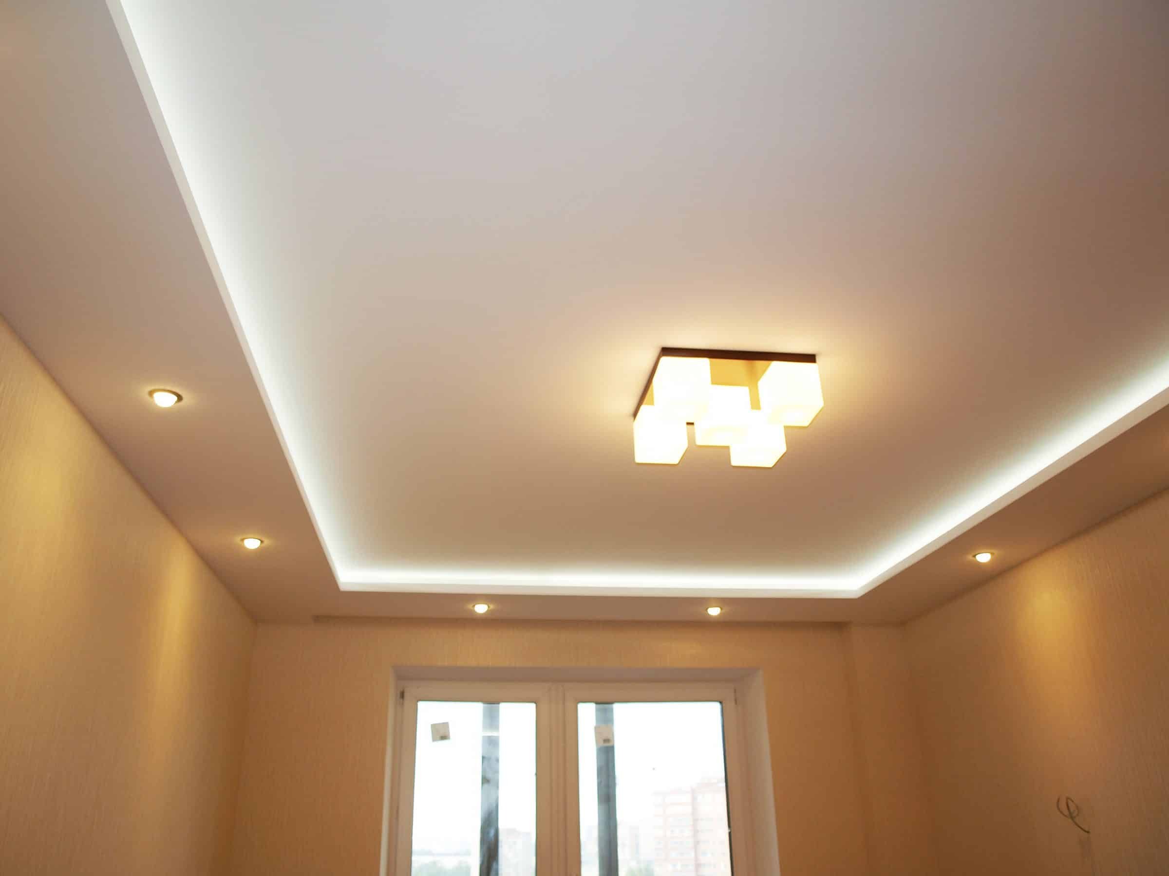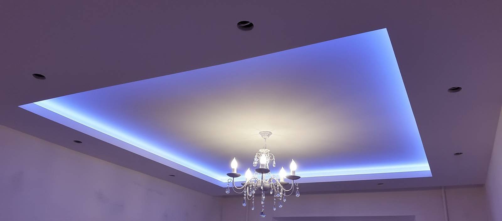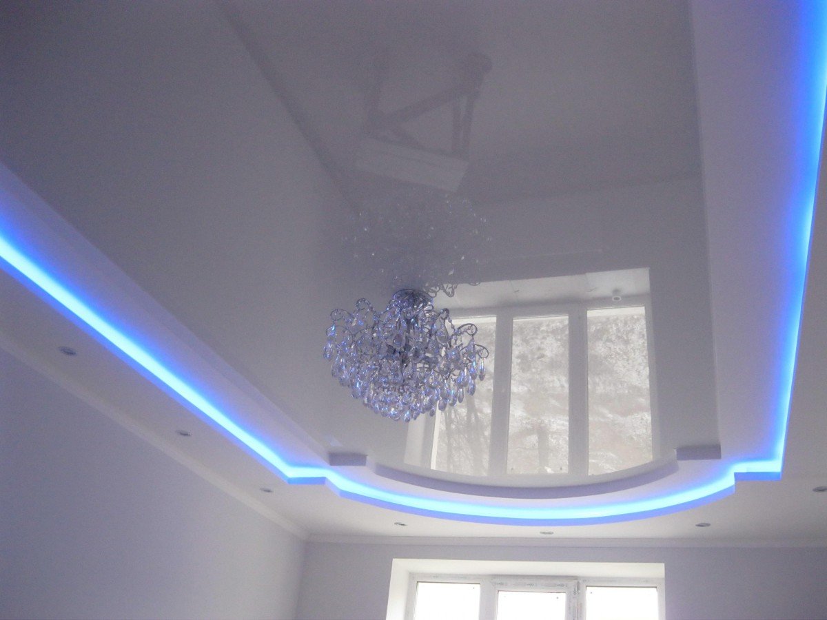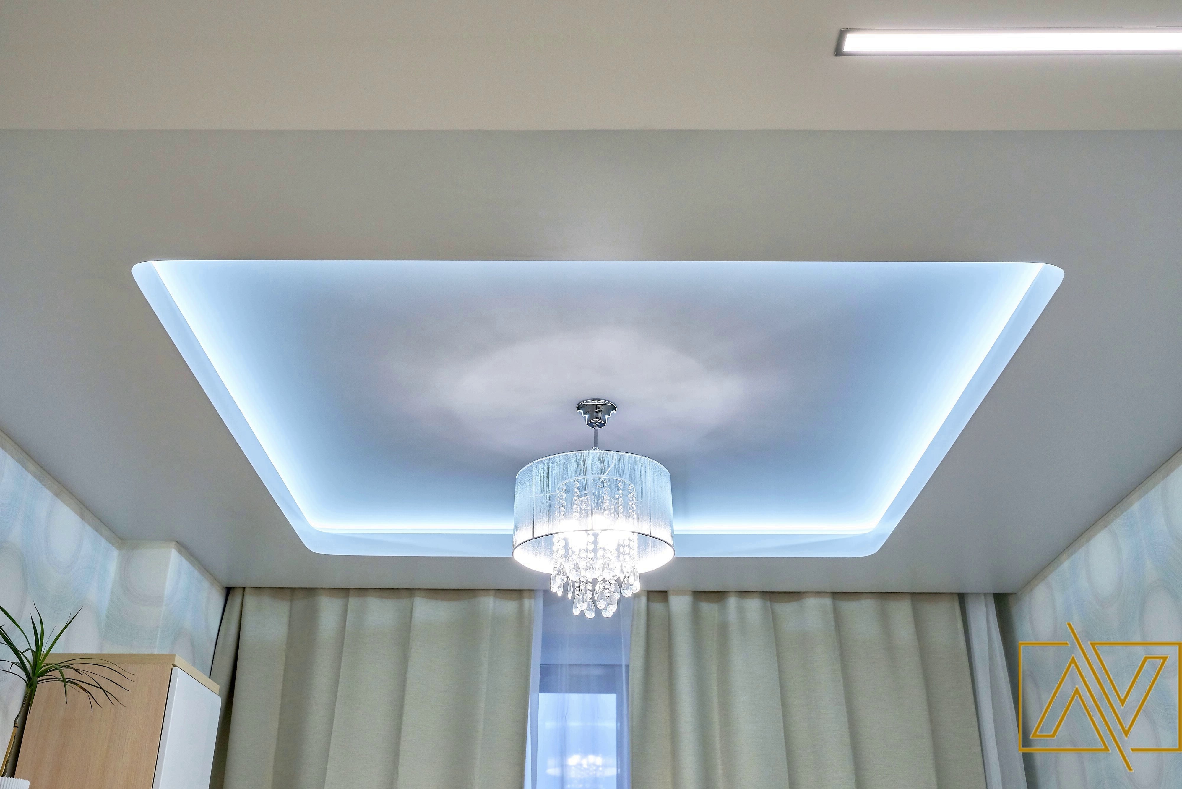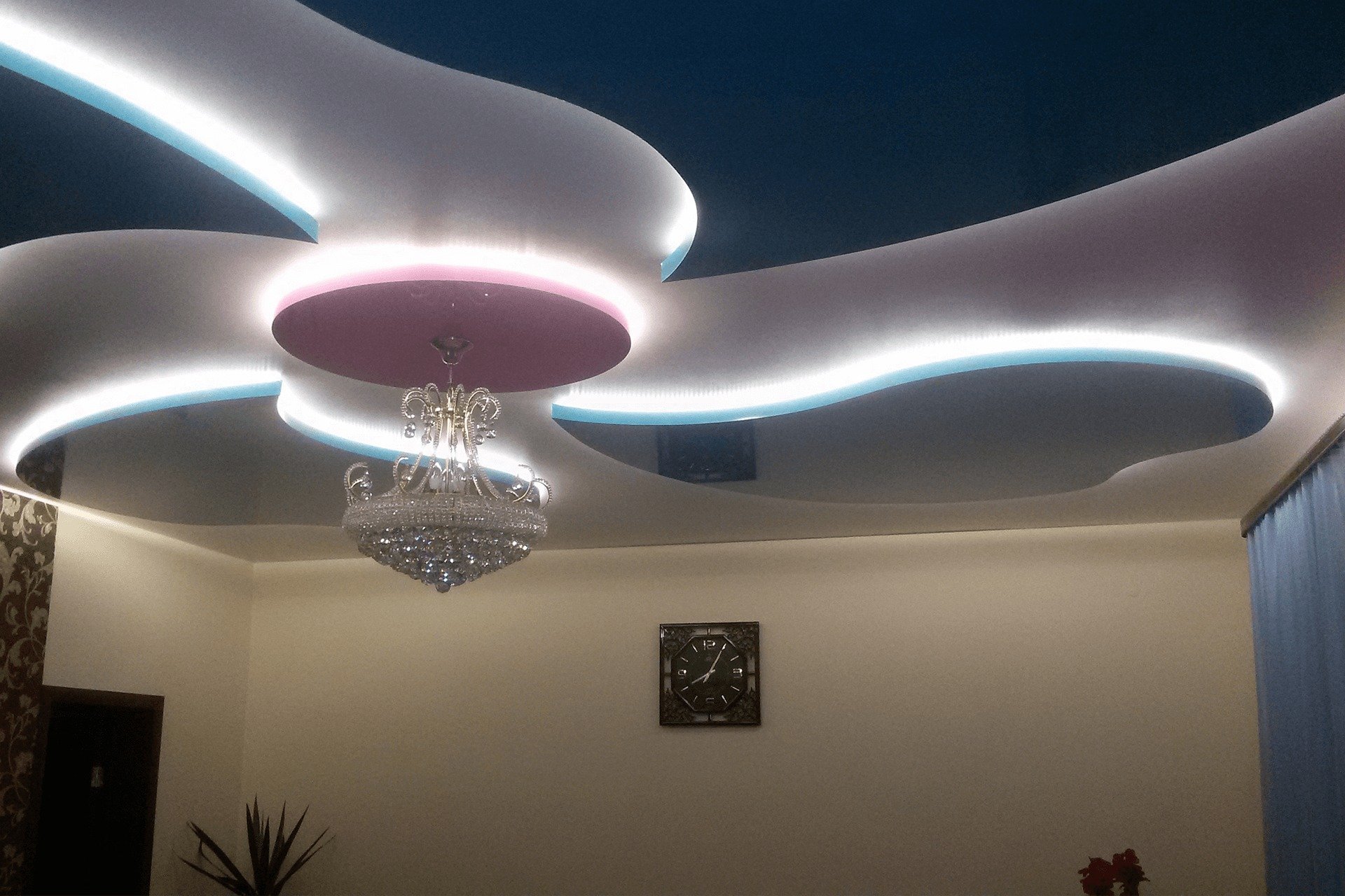 Натяжной потолок с подсветкой по периметру двухуровневый