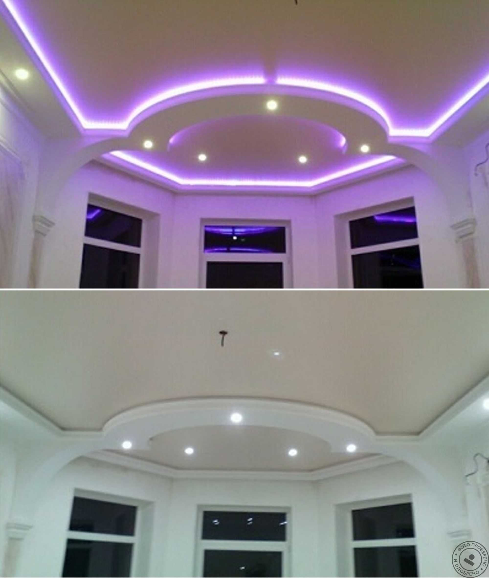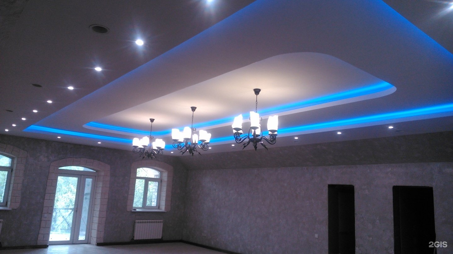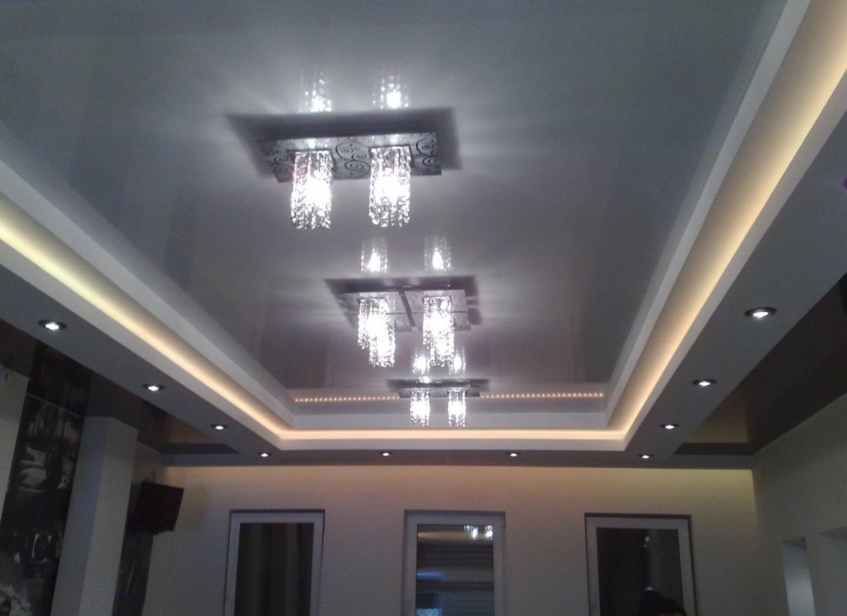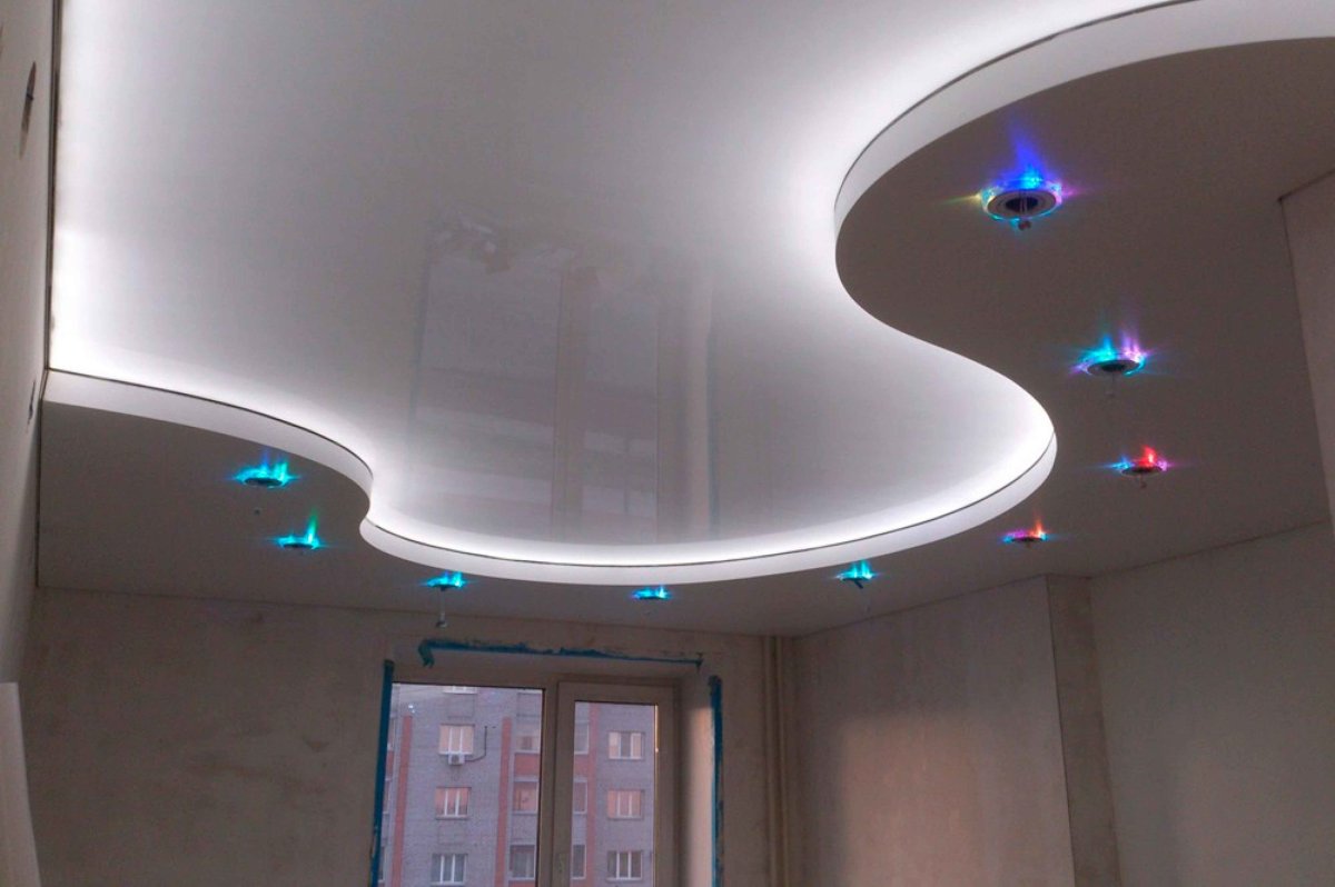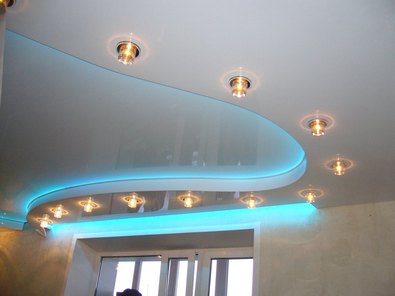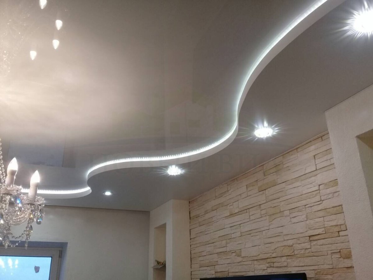 Натяжной потолок с подсветкой по периметру двухуровневый