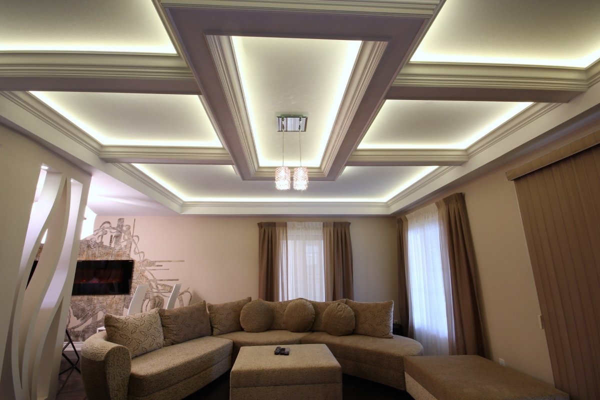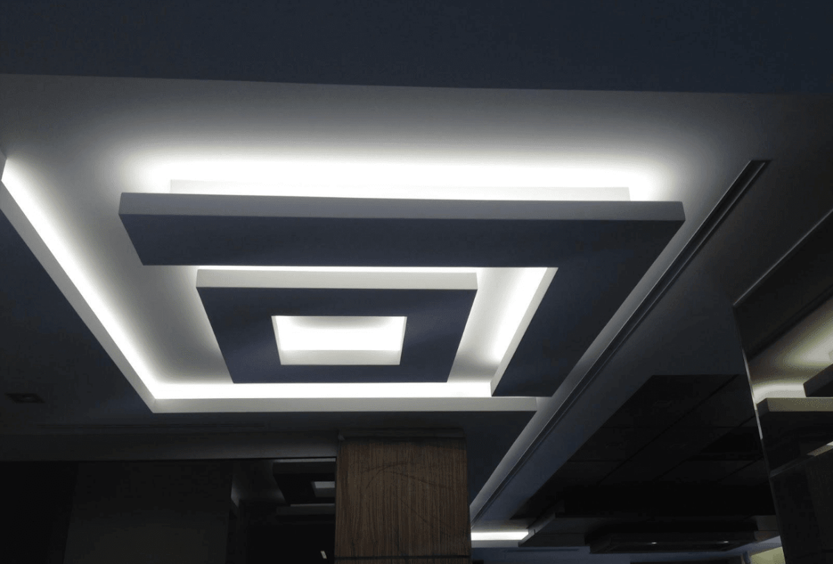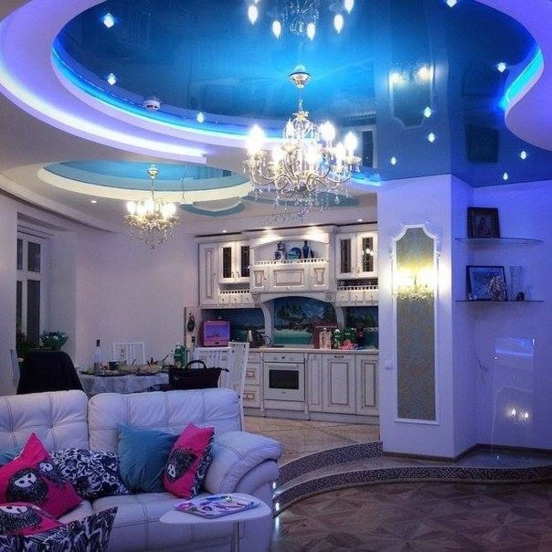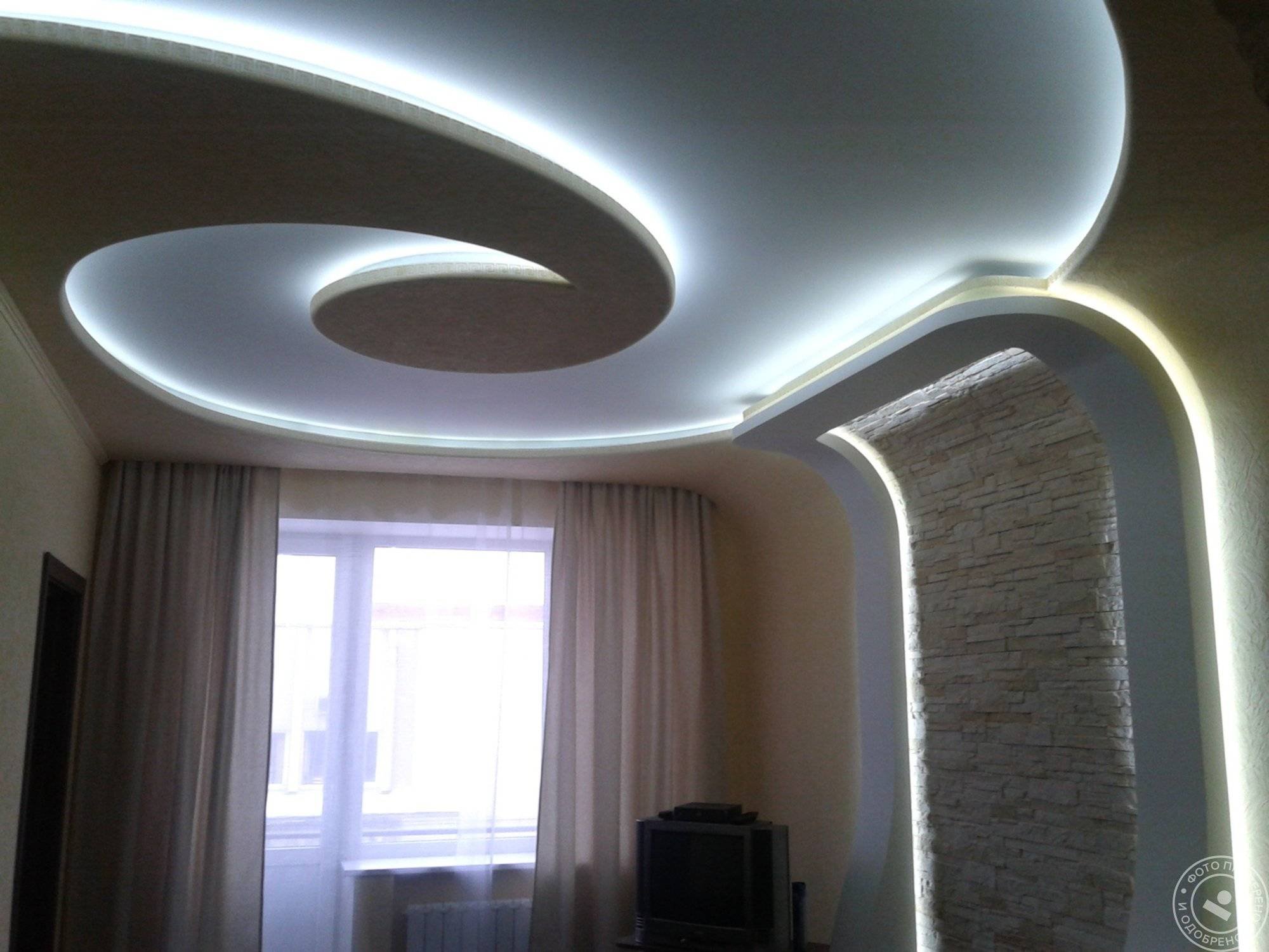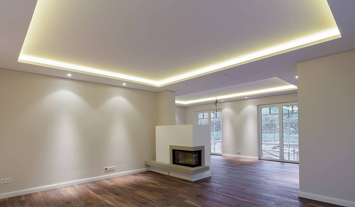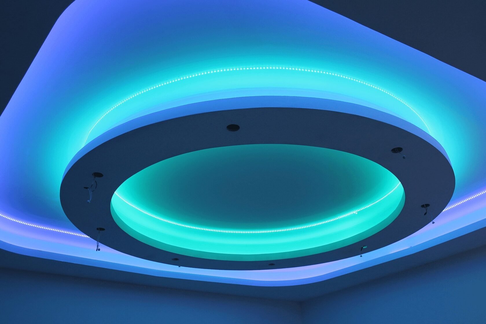 Натяжной потолок с подсветкой по периметру двухуровневый