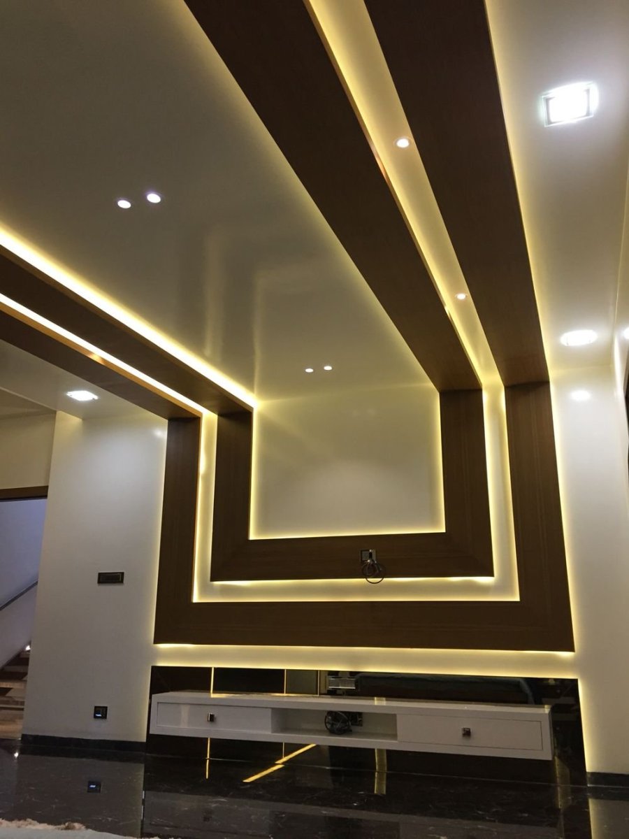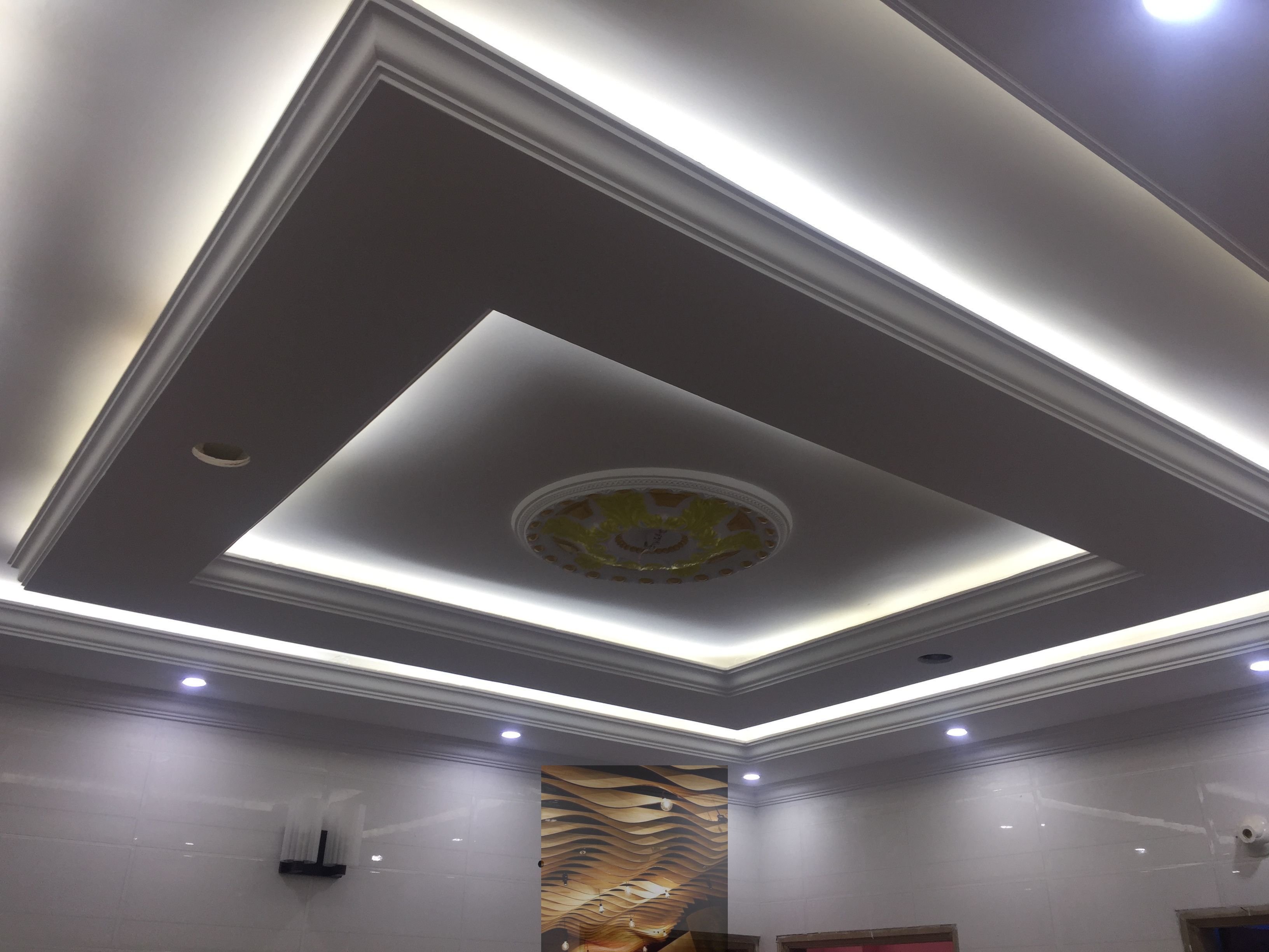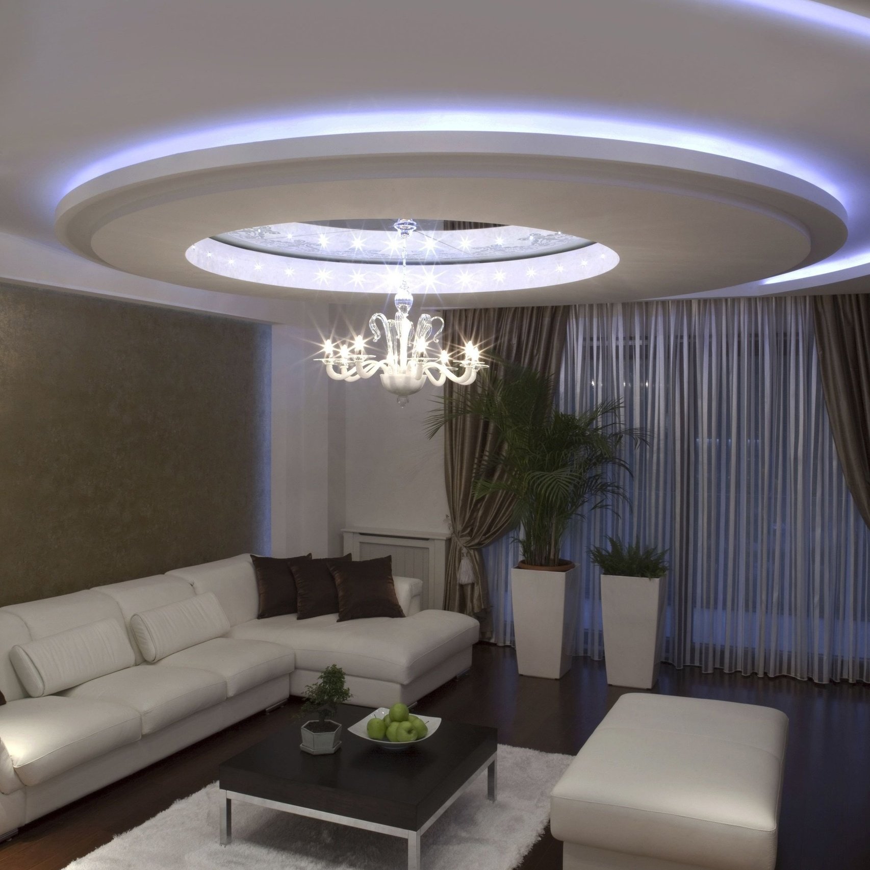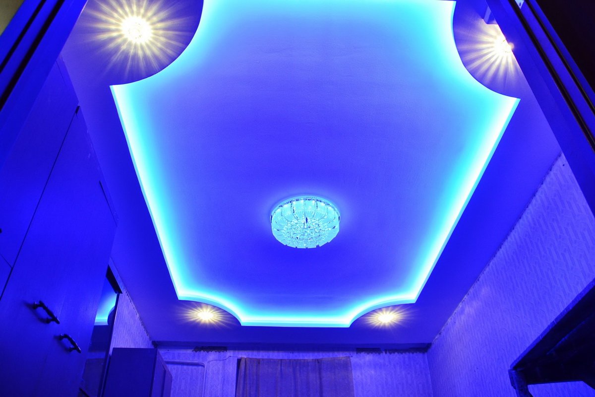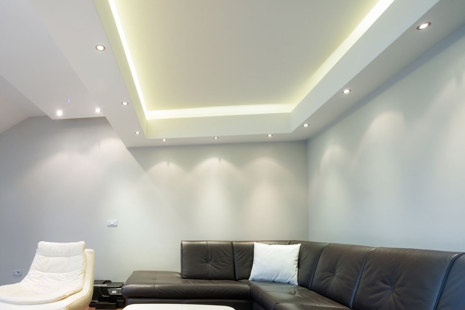 Натяжной потолок с подсветкой по периметру двухуровневый