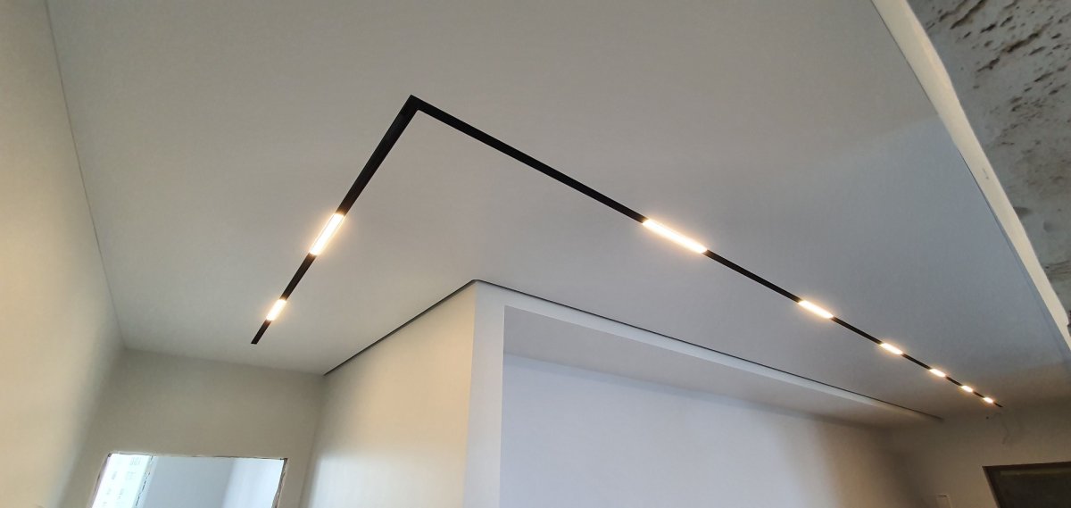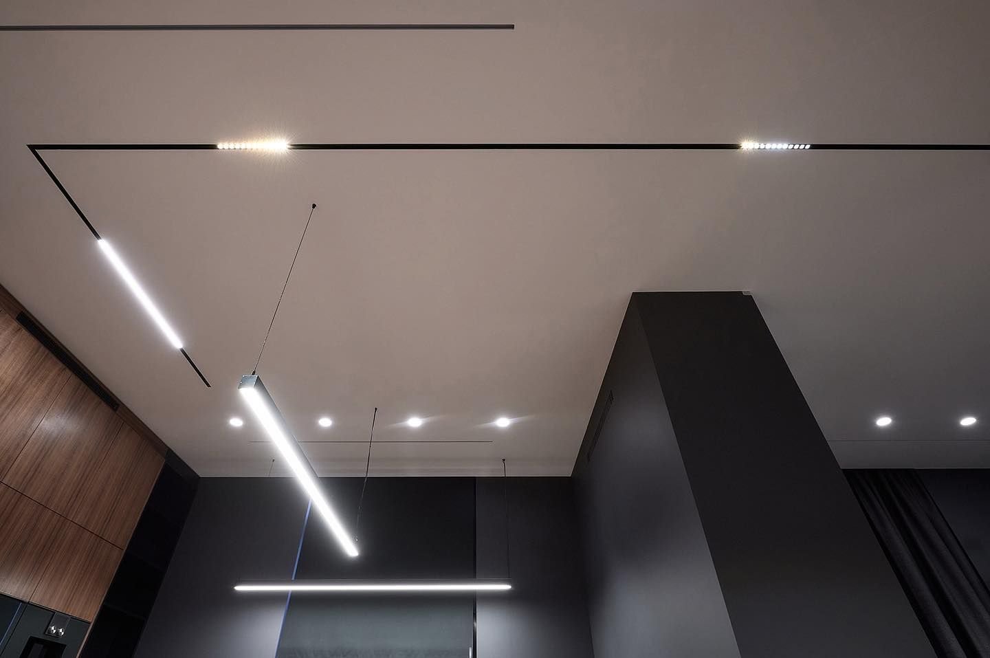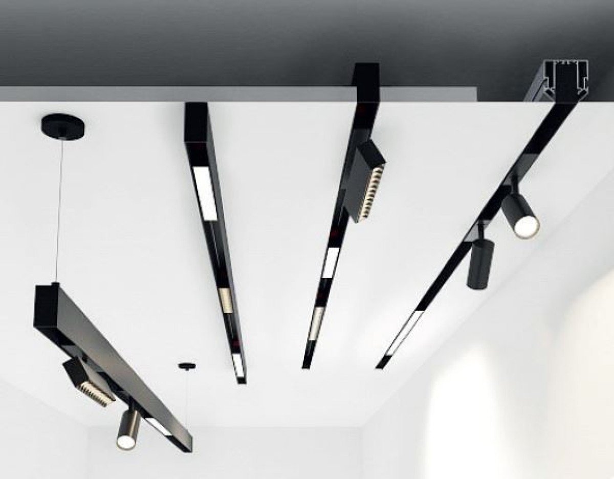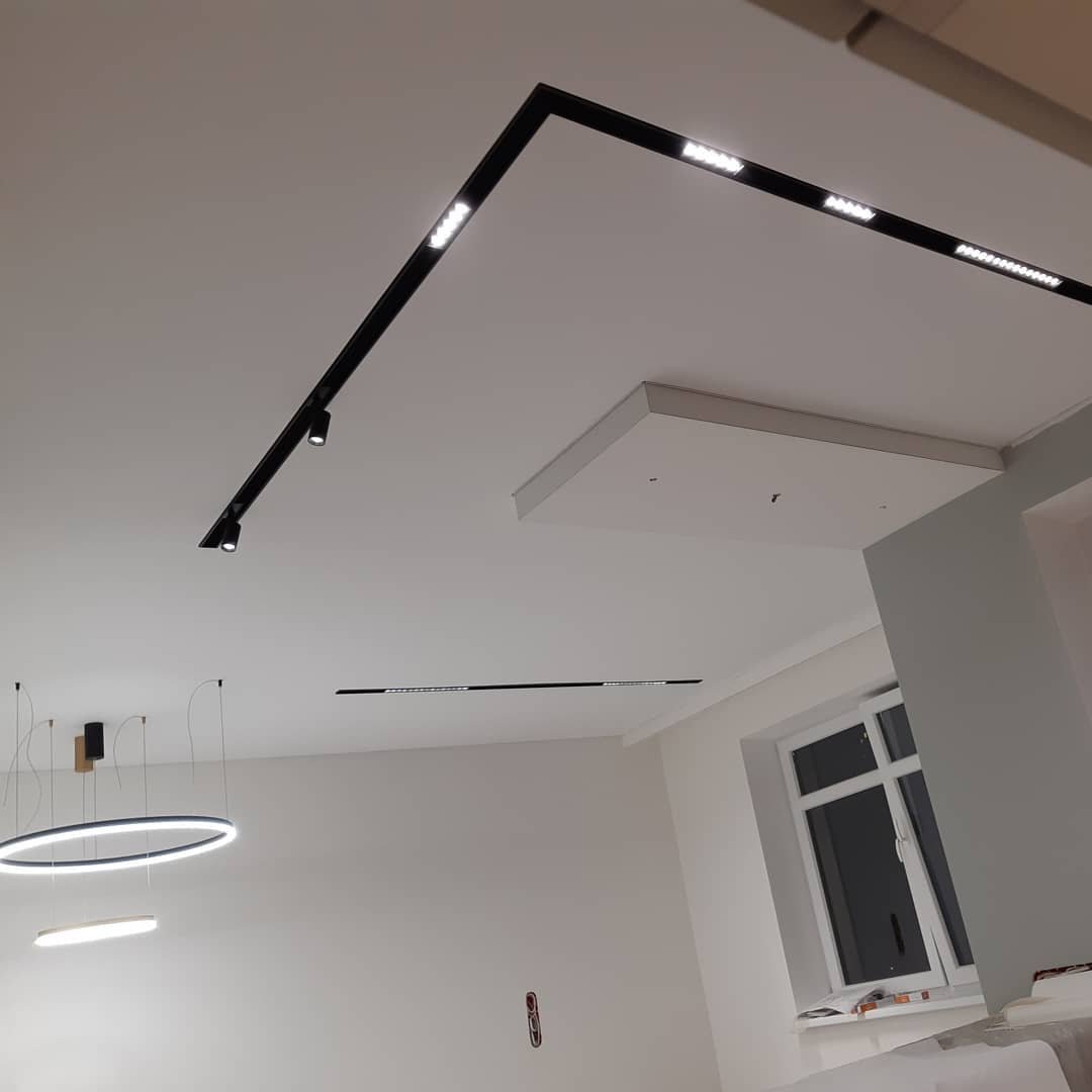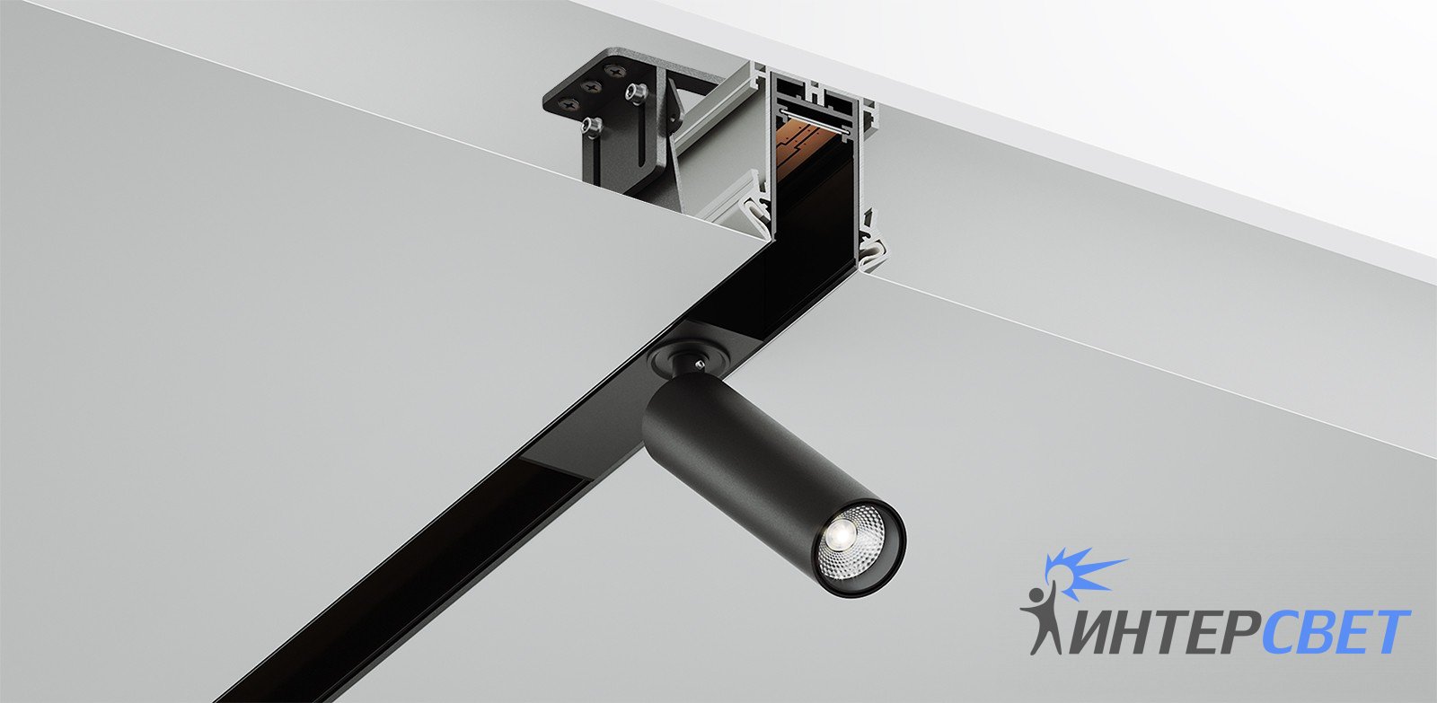 Магнитный трековый встраиваемый шинопровод в интерьере