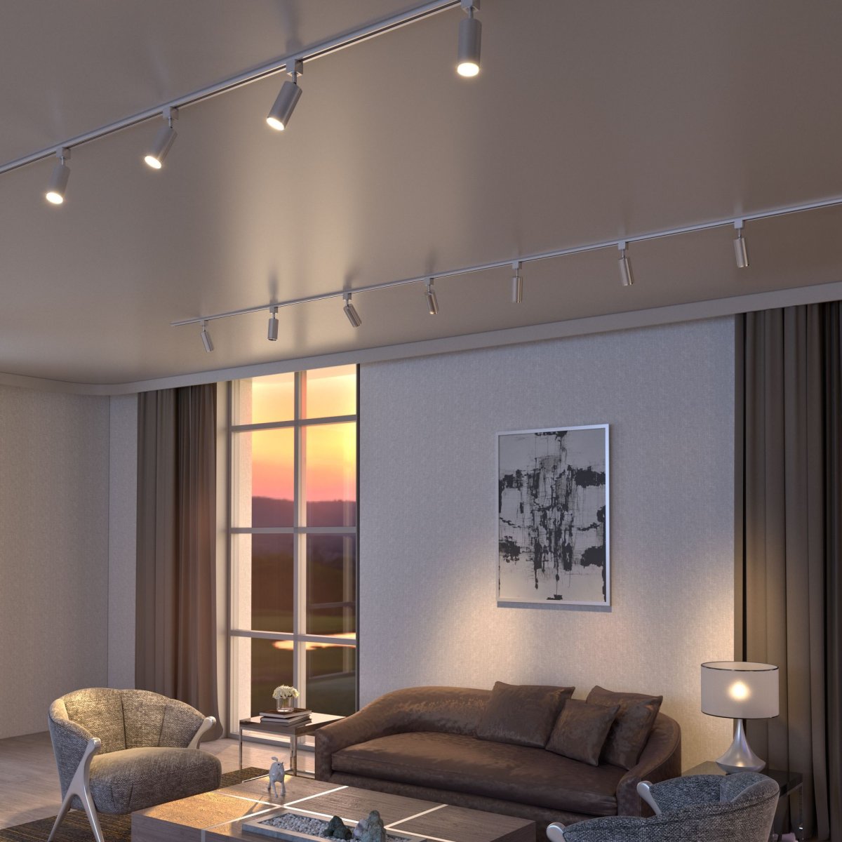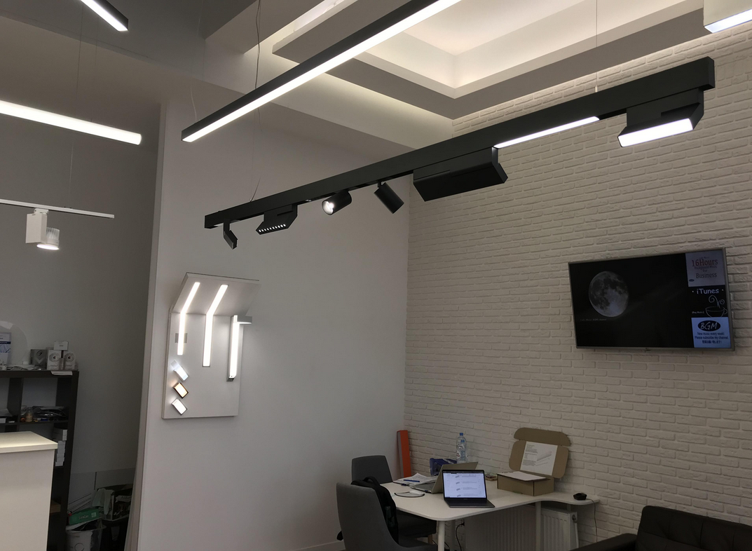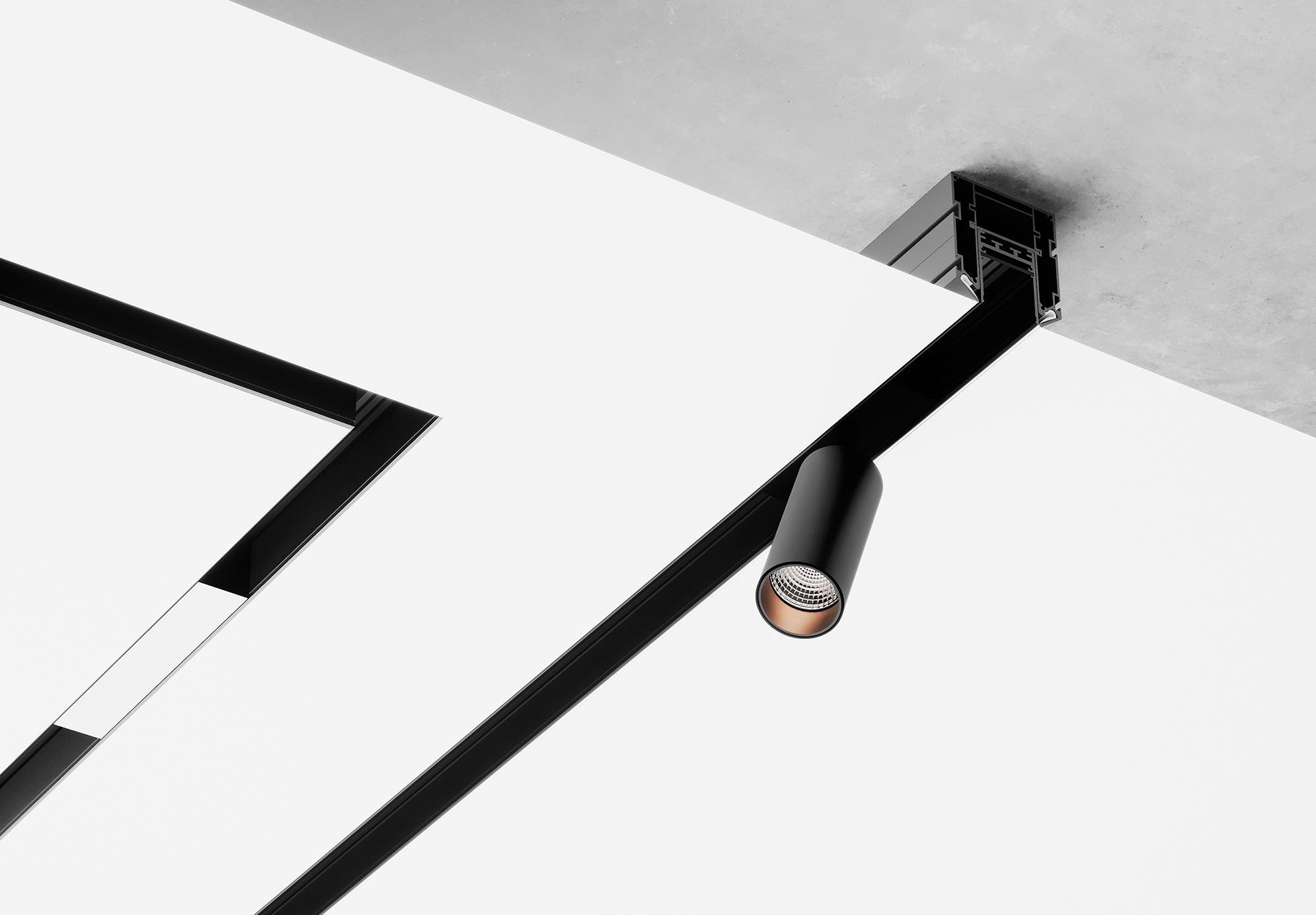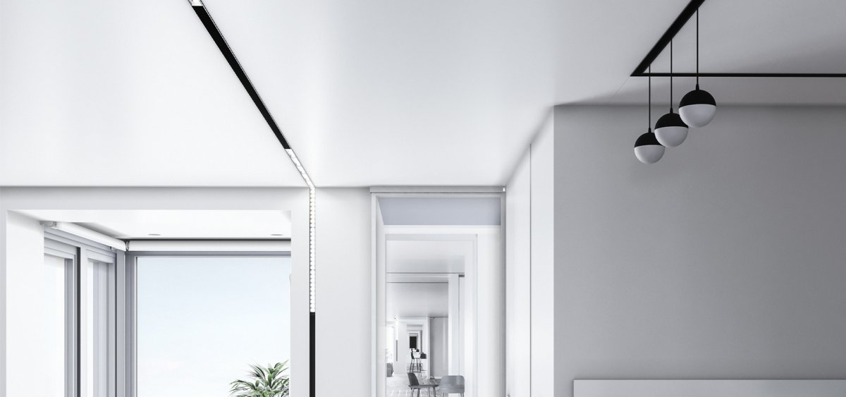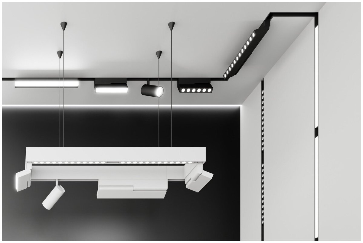 Магнитный трековый встраиваемый шинопровод в интерьере