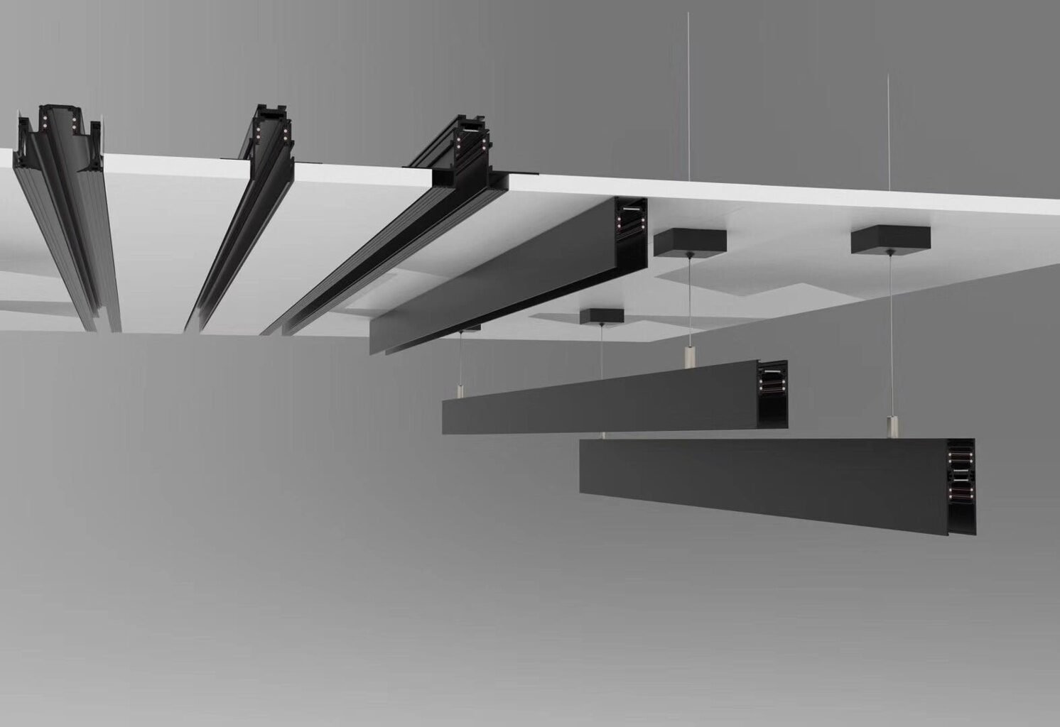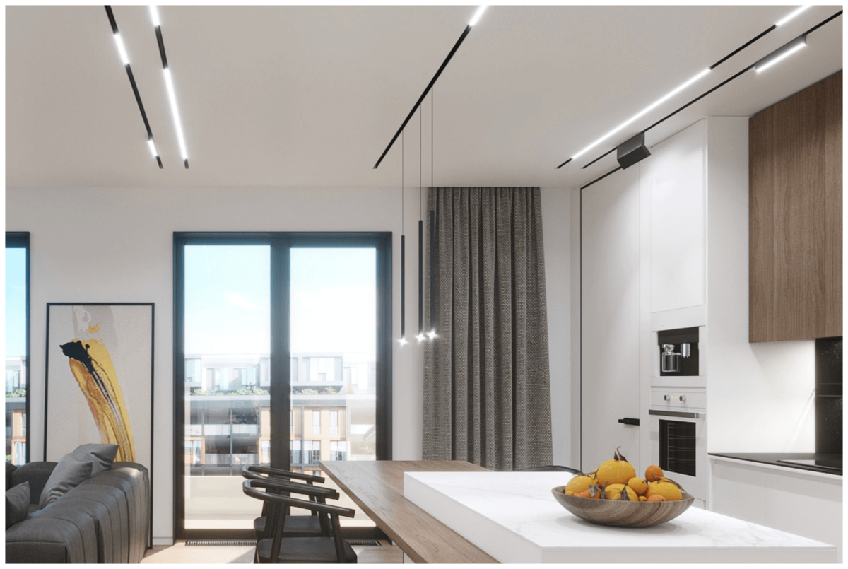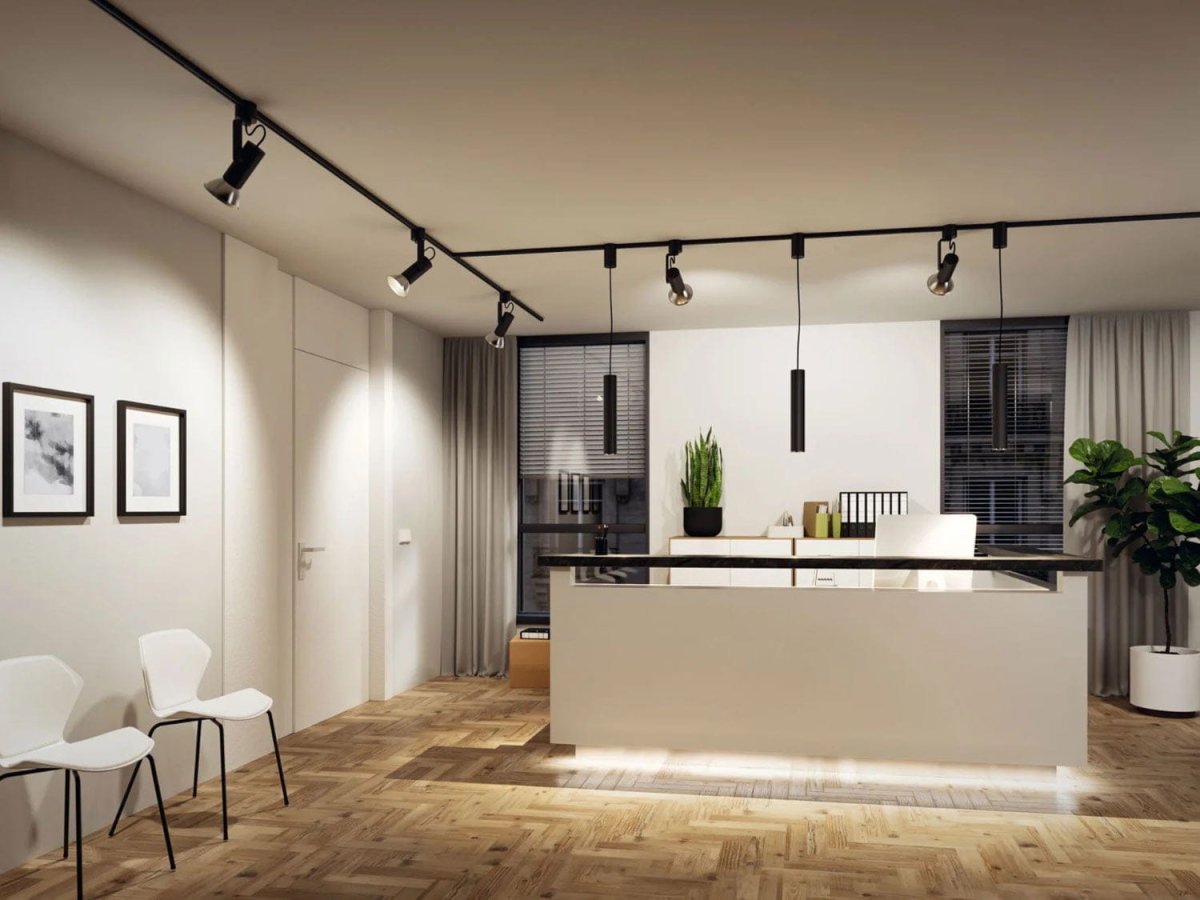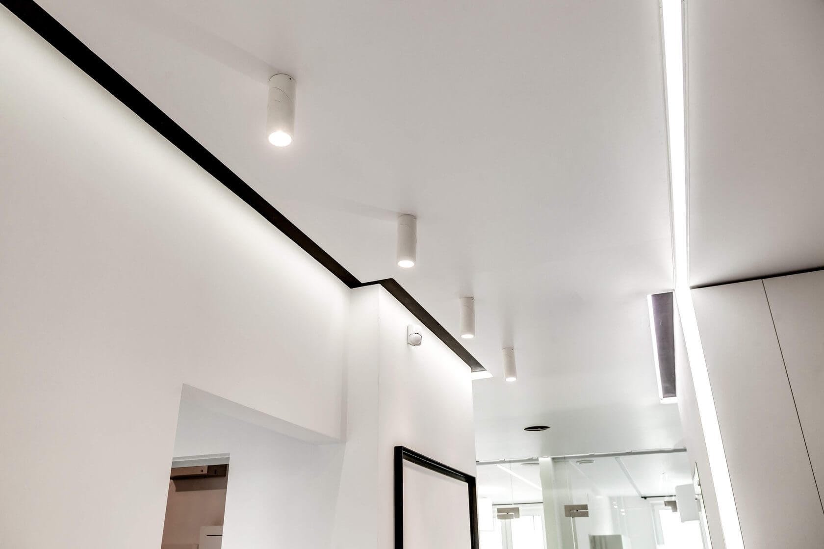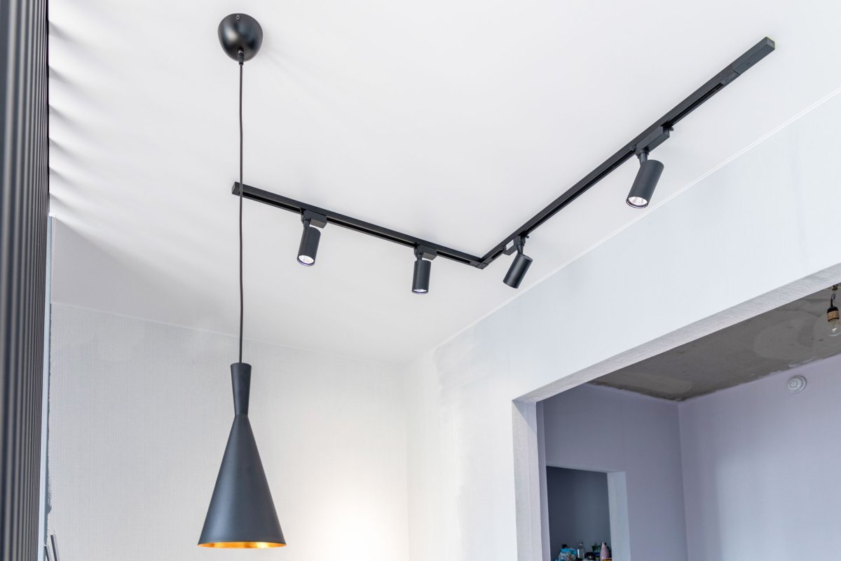 Магнитный трековый встраиваемый шинопровод в интерьере