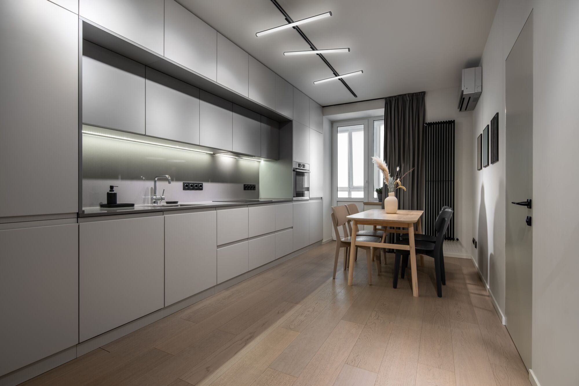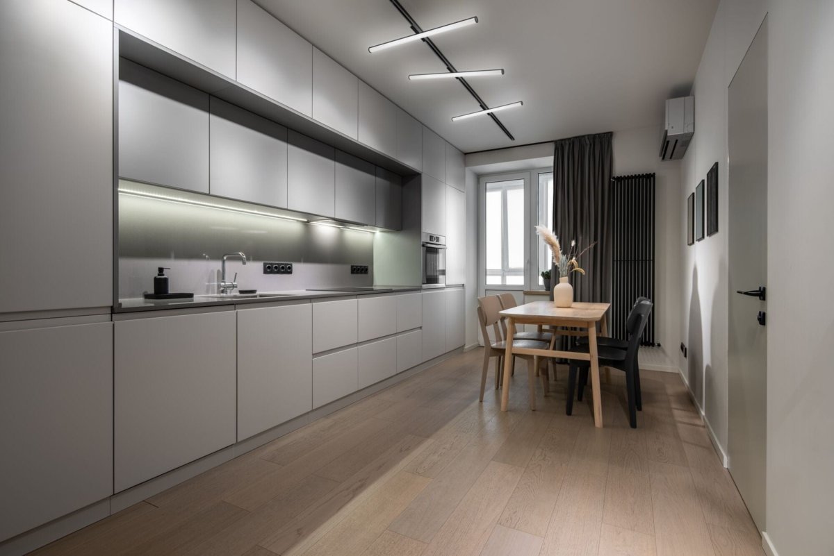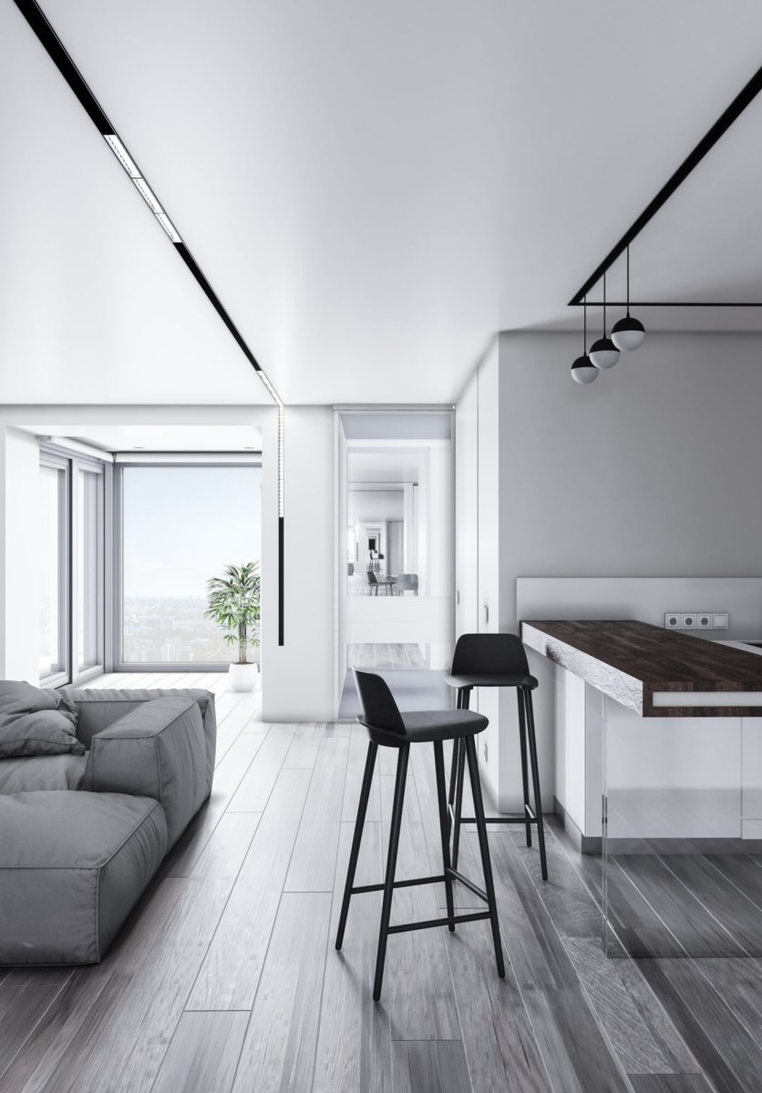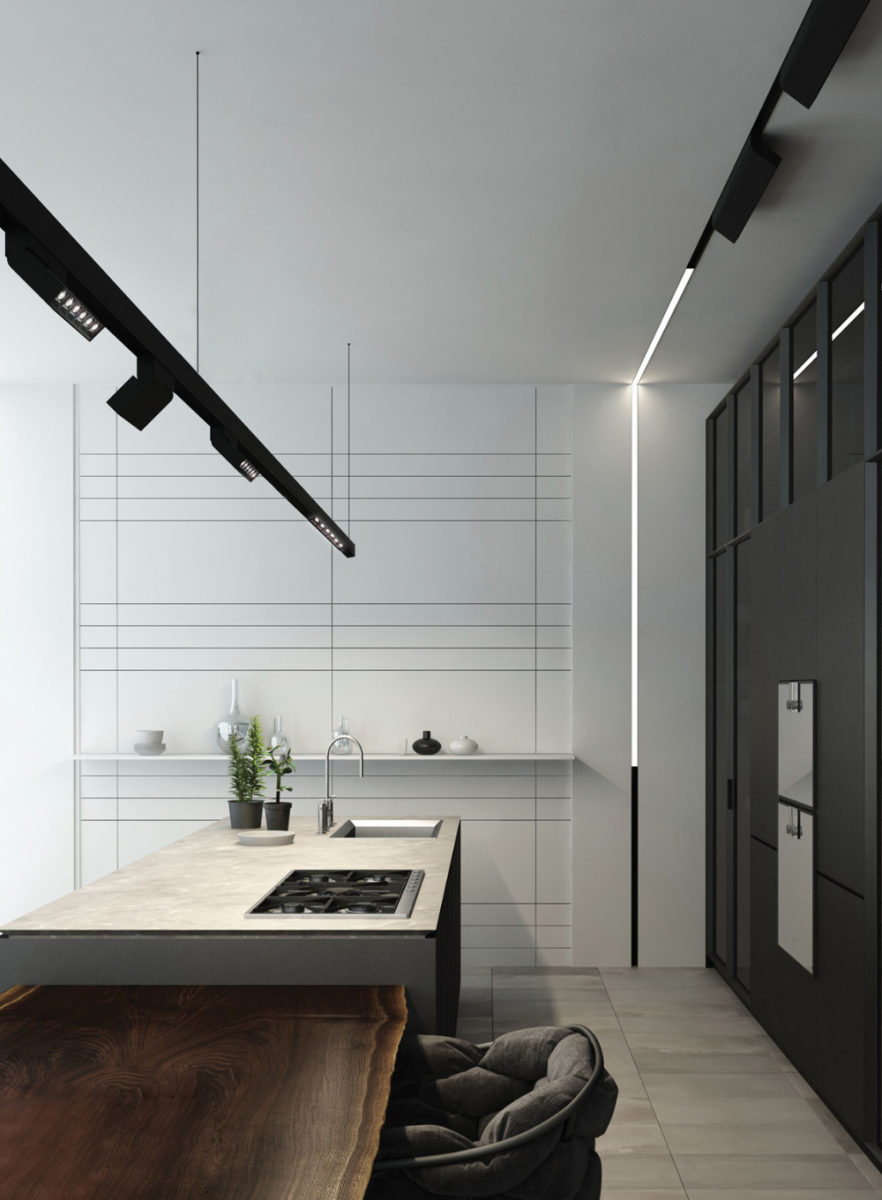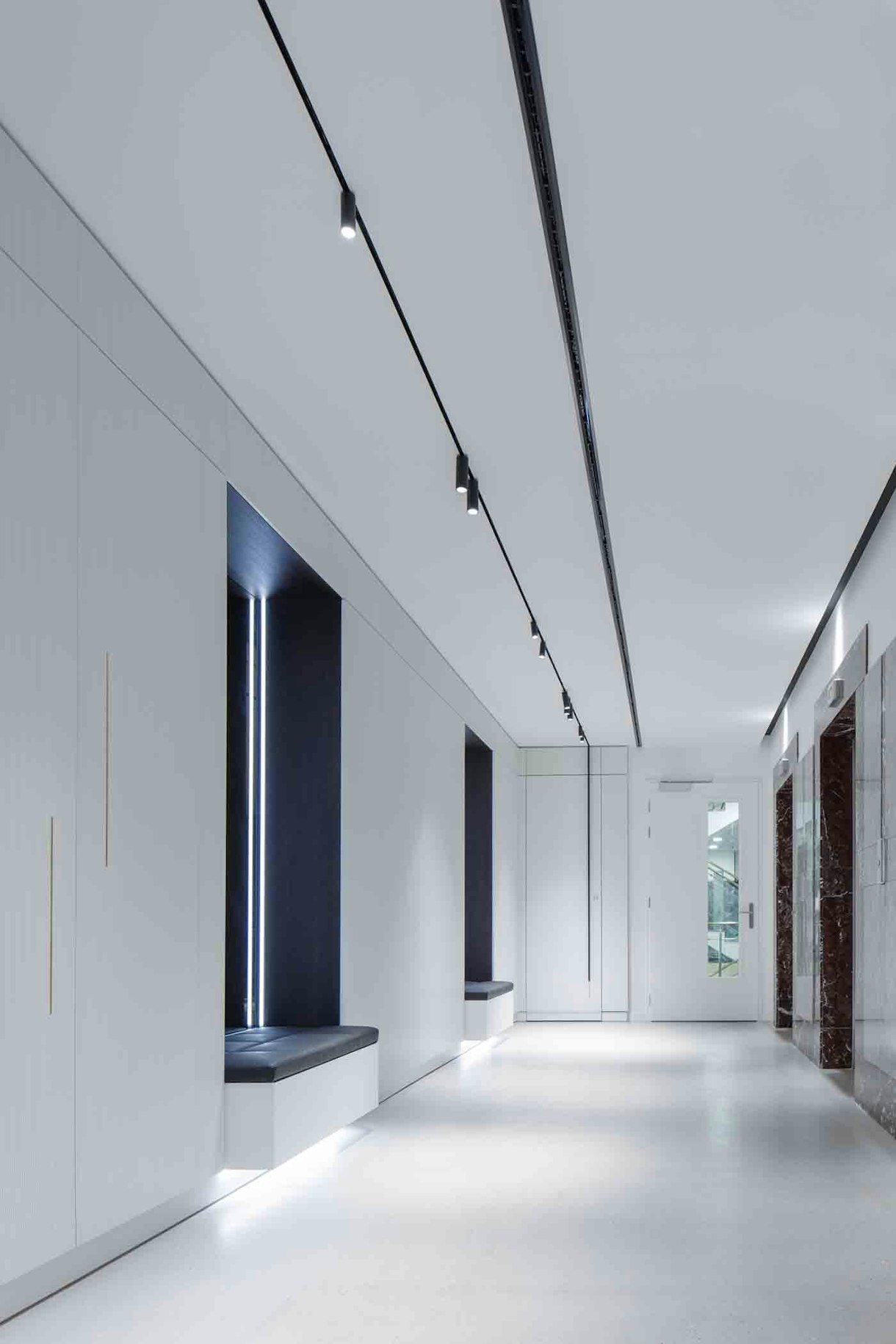 Магнитный трековый встраиваемый шинопровод в интерьере