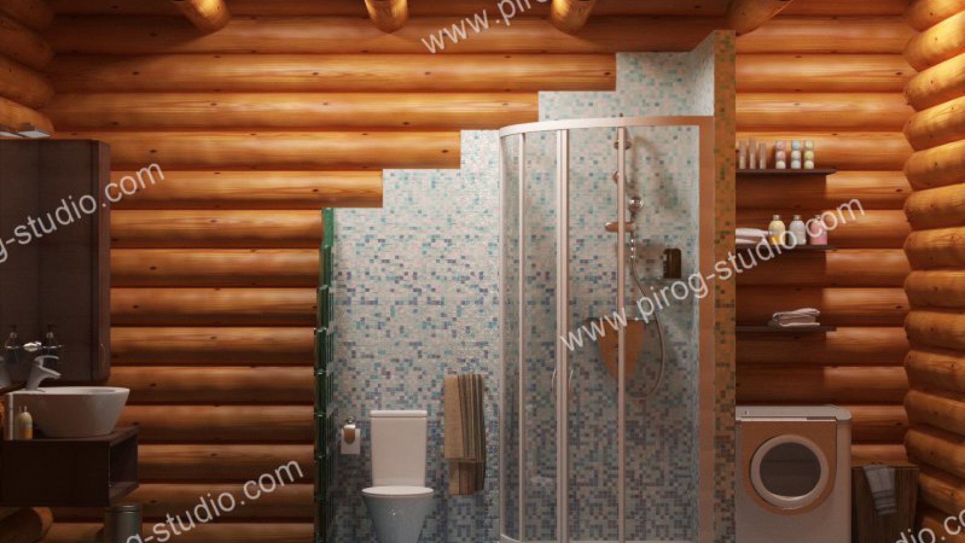 Душевая в доме из бревна