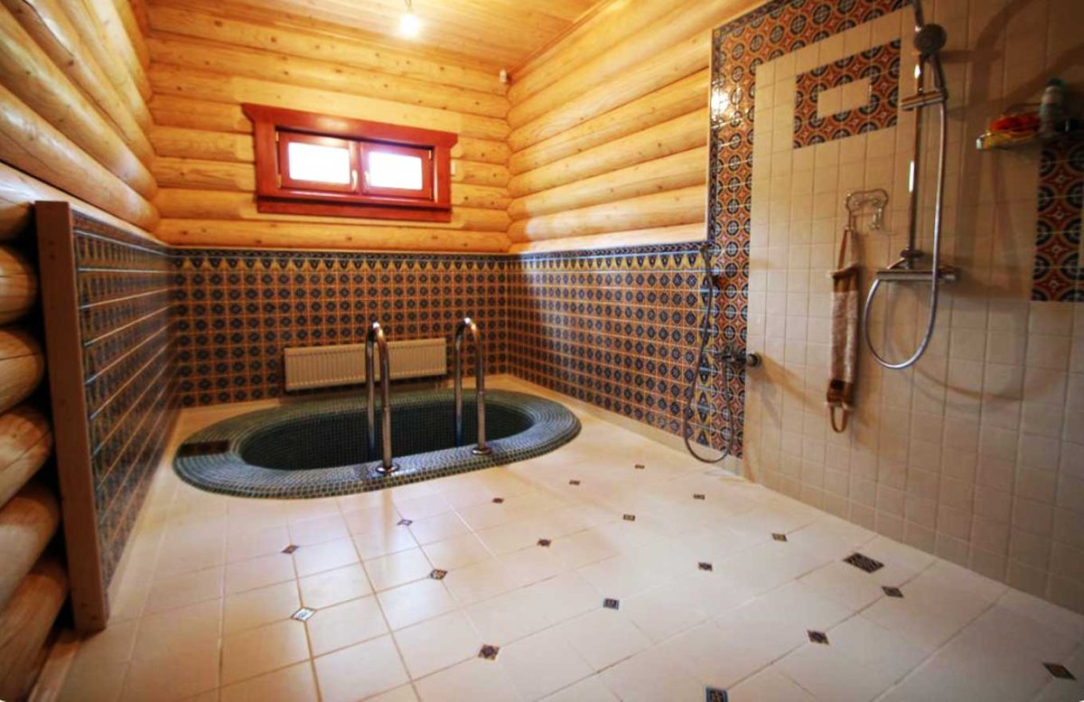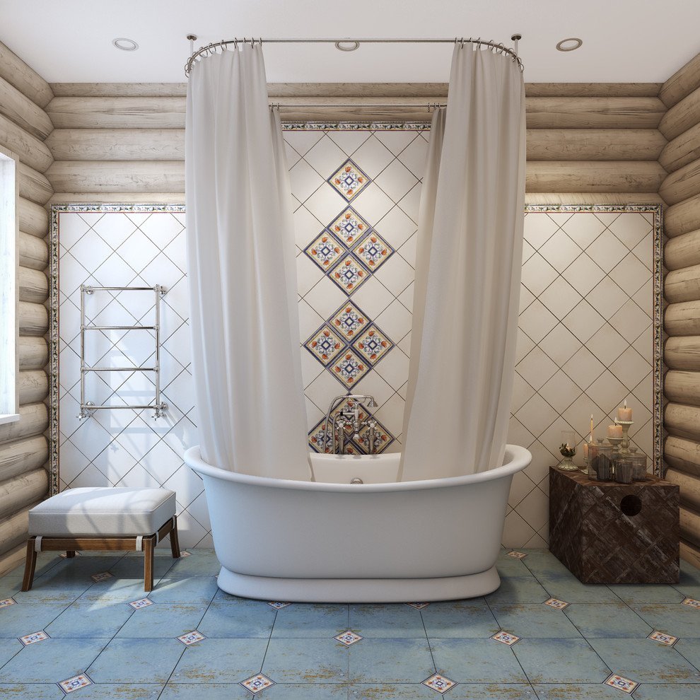 Плитка в ванной в бревенчатом доме