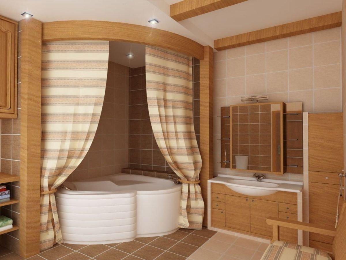 Угловая ванная в деревянном доме
