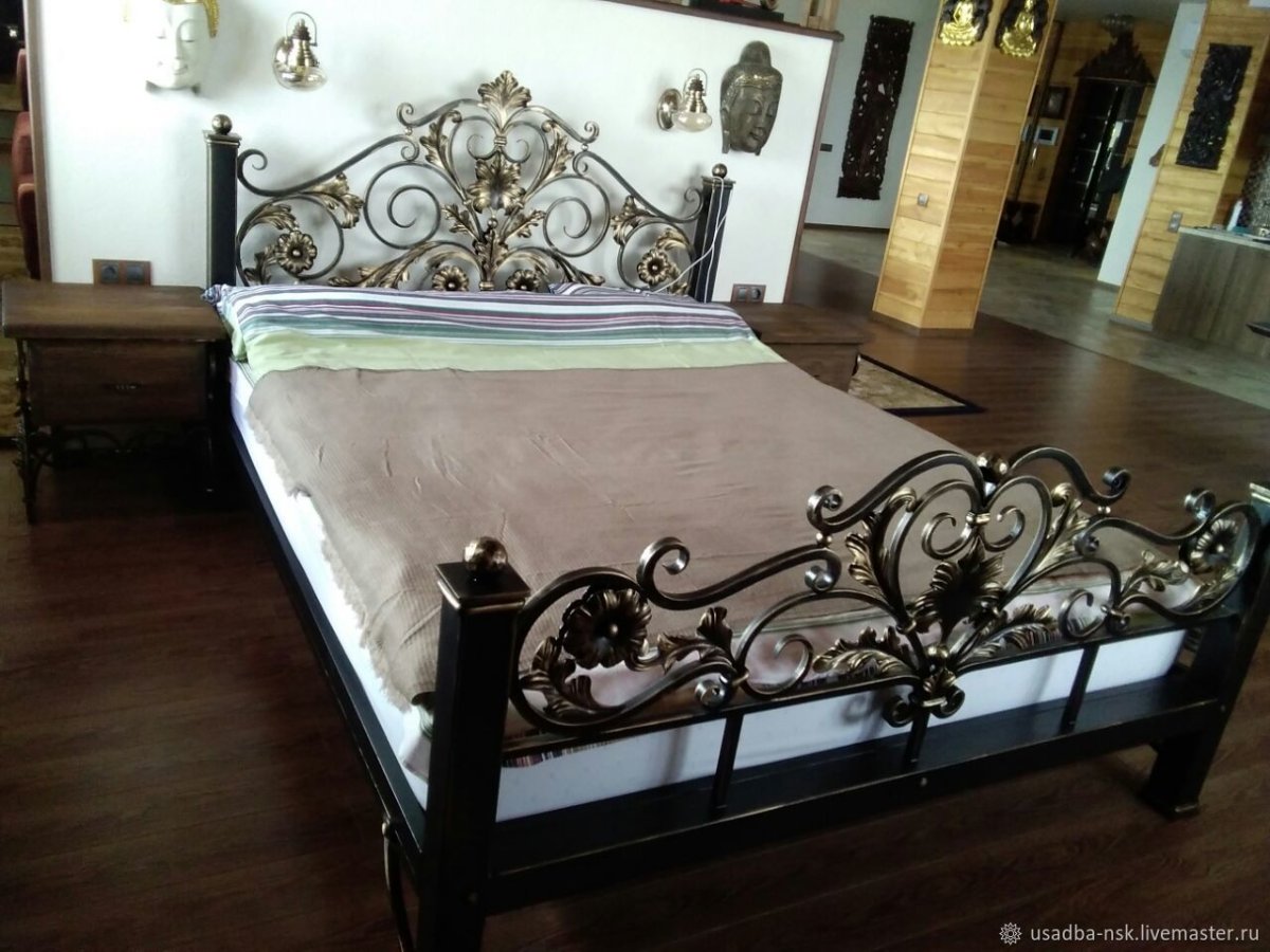 Кровать с кованым изголовьем