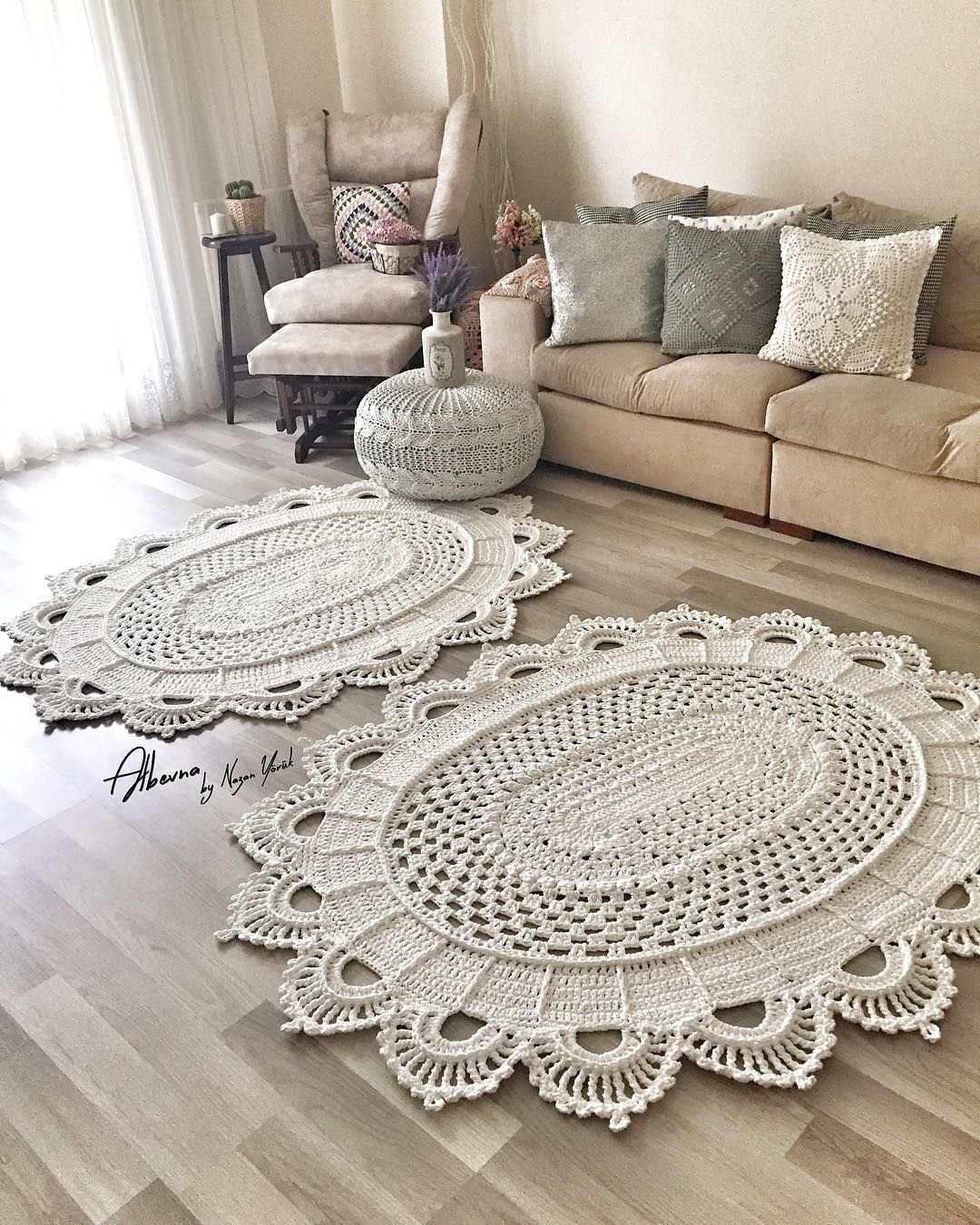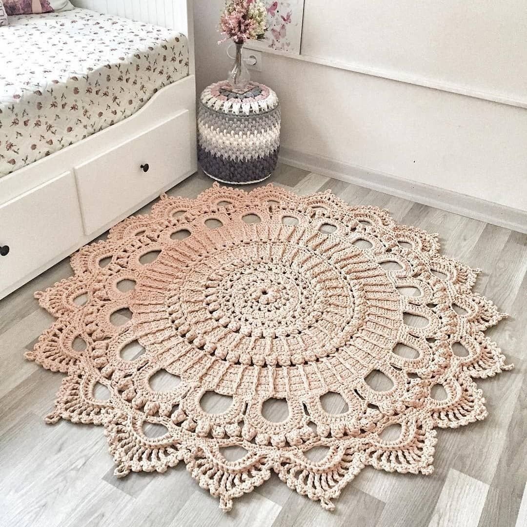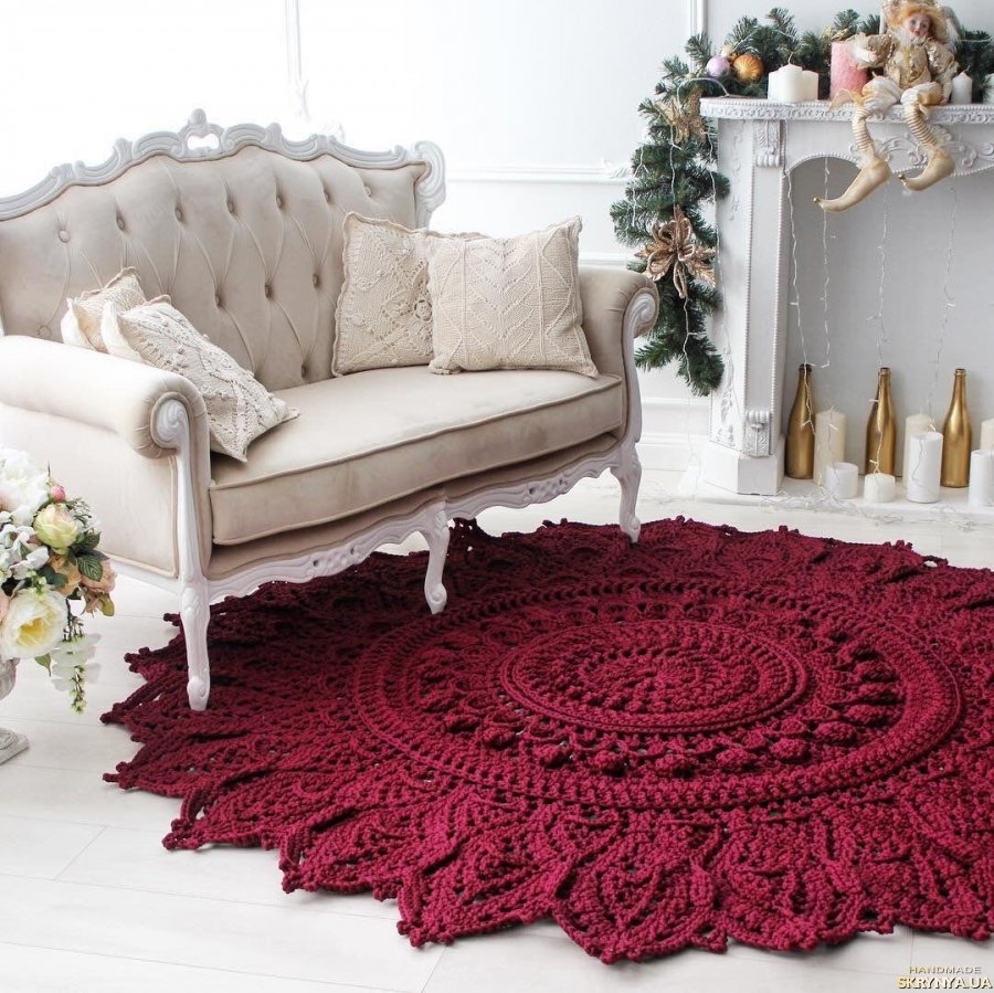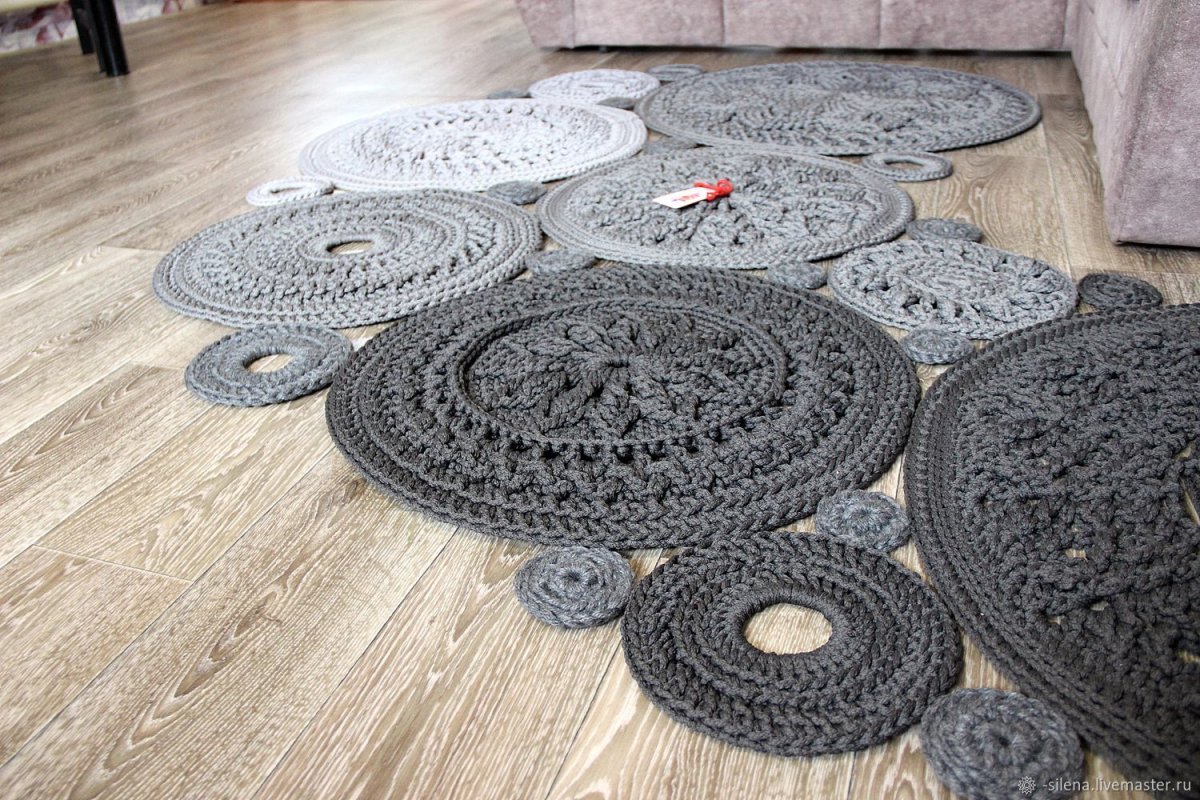 Круглые вязаные коврики в интерьере