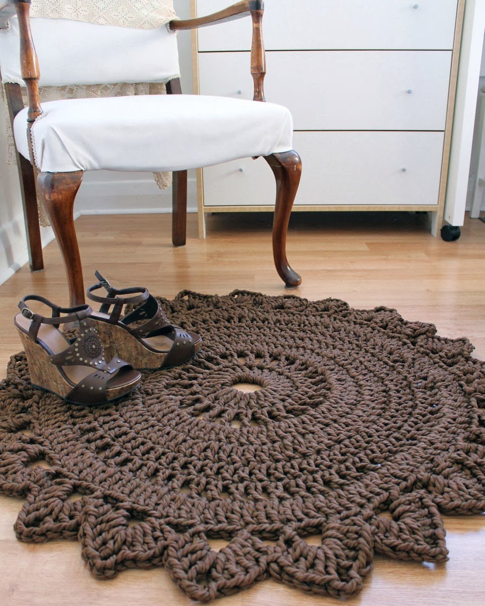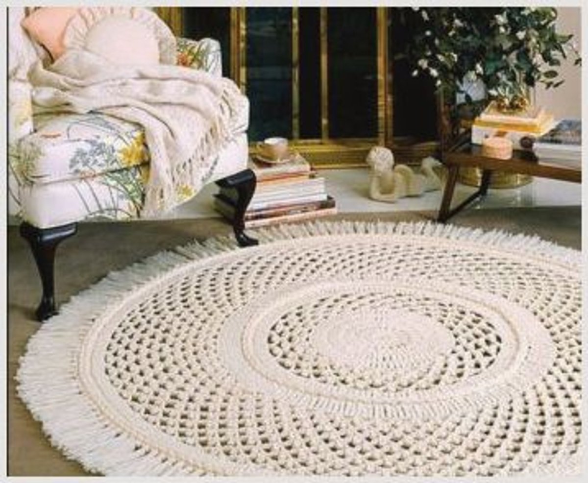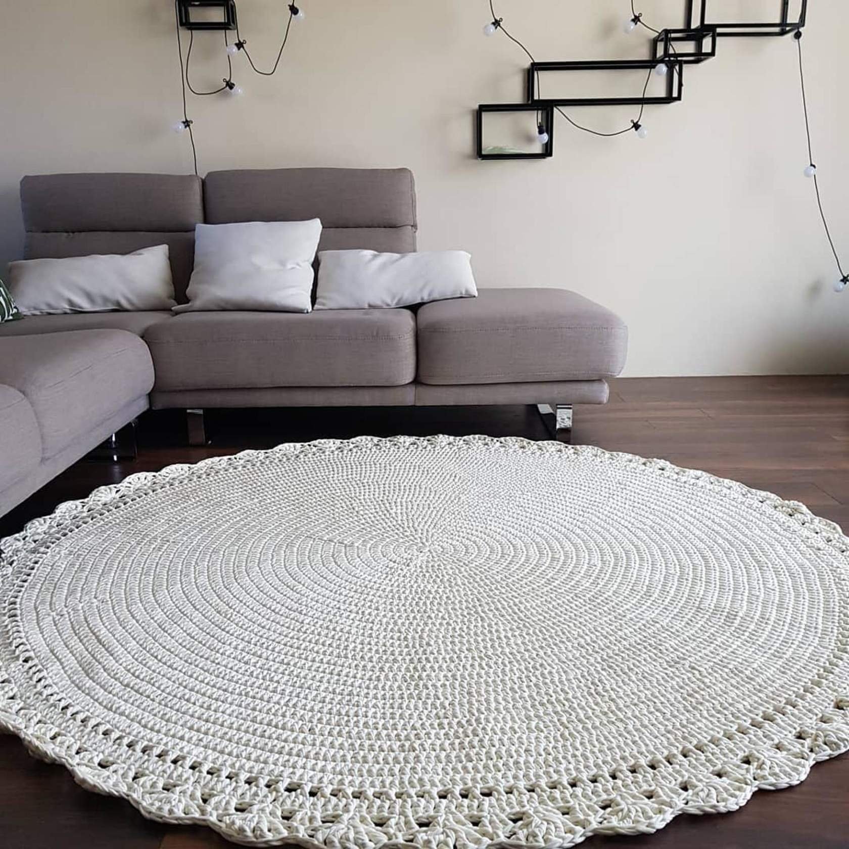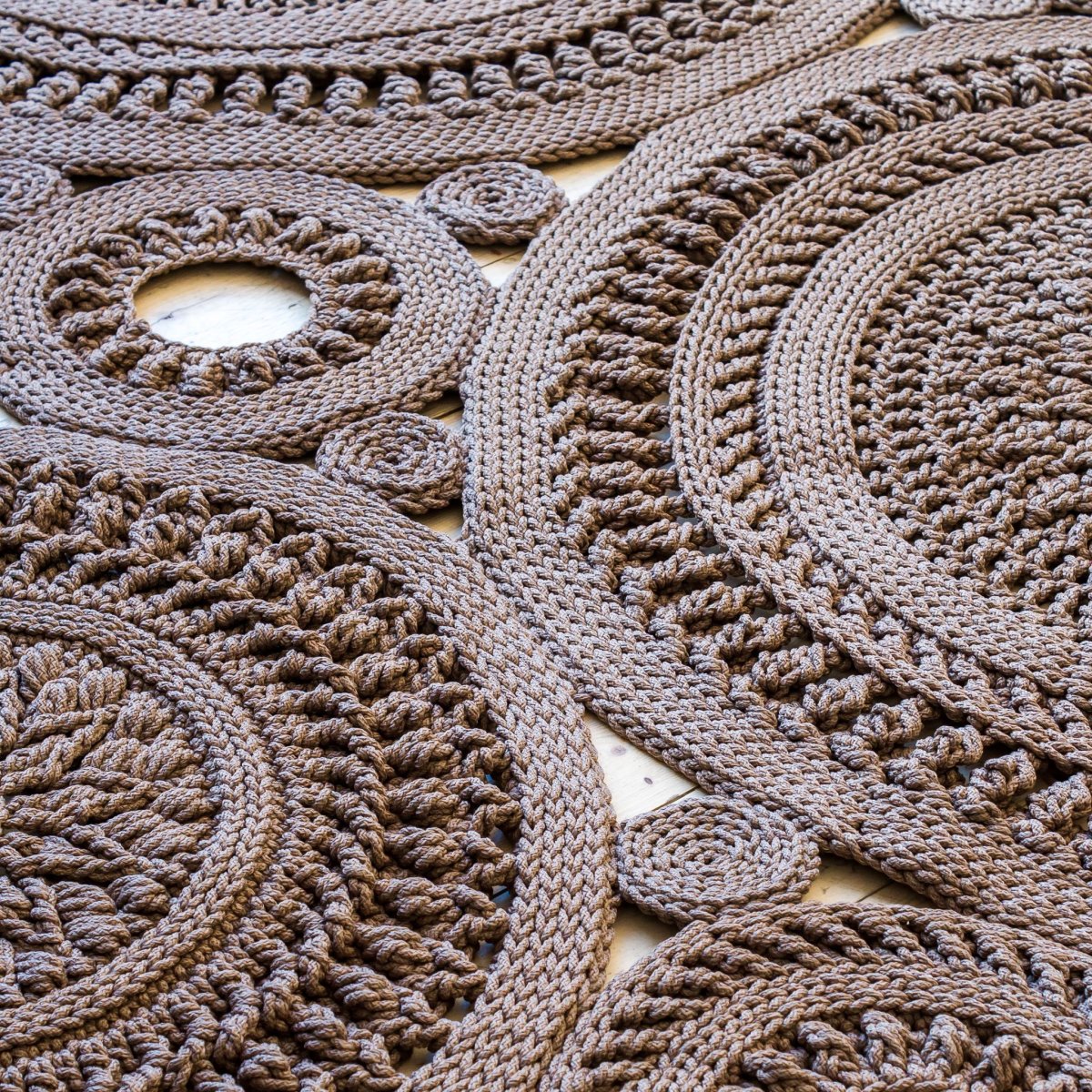Круглые вязаные коврики в интерьере