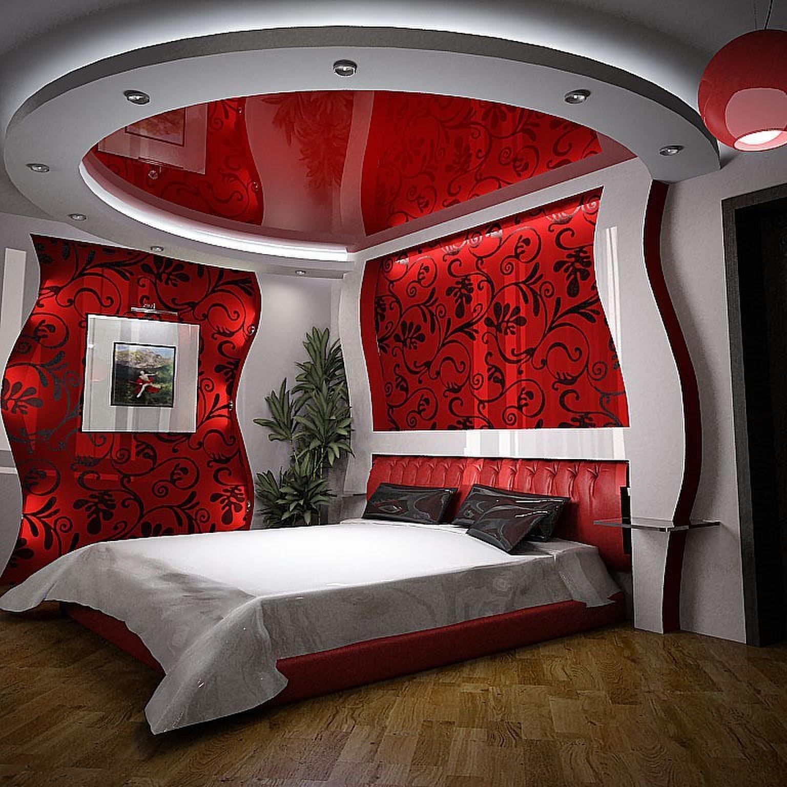 Спальня в красно белых тонах