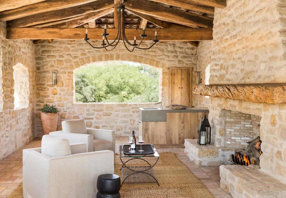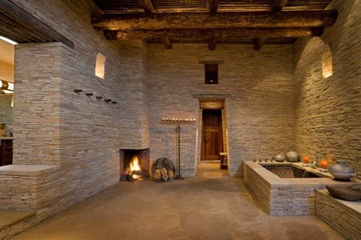 Сочетание камня и дерева в интерьере