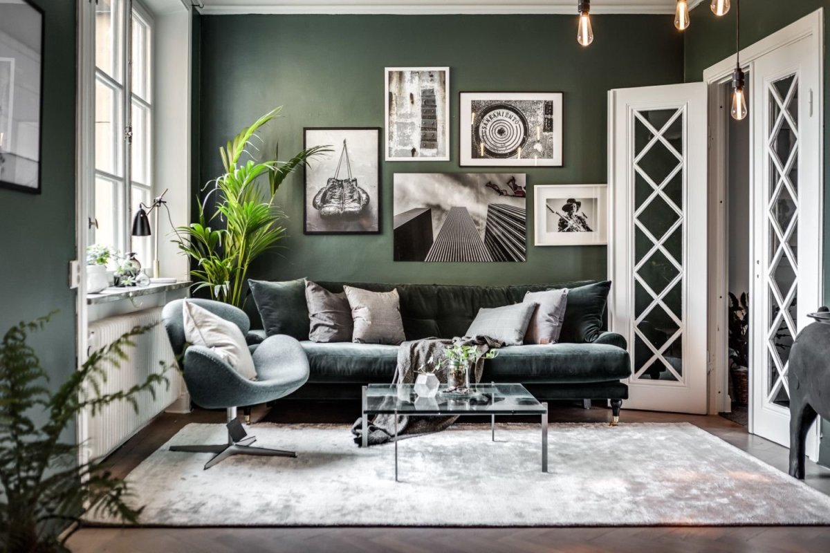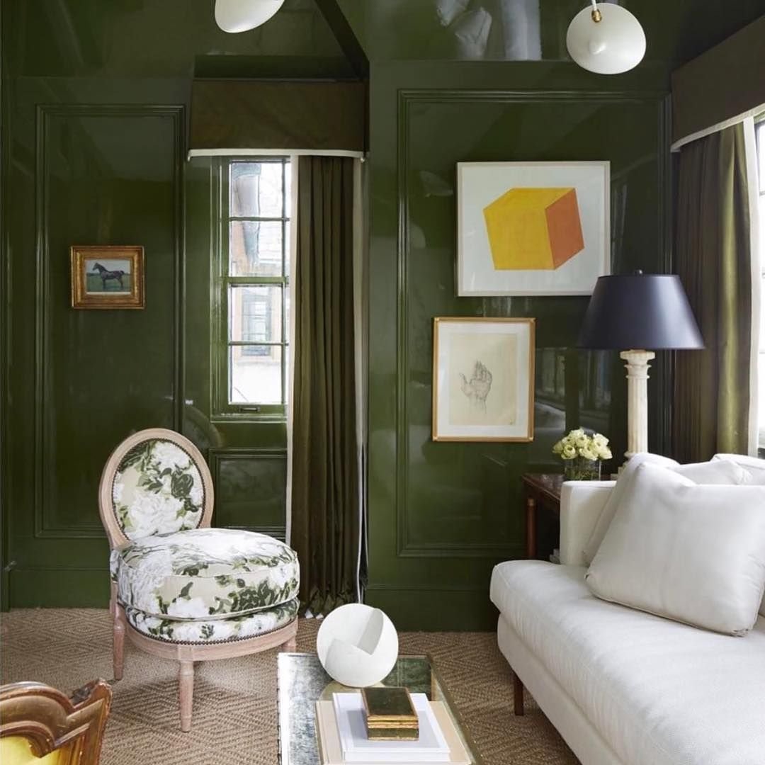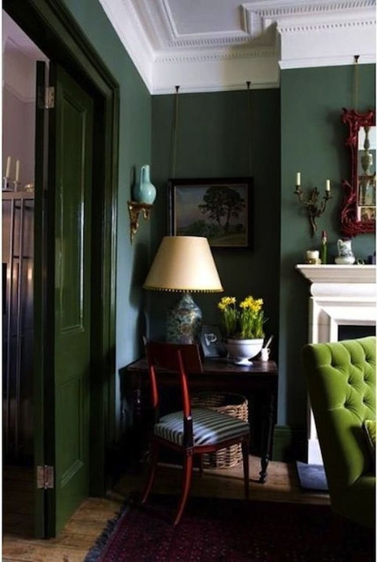 Темно зеленые стены в интерьере