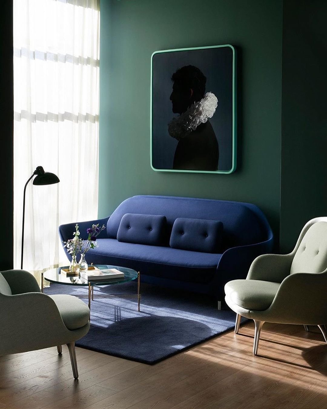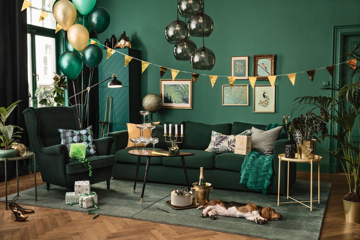 Зелёный цвет в интерьере гостиной