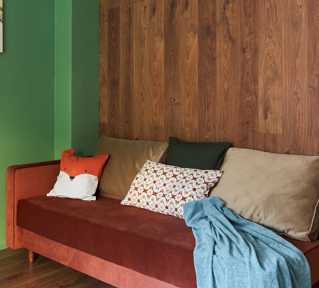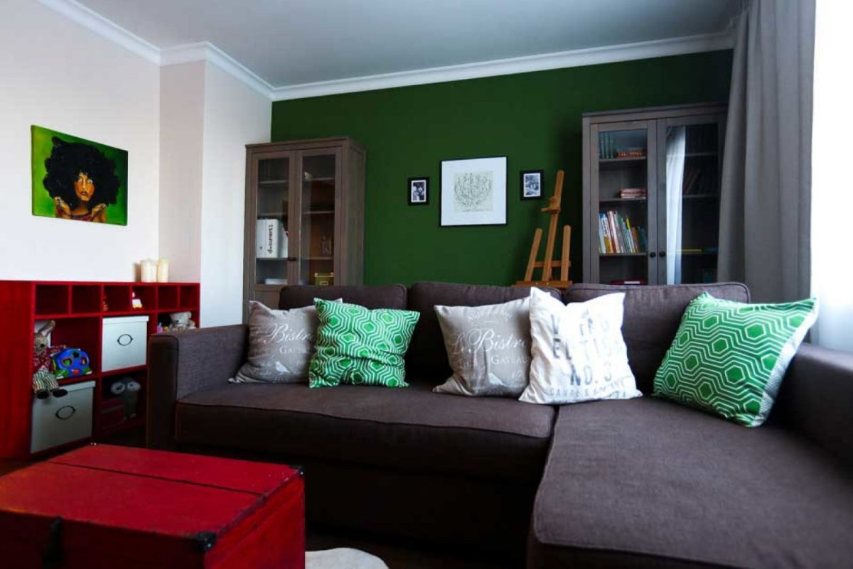 Зеленый диван в интерьере
