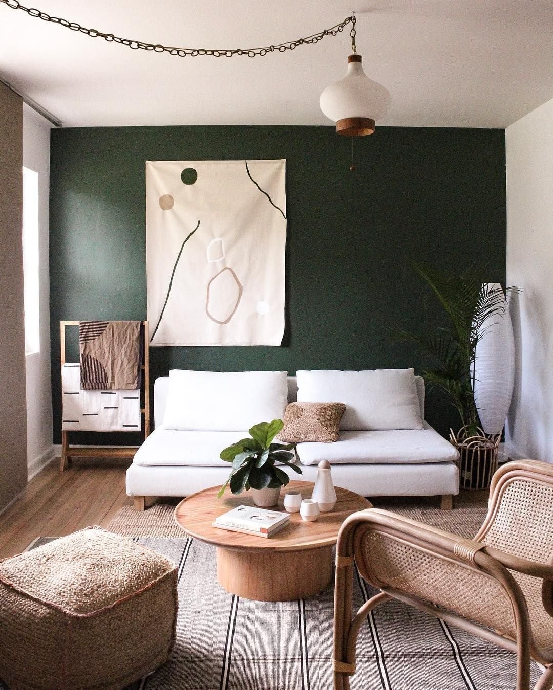 Гостиная с зелеными стенами
