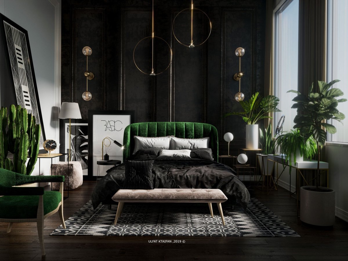 Спальня в изумрудных тонах