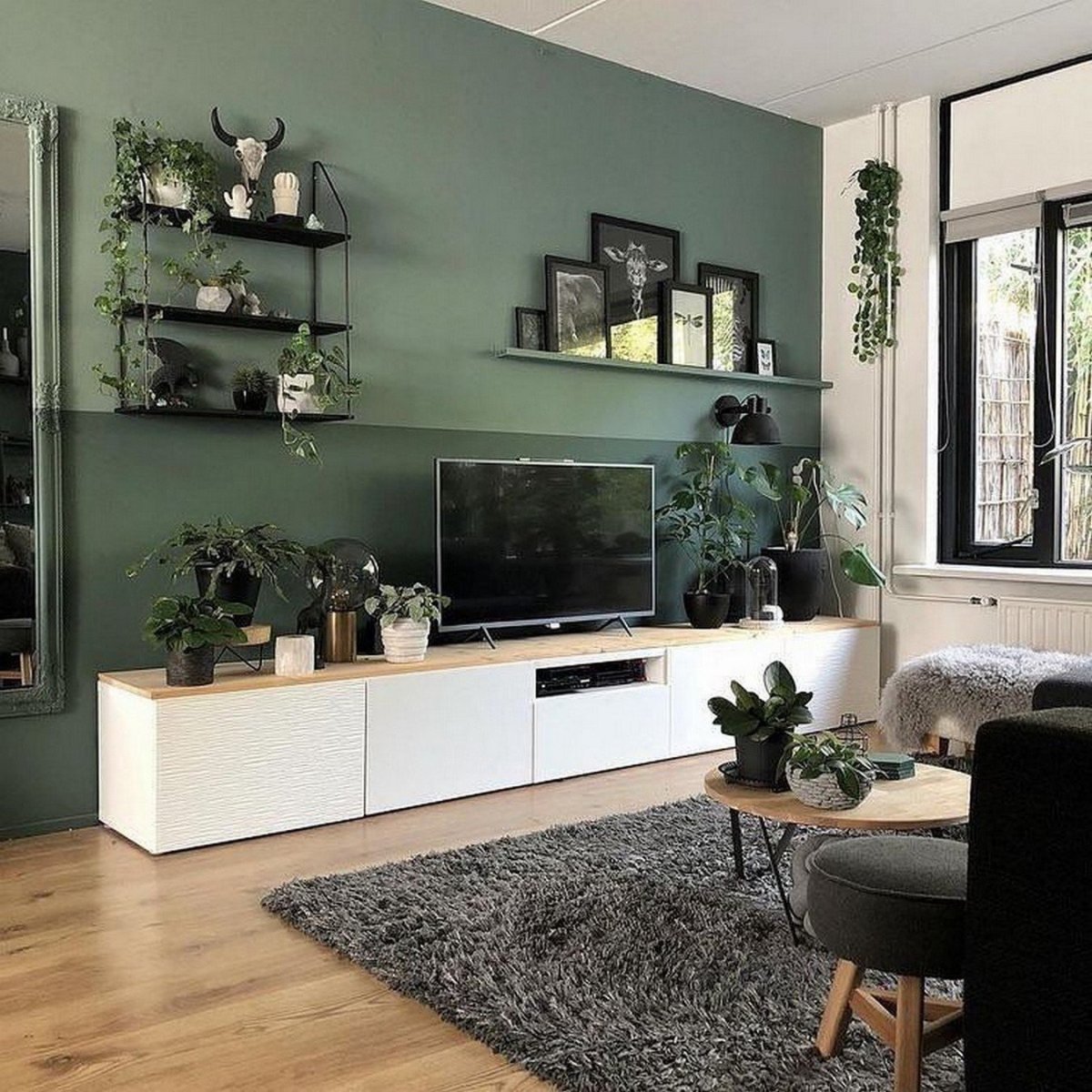 Сканди гостиная серый зеленый