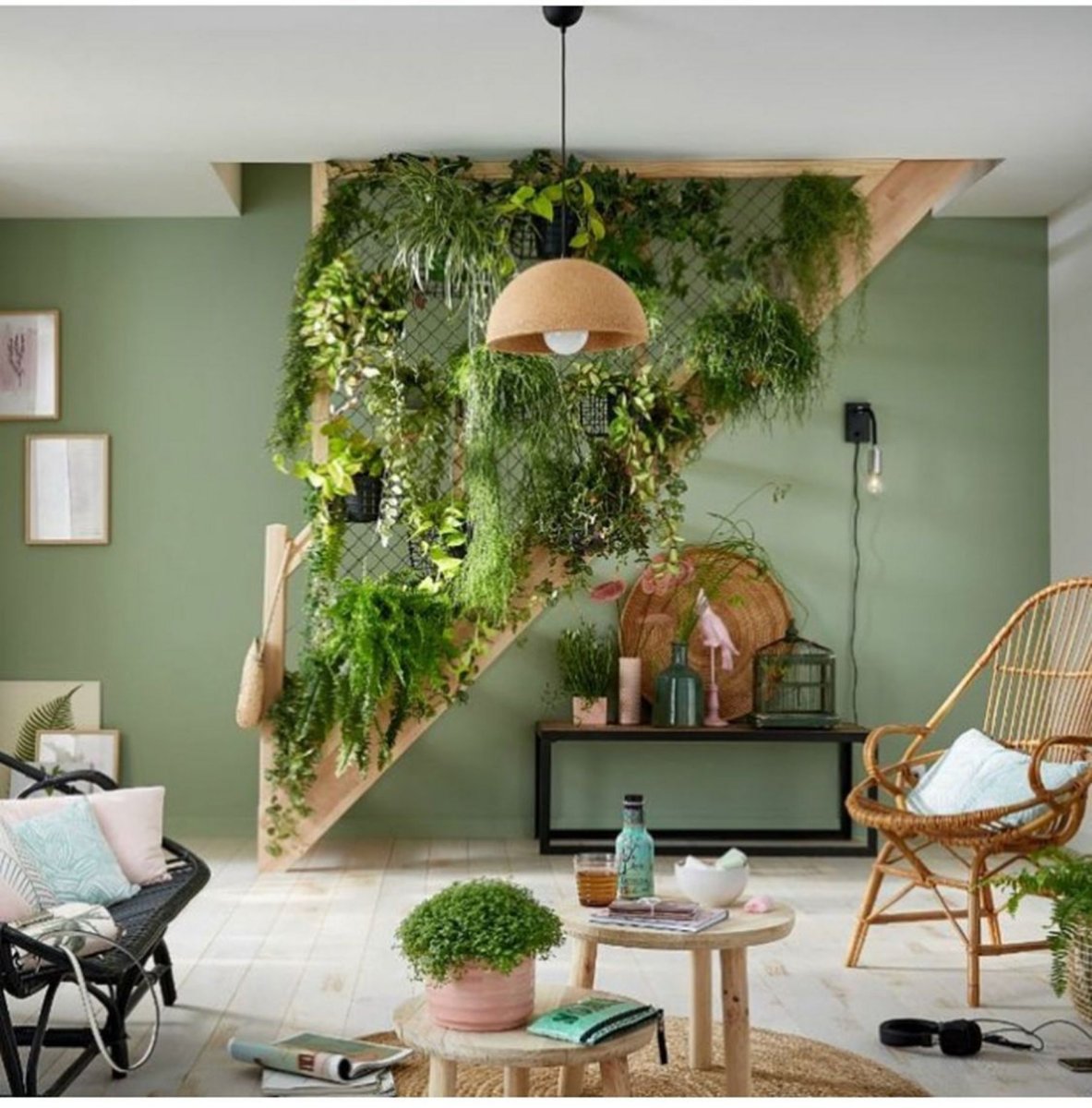 Зеленый и дерево в интерьере