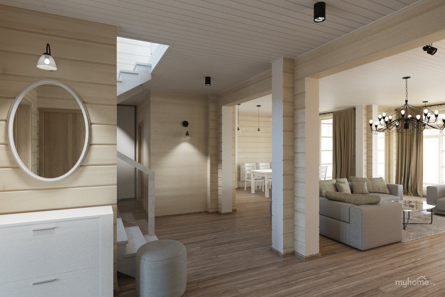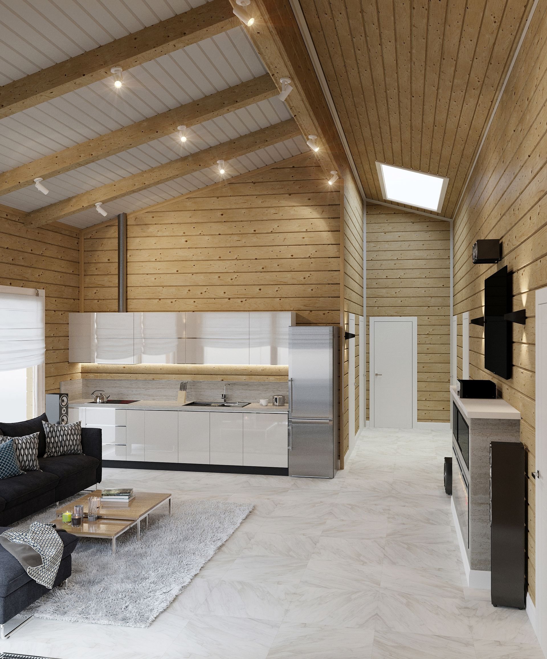 Дом из клееного бруса интерьер белый