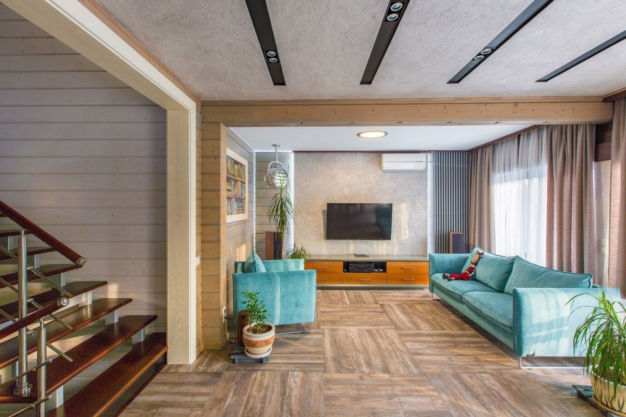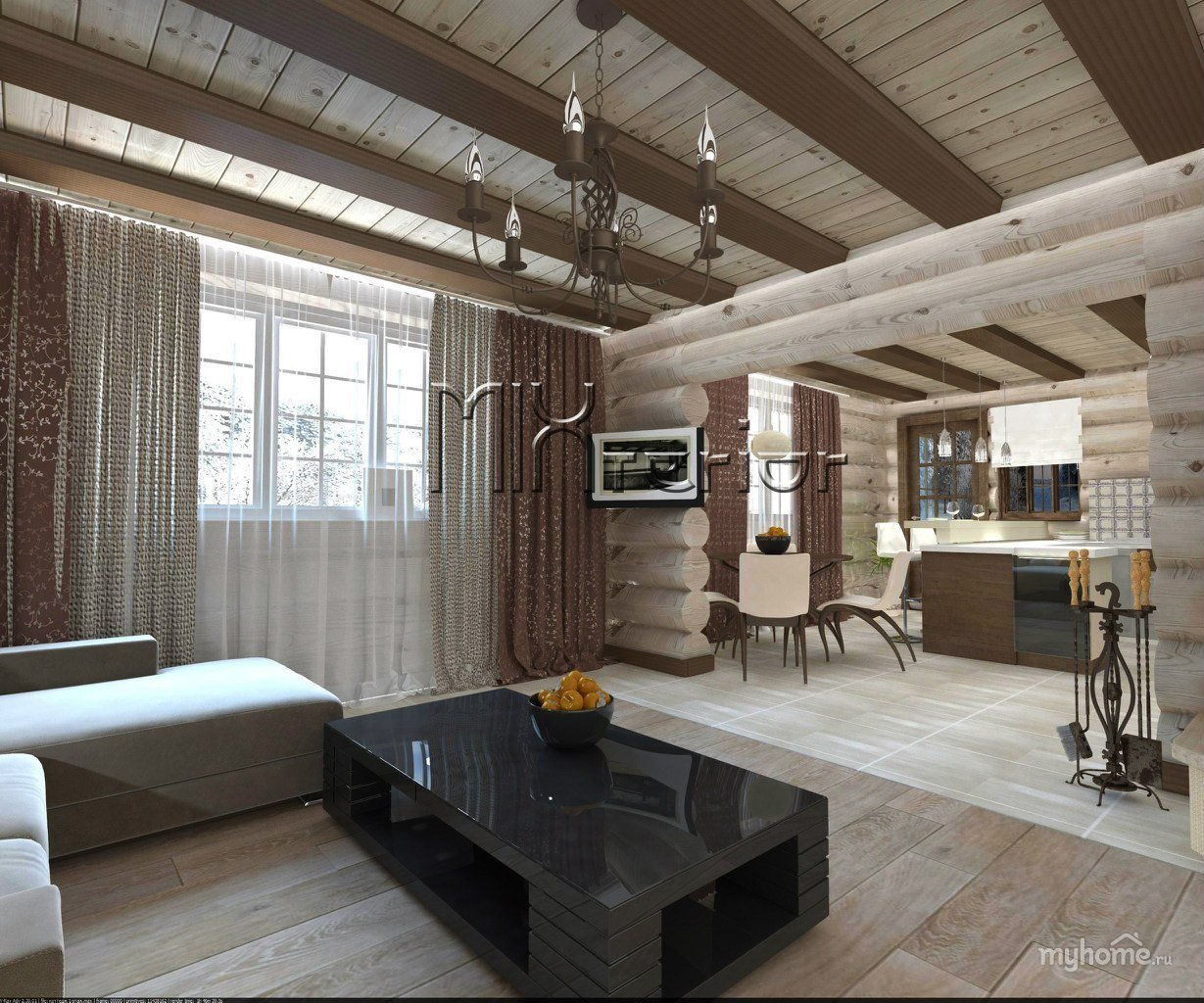 Интерьер гостиной из имитации бруса