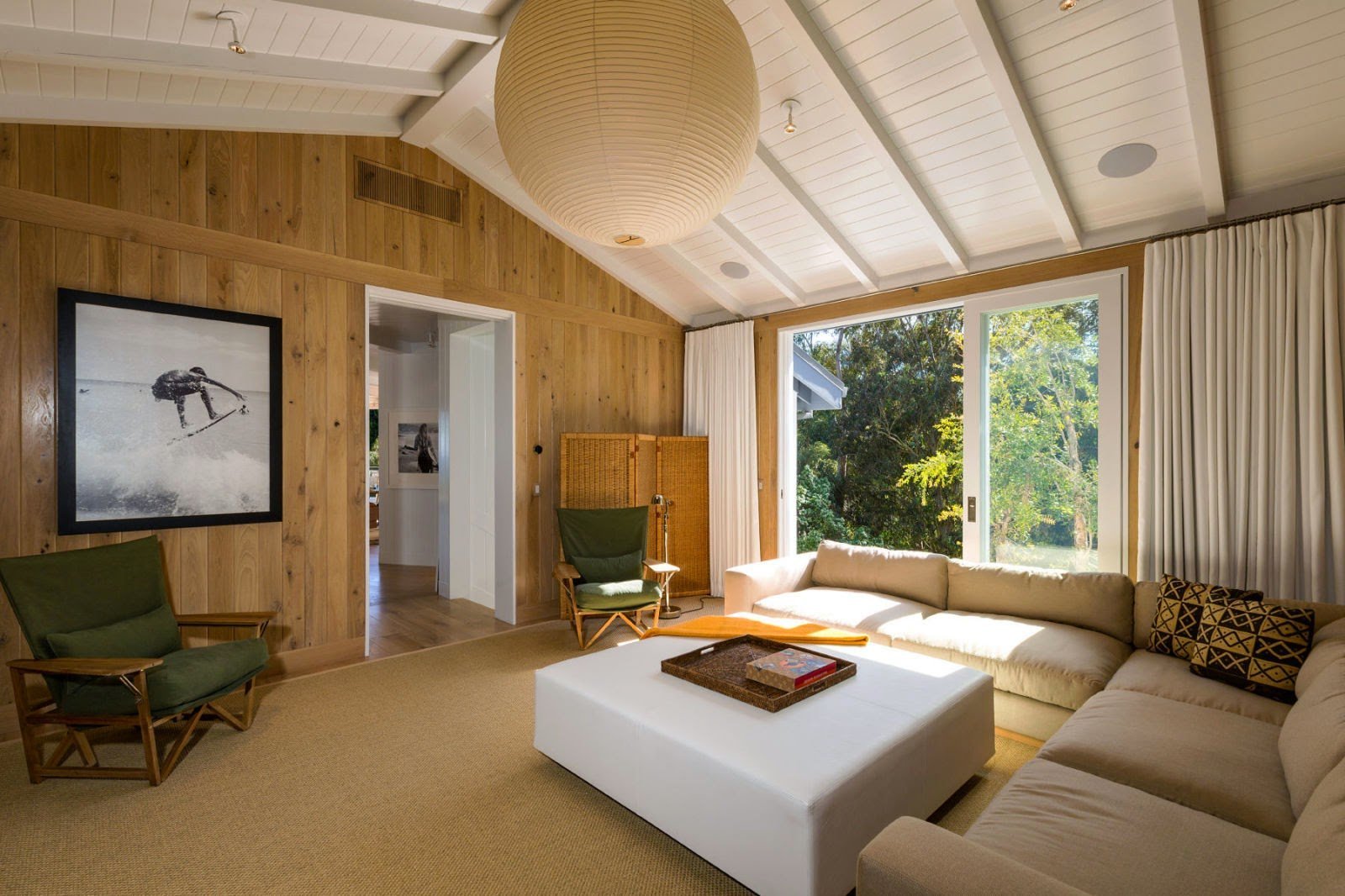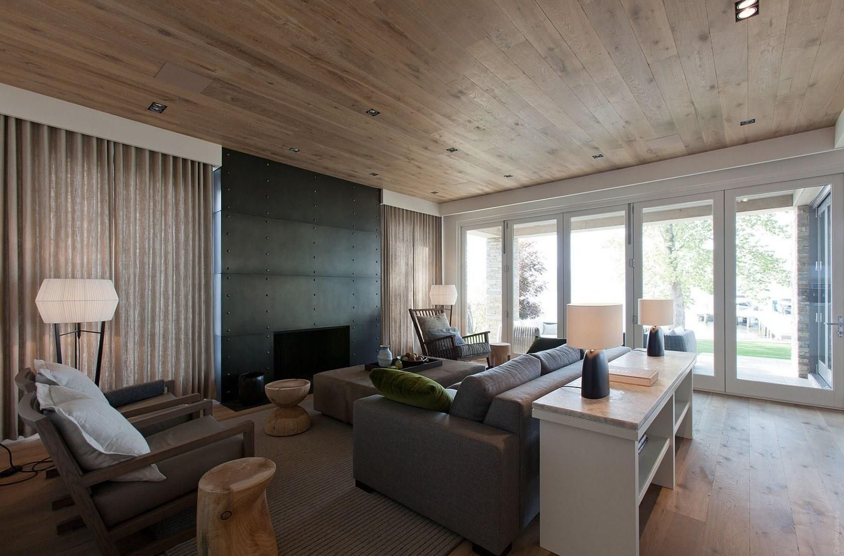 Деревянный потолок в гостиной