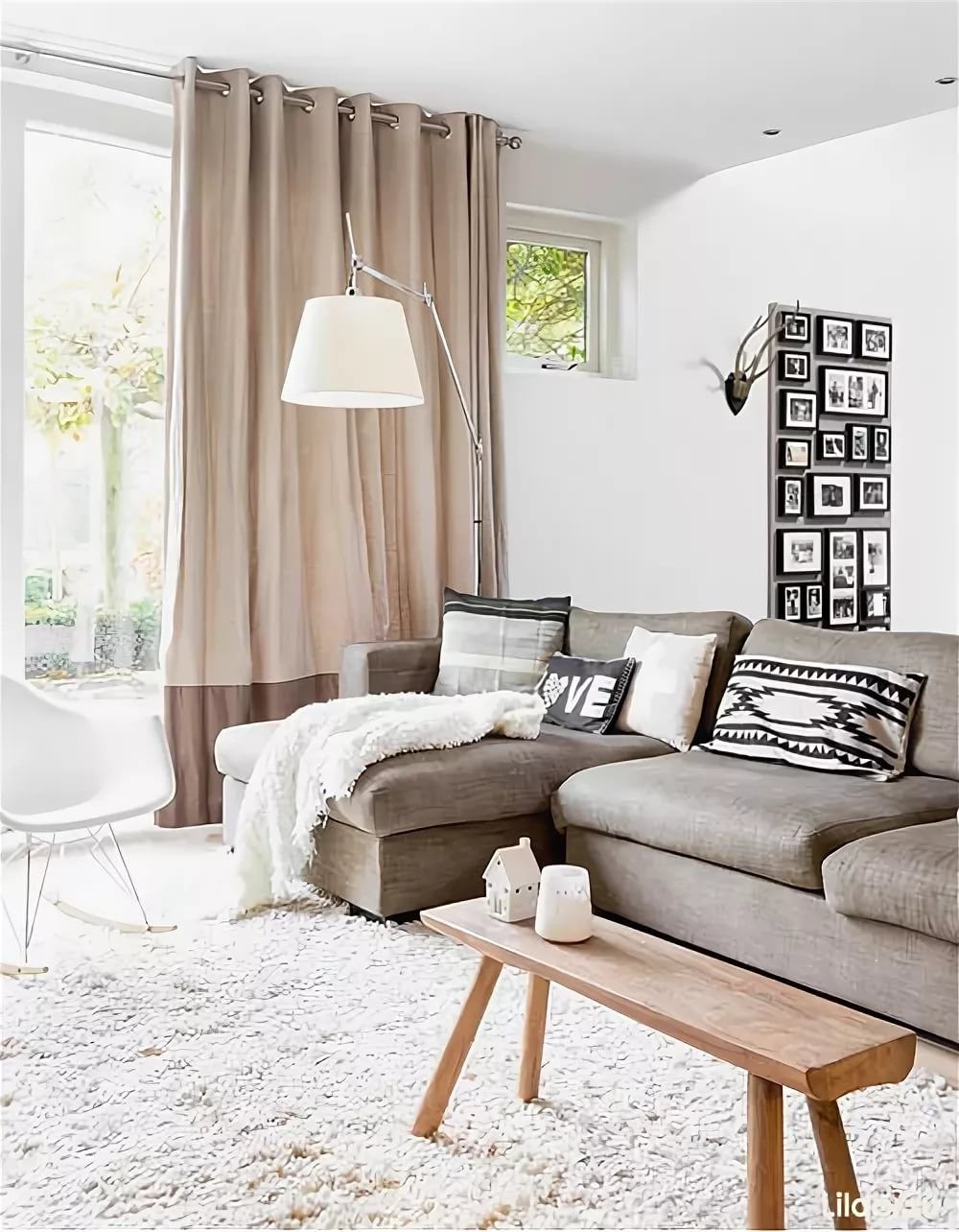 Бежево серая гостиная в скандинавском стиле