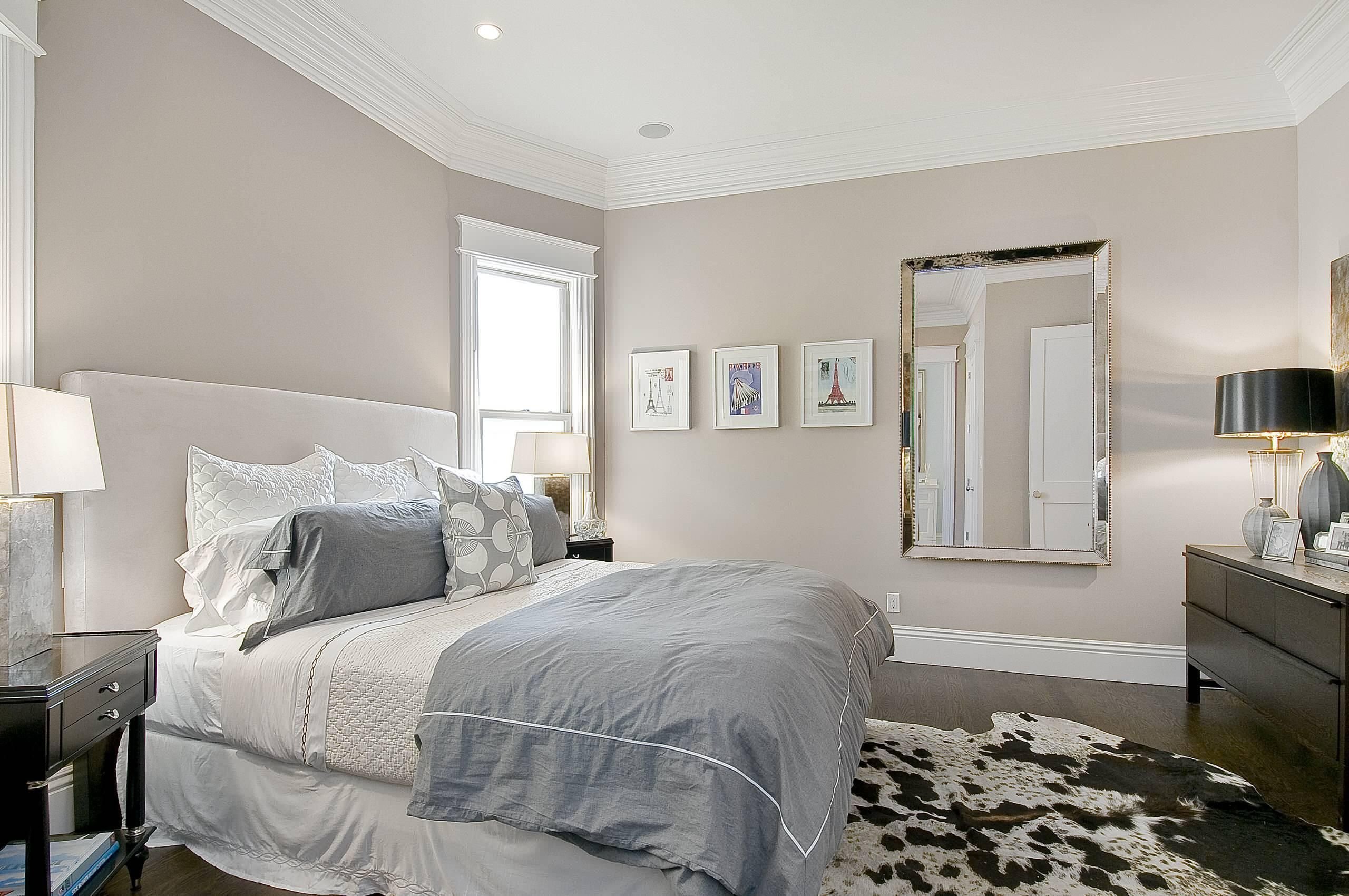 Серо бежевый интерьер спальни