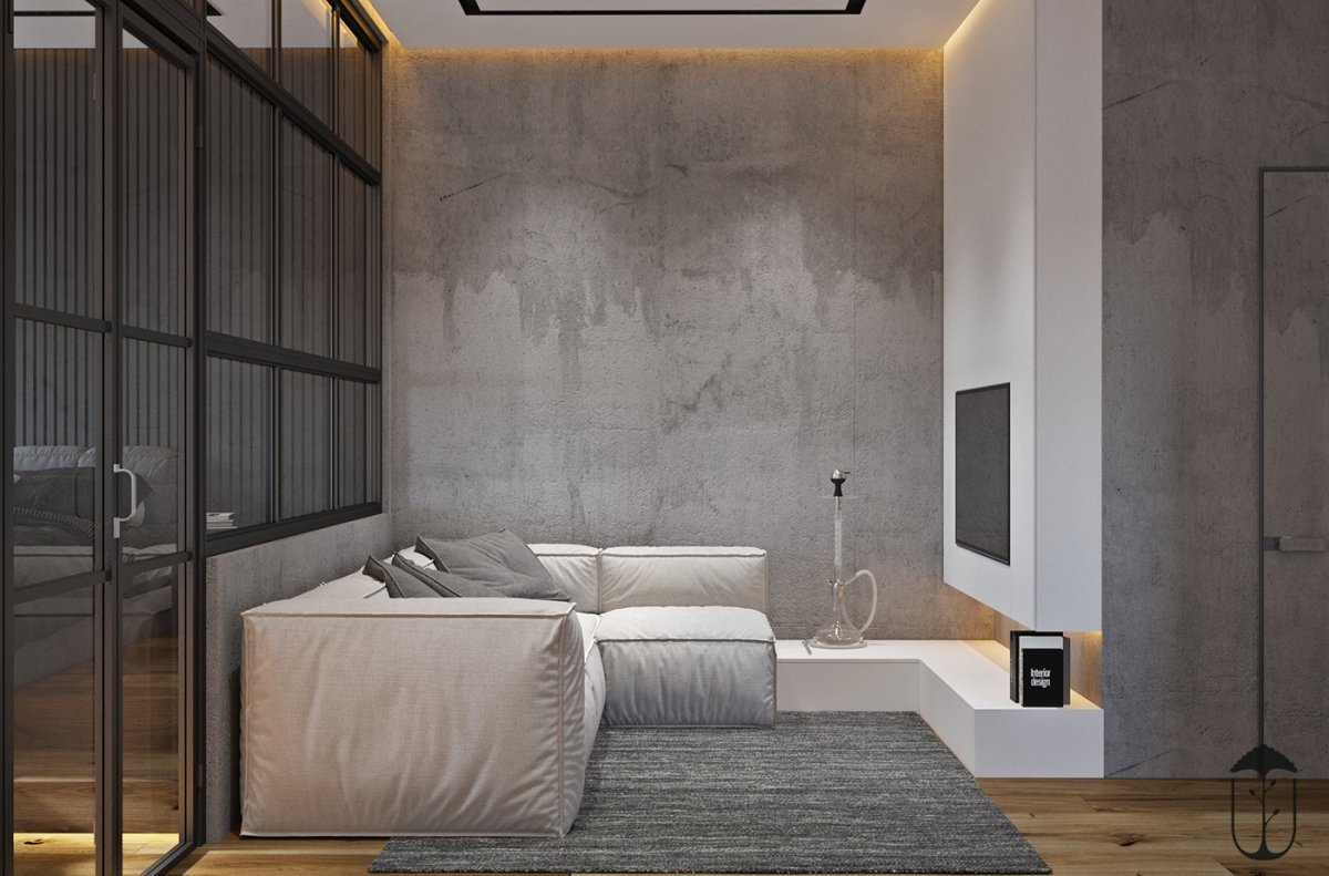 Штукатурка под бетон в интерьере лофт