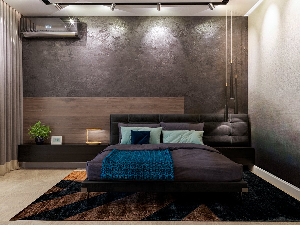 Спальня в стиле бетон